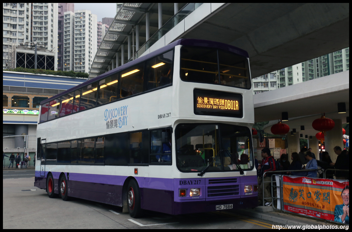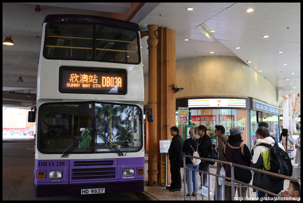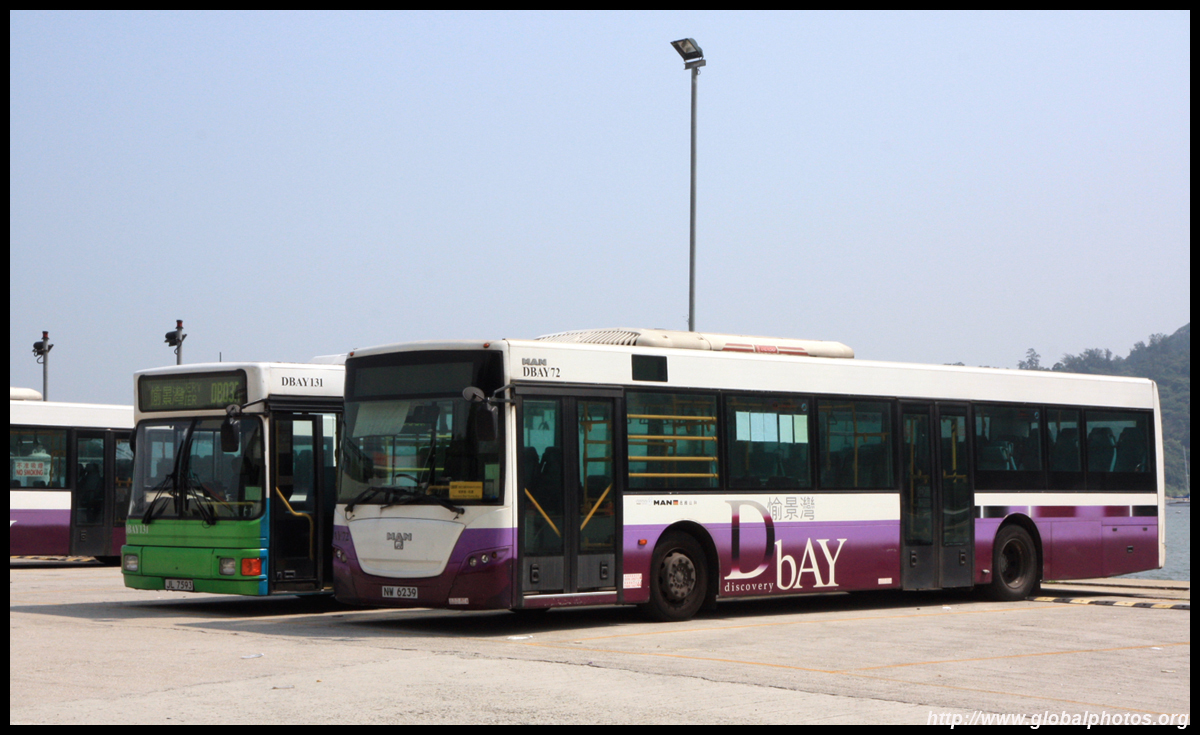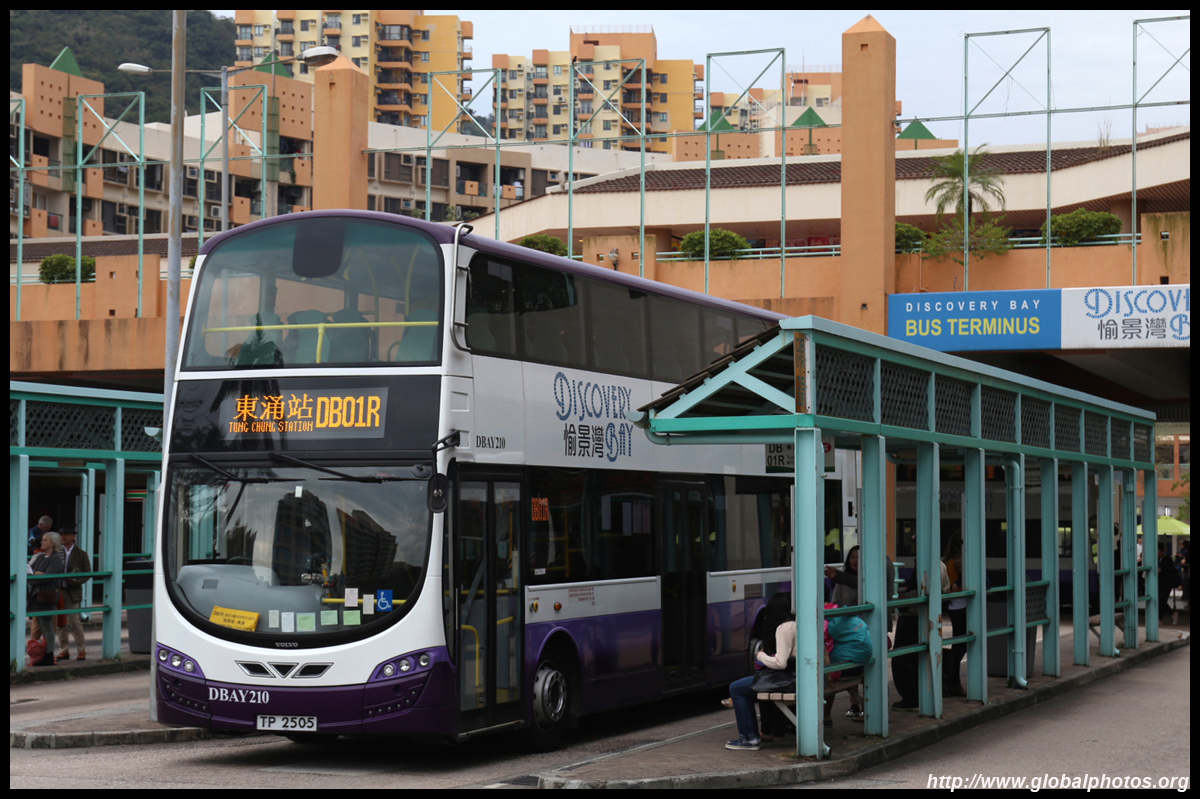 Discovery Bay is a planned car-free community on the southeastern shores of Lantau Island. Its 16,000 residents drive golf buggies around and a huge beach fronts the coast. The only road connection is through a tunnel towards Sunny Bay, so besides ferry service to Central, the other public transport option is to go by bus to Sunny Bay, Tung Chung, or the airport. Volvo Olympian