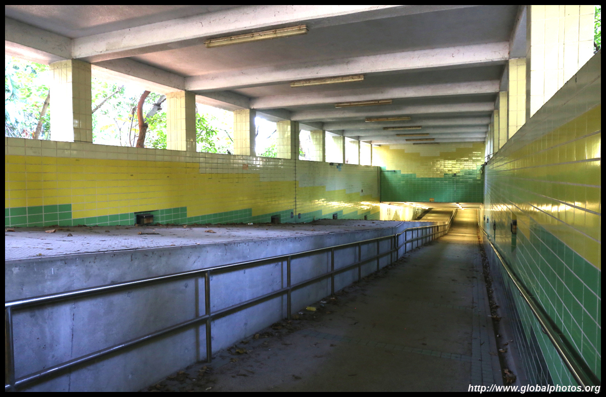 Head east along the train tracks' fence and look for the pedestrian underpass to the right of the electrical substation and carpark.