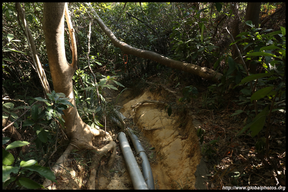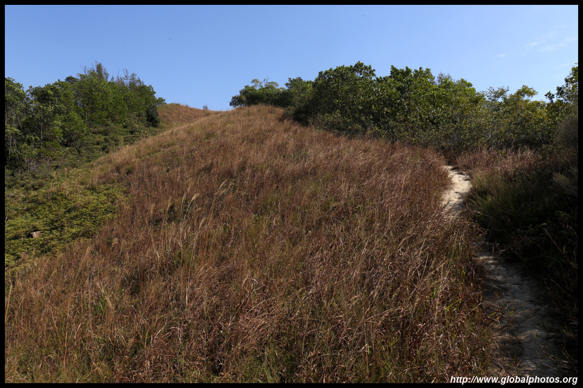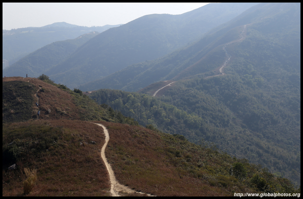 The dirt path continues along the ridges beyond. At the bottom of this slippery section, it is possible to exit the hike and continue descending down to Discovery Bay to the left. If you are still energetic enough to continue, the path ahead rises again steeply up to Lo Fu Tau, which is even higher at 466m.
