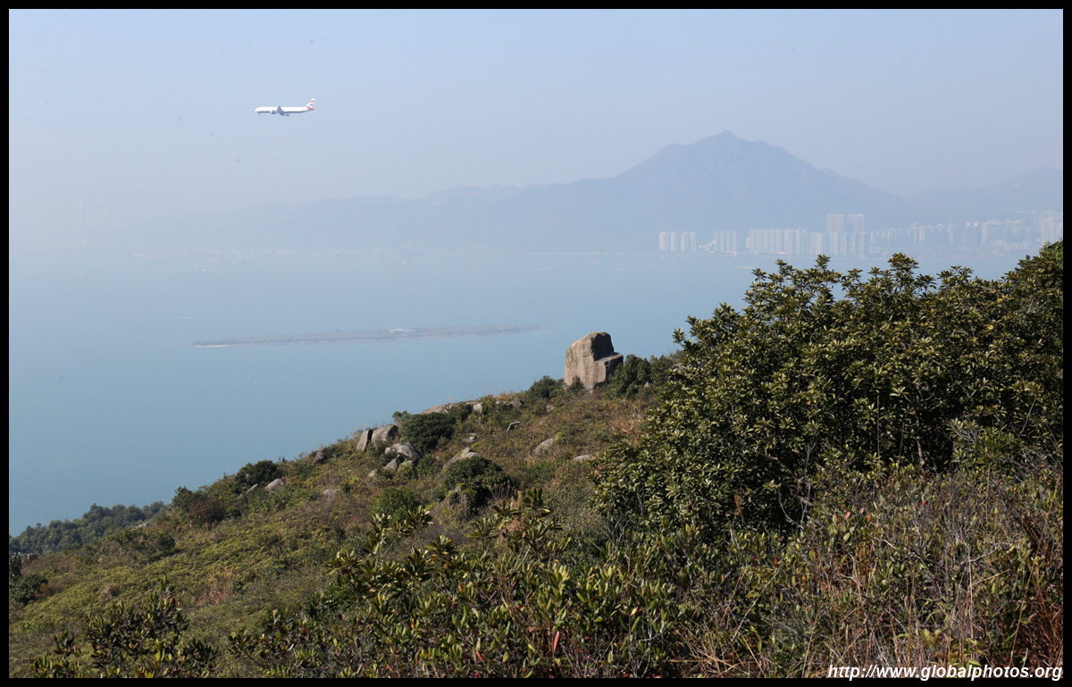 Sunny Bay station is along a serene and beautiful waterfront with the flight path just offshore.
