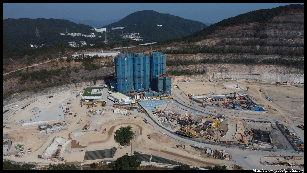 A major development is taking place at the old Anderson Road quarry, which is very noticeable on both sides of the harbour with the scarred landscape. While originally intended to be developed into private homes that cost an arm and a leg, the government has decided to use most of the 12 hectares of land for public housing instead. Residents are expected to start moving in by 2023. You can see the vast empty site in the background with the blue scaffolding-covered buildings being the first towers to rise.