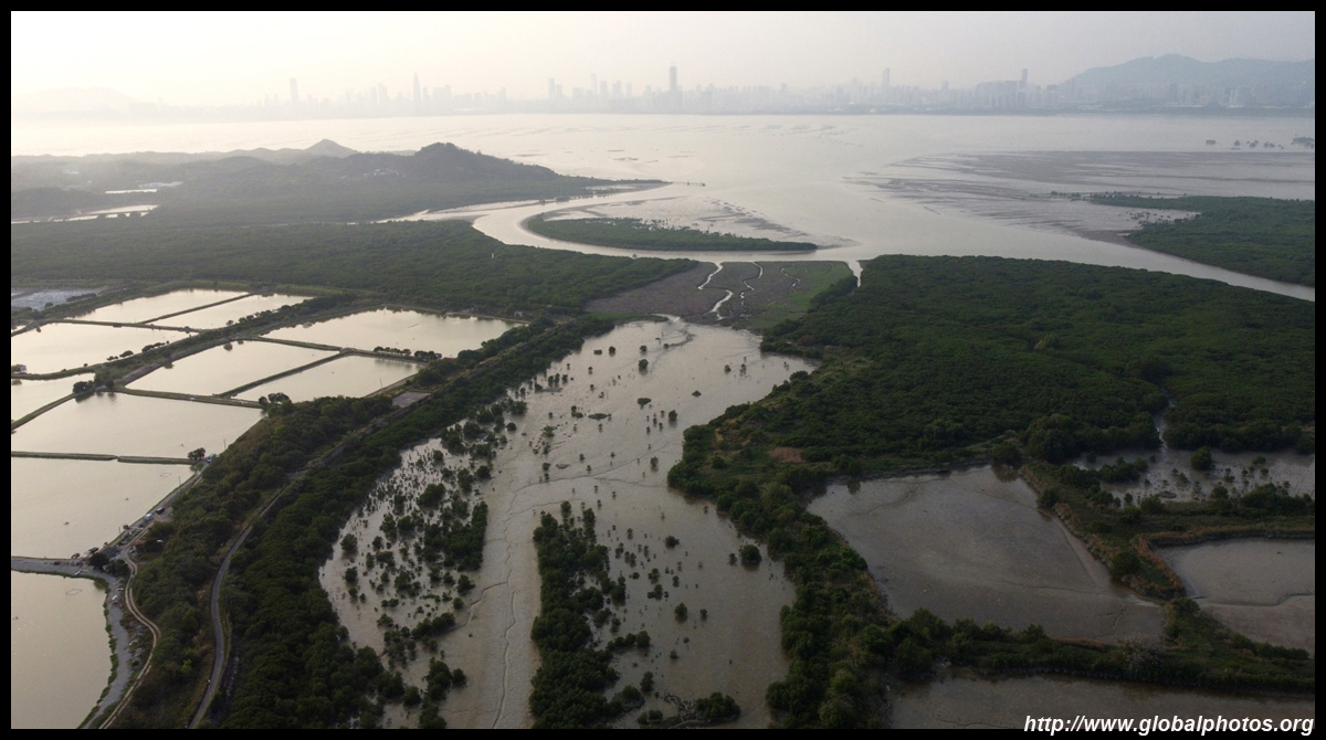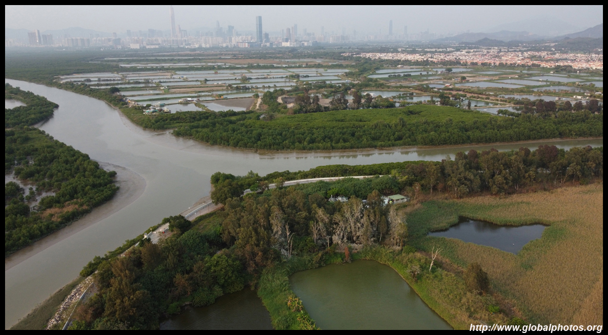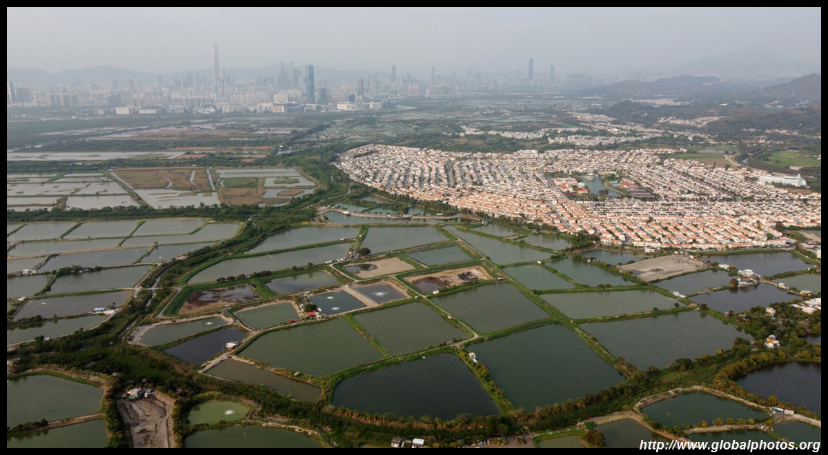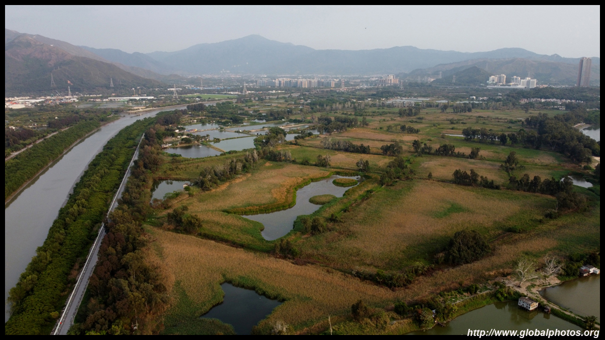 Just a short walk away from Yuen Long's highrises is a large area of wetlands and fish ponds that extend towards a nature reserve that migratory birds frequent. Nam Sang Wai is actually the centre of a long-standing dispute between private interests, environmentalists, and the planning department on developing or conserving the land. Next door is Tai Sang Wai, where there are more fish ponds and fronted by the massive lowrise Fairview Park housing development.