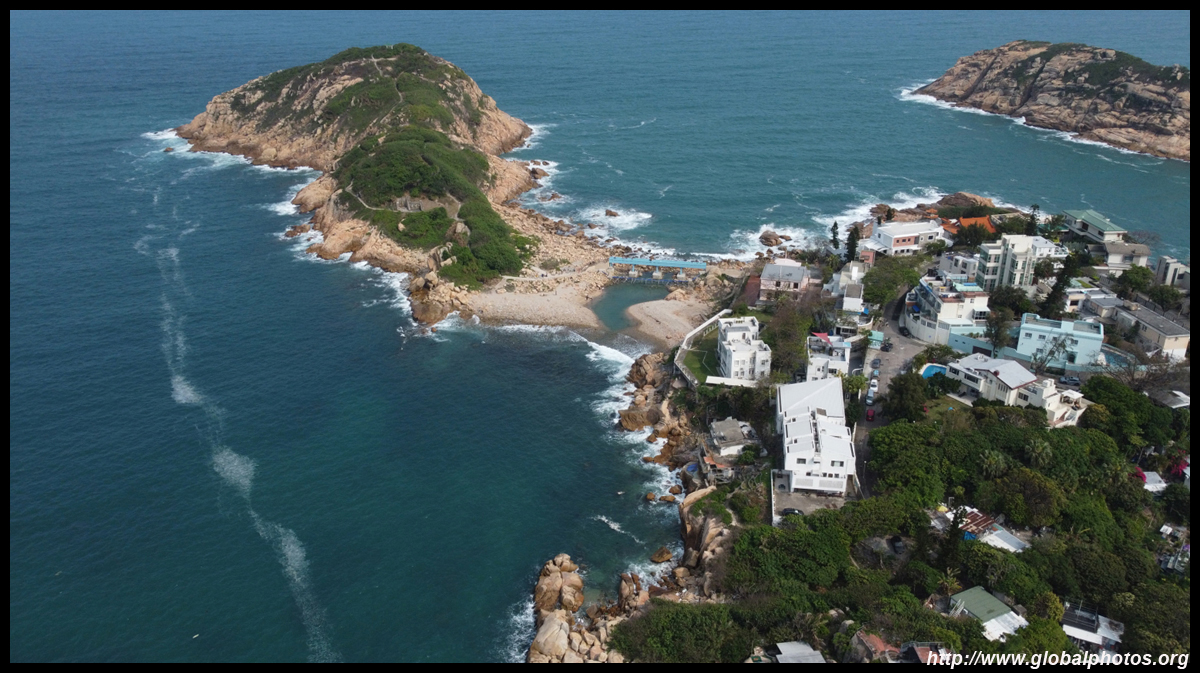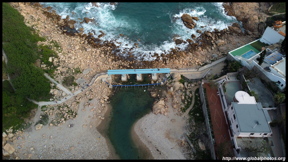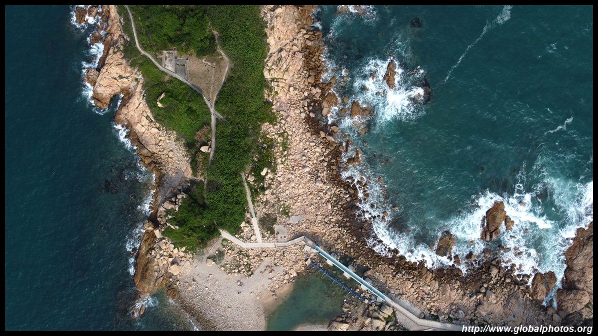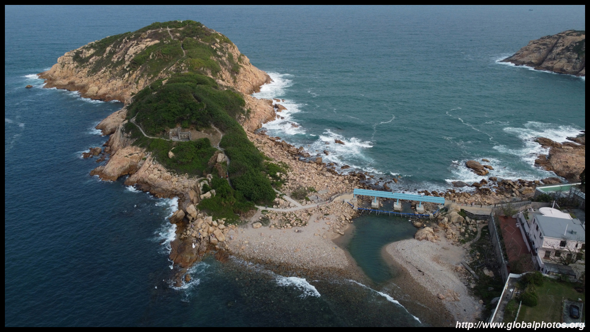 Tai Tau Chau is located just offshore and a blue pedestrian bridge provides access to the short hiking trail. The "Lovers' Bridge" was reconstructed due to damage from Super Typhoon Mangkhut in 2018.