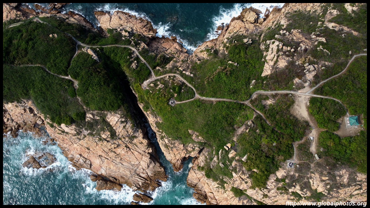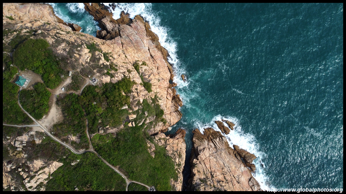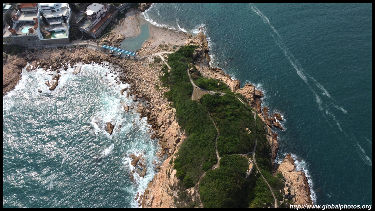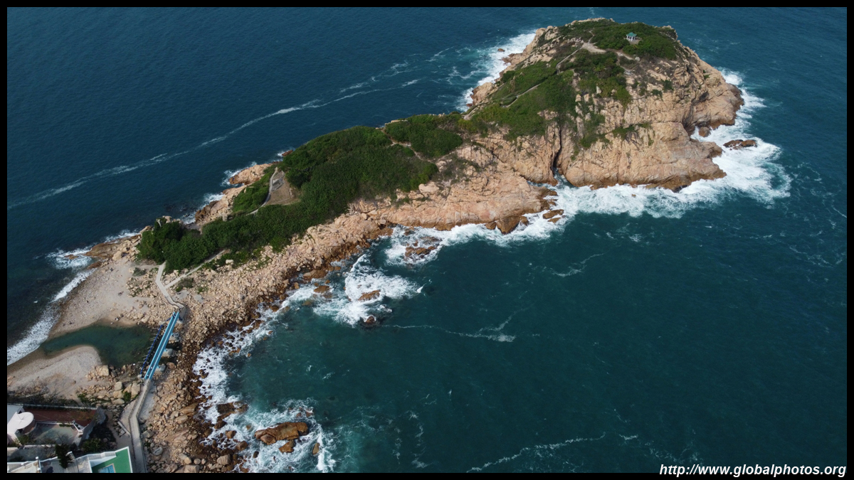 Tai Tau Chau is located just offshore and a blue pedestrian bridge provides access to the short hiking trail. The "Lovers' Bridge" was reconstructed due to damage from Super Typhoon Mangkhut in 2018.