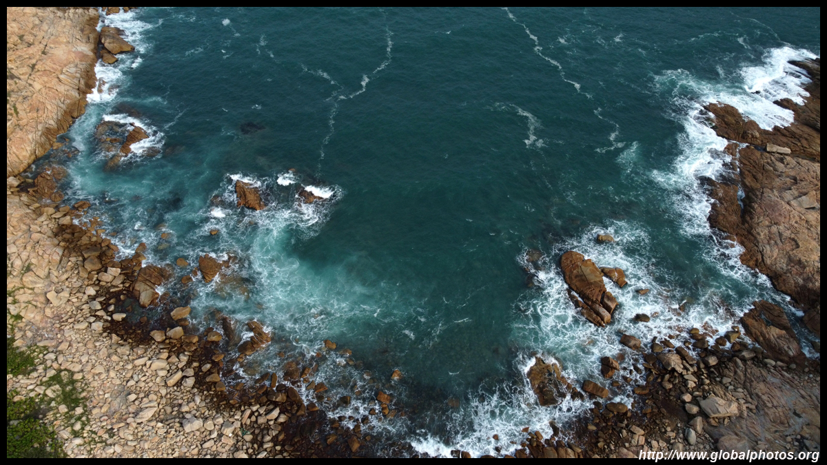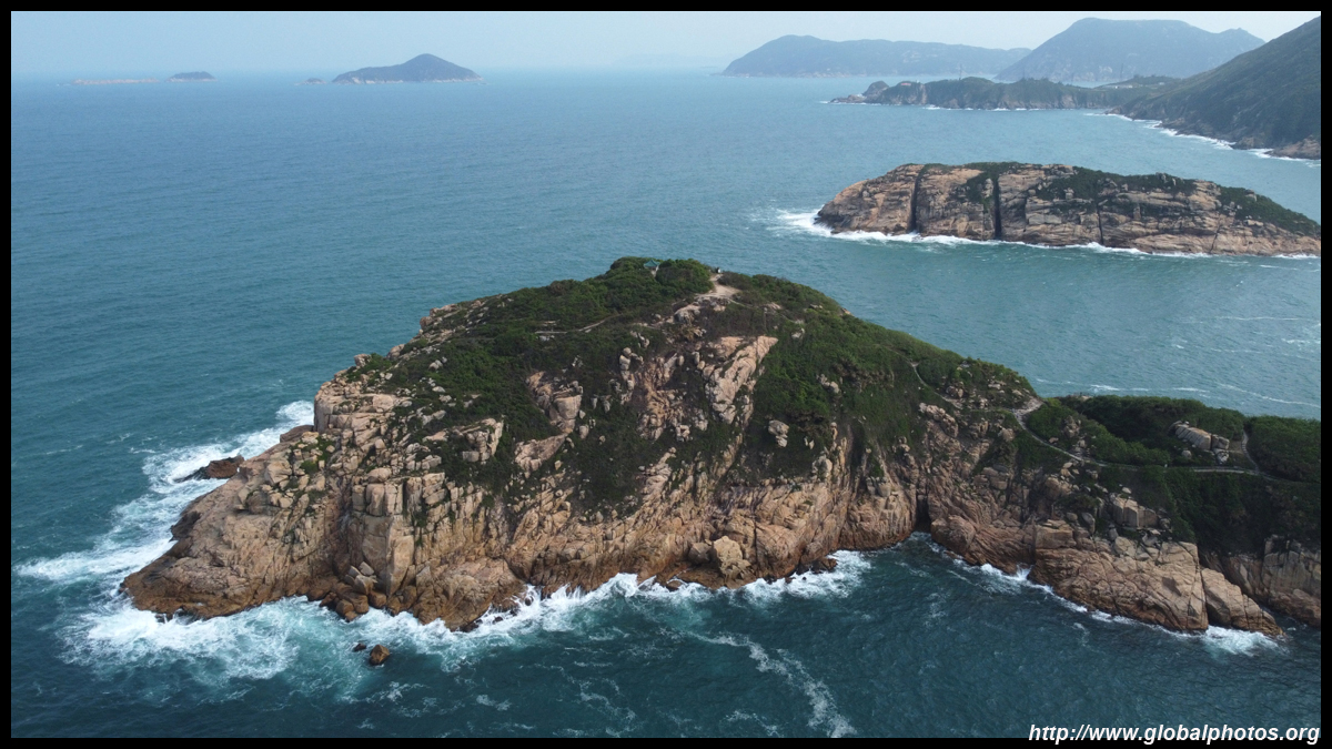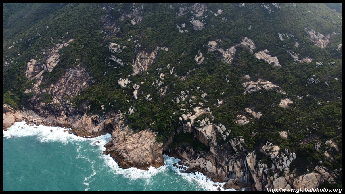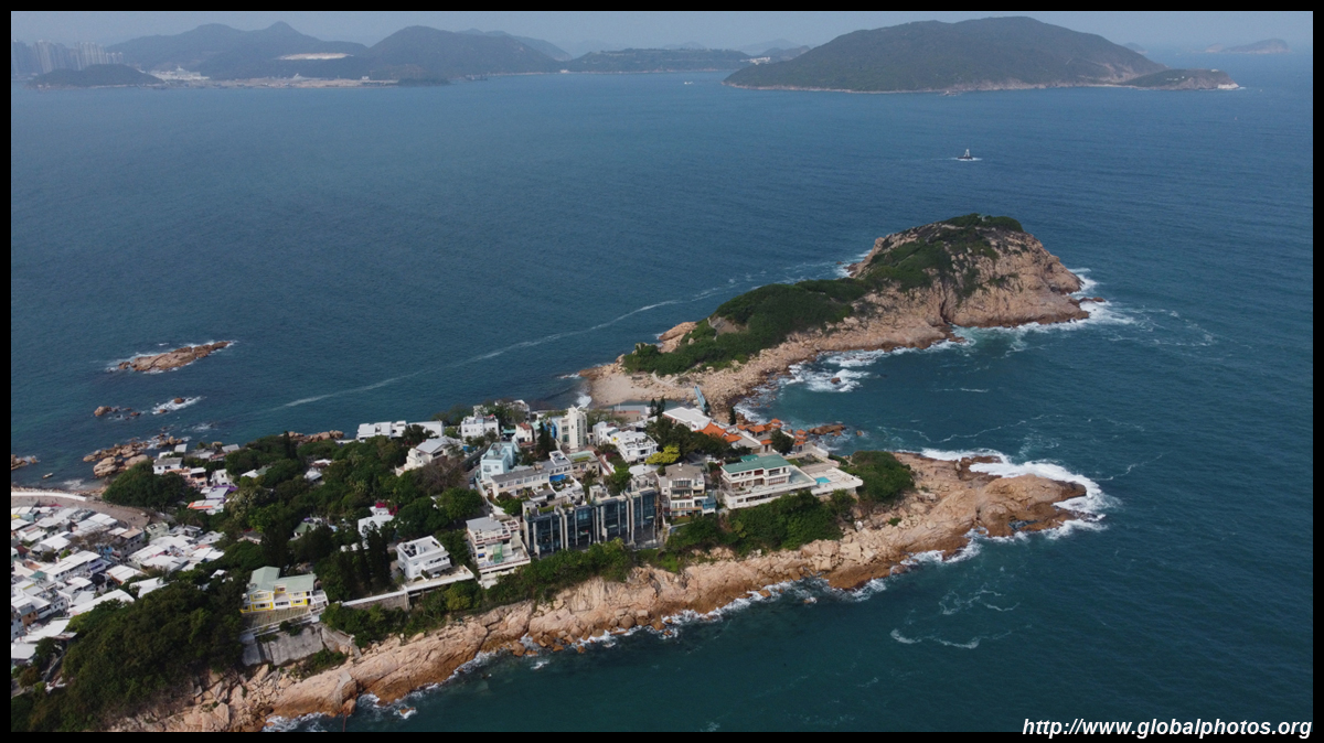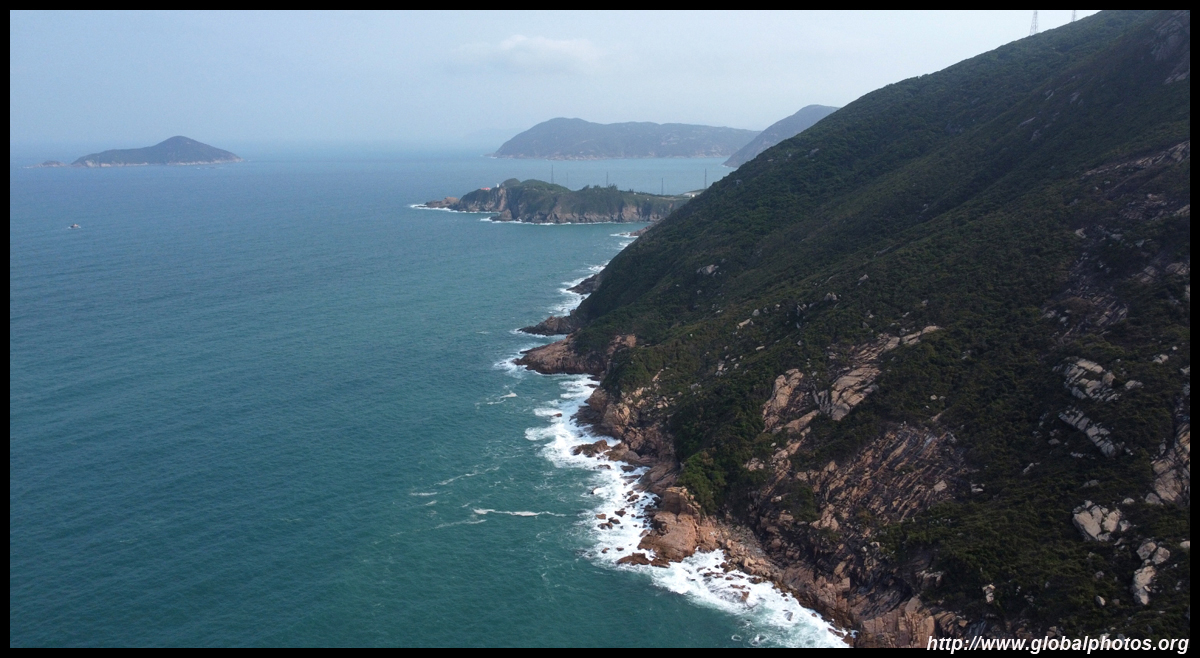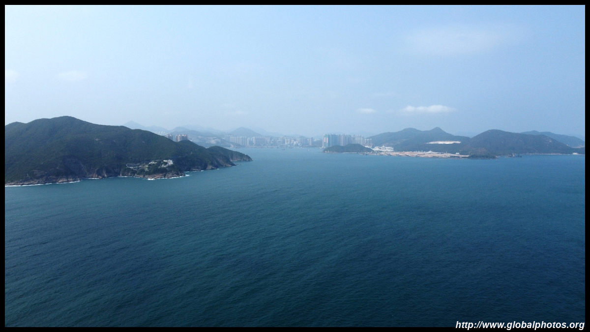 Beyond, Tseung Kwan O's skyscraper homes are visible on the other side of the coastline.
