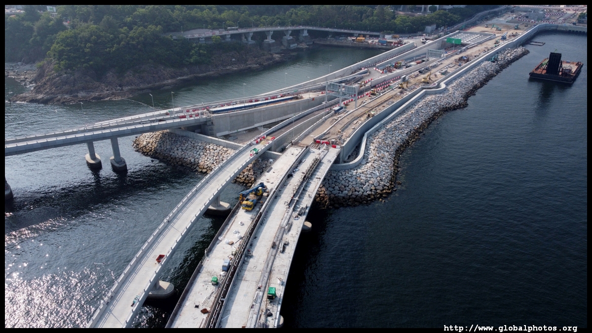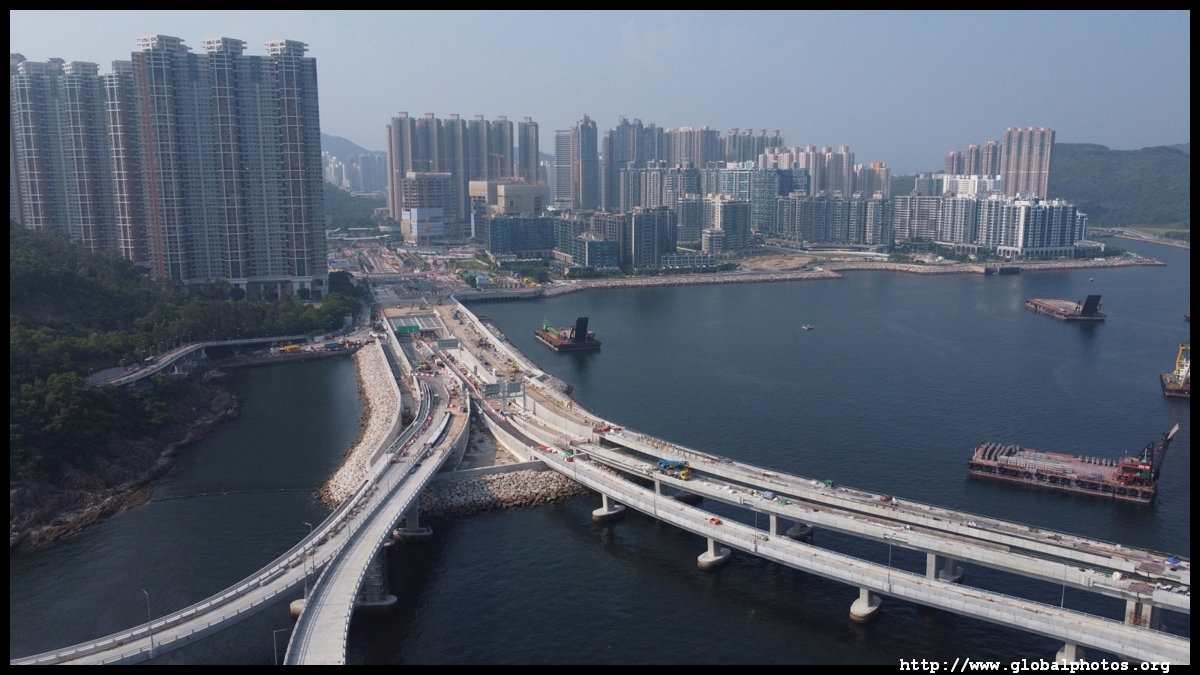 Route 6 is a new highway that will eventually connect West Kowloon with LOHAS Park with several tunnel and bridge sections that will drastically reduce travel times.The Cross Bay Link was designed to relieve traffic congestion from the newly developed LOHAS Park to Kowloon through a bypass avoiding the current Tseung Kwan O Tunnel. The bridge and tunnel project will cut across Junk Bay, then tunnel through Devil's Peak and emerge in Lam Tin on the Kowloon side. The 1.8km long bridge will link LOHAS Park with the 2.2km Tseung Kwan O - Lam Tin Tunnel. They are expected to divert about 40% of the traffic currently using the Tseung Kwan O Tunnel to reach Kowloon, or up to 36,000 vehicles a day. Both opened in December 2022.