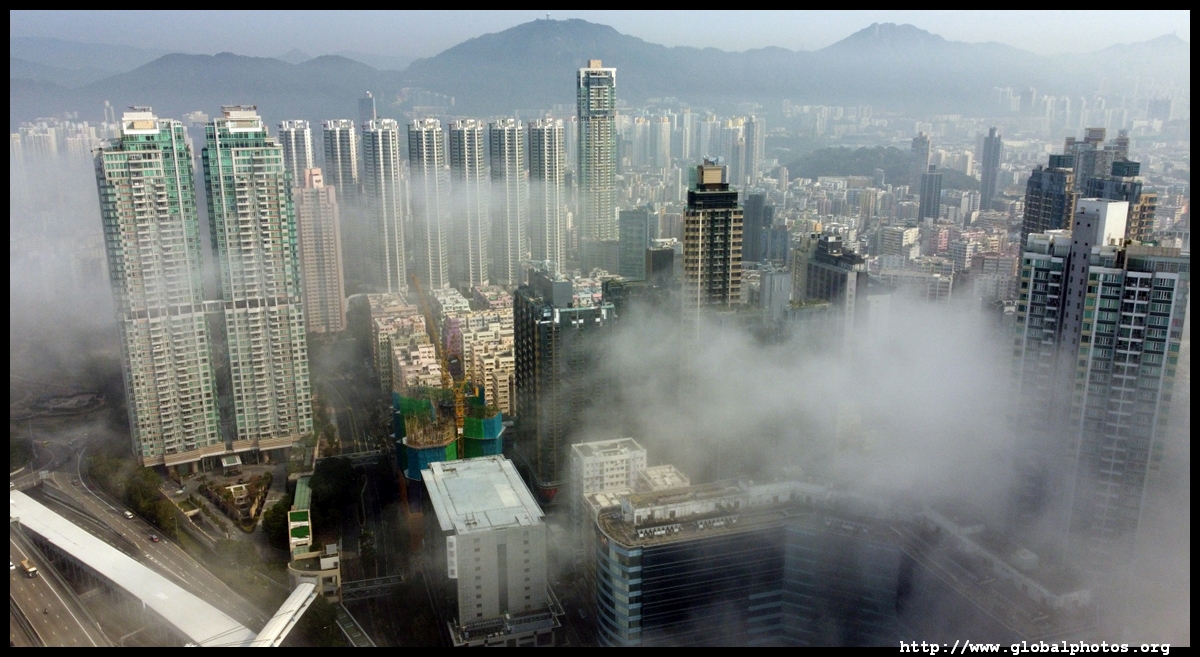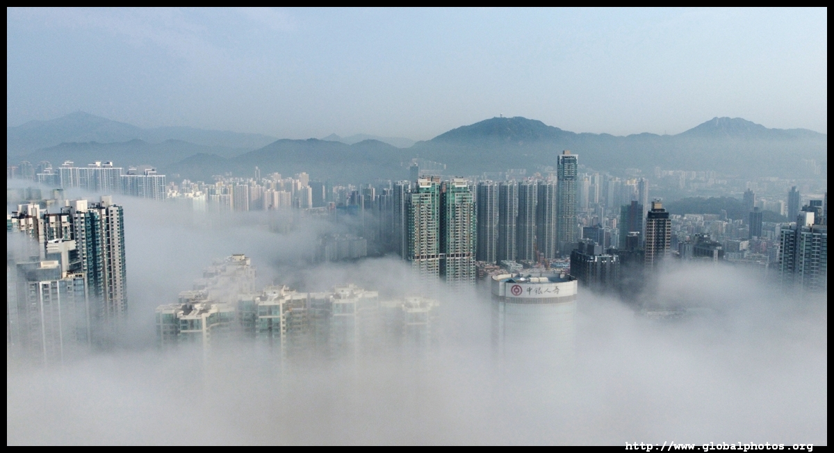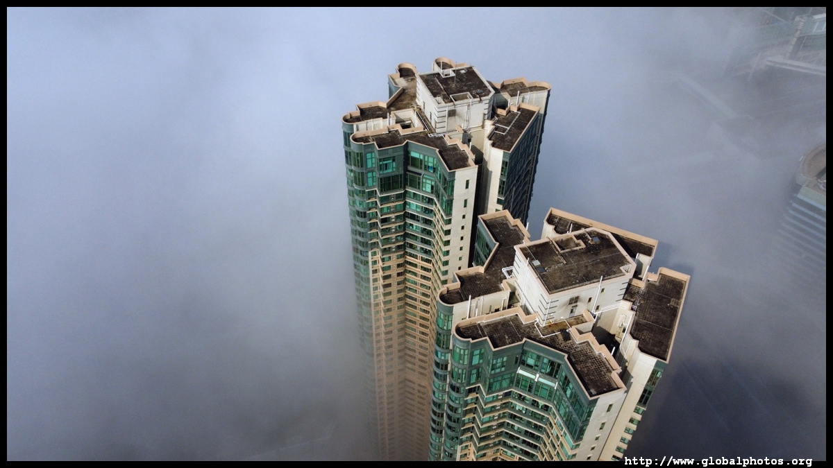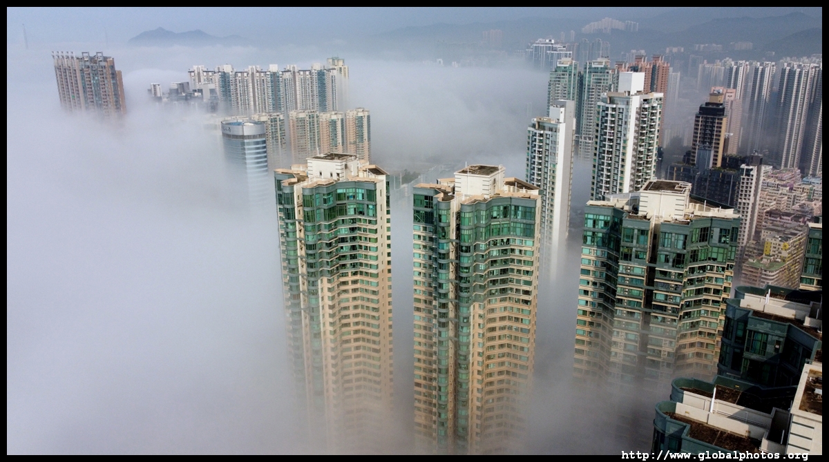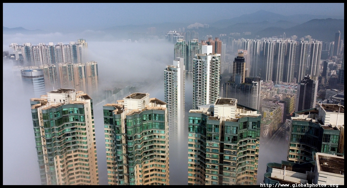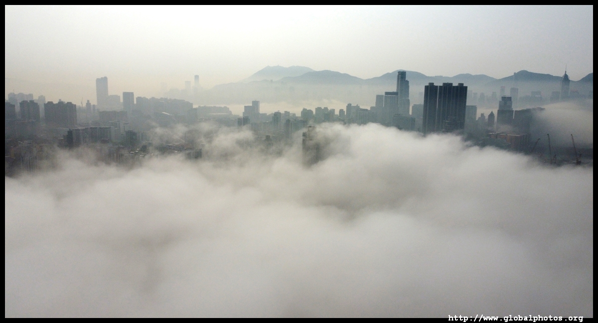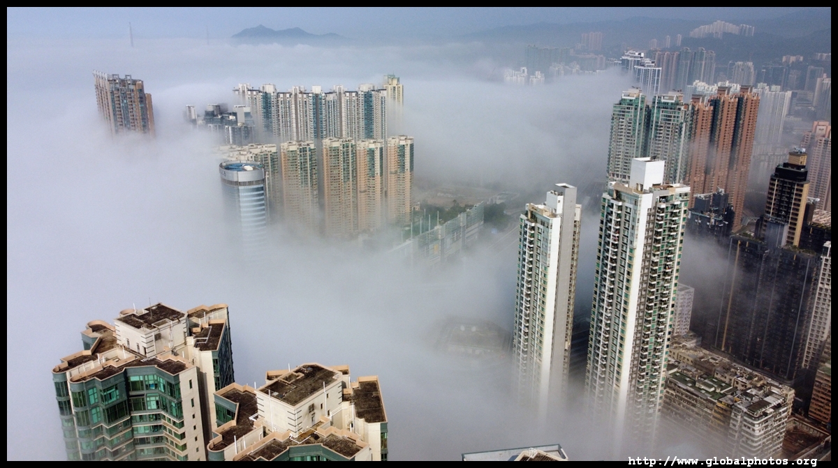 During the spring, warmer, humid air from the sea is cooled by the cold coastal waters, resulting in intense fog that is prevalent between March and April. On March 5, 2022, parts of the city were shrouded in fog but the city's tall buildings were able to pierce through at times.Here are some views from West Kowloon. The towers on top of Kowloon station were partially covered.