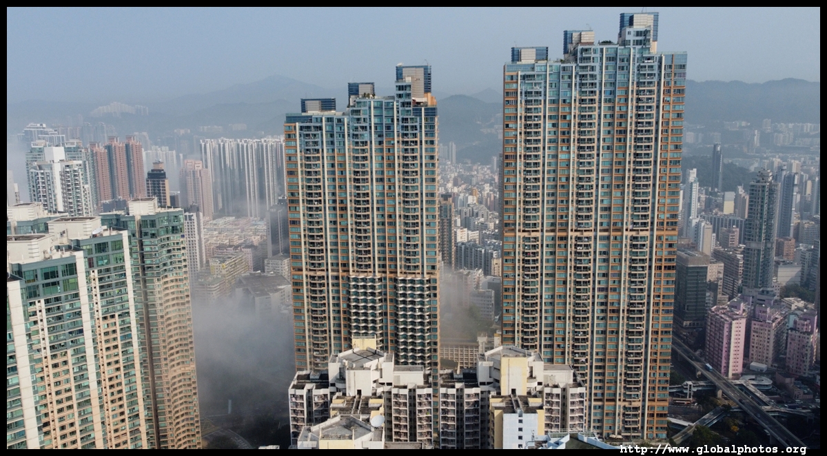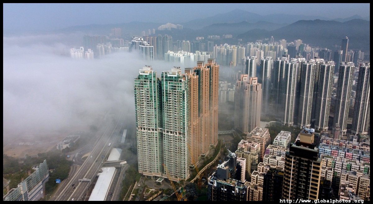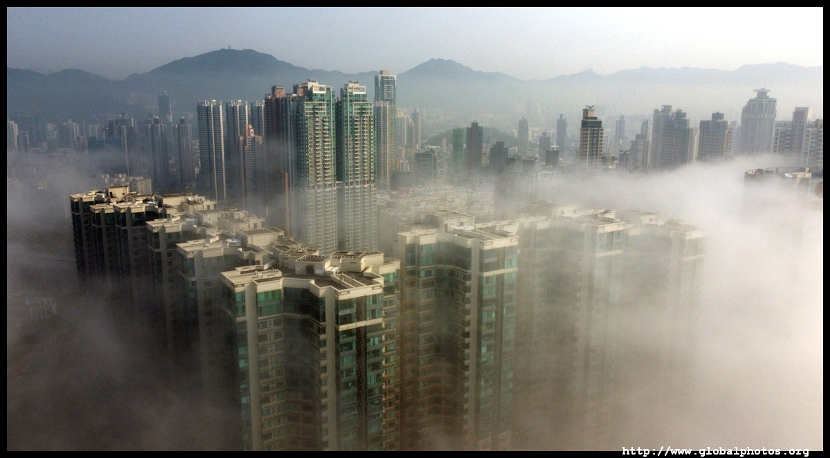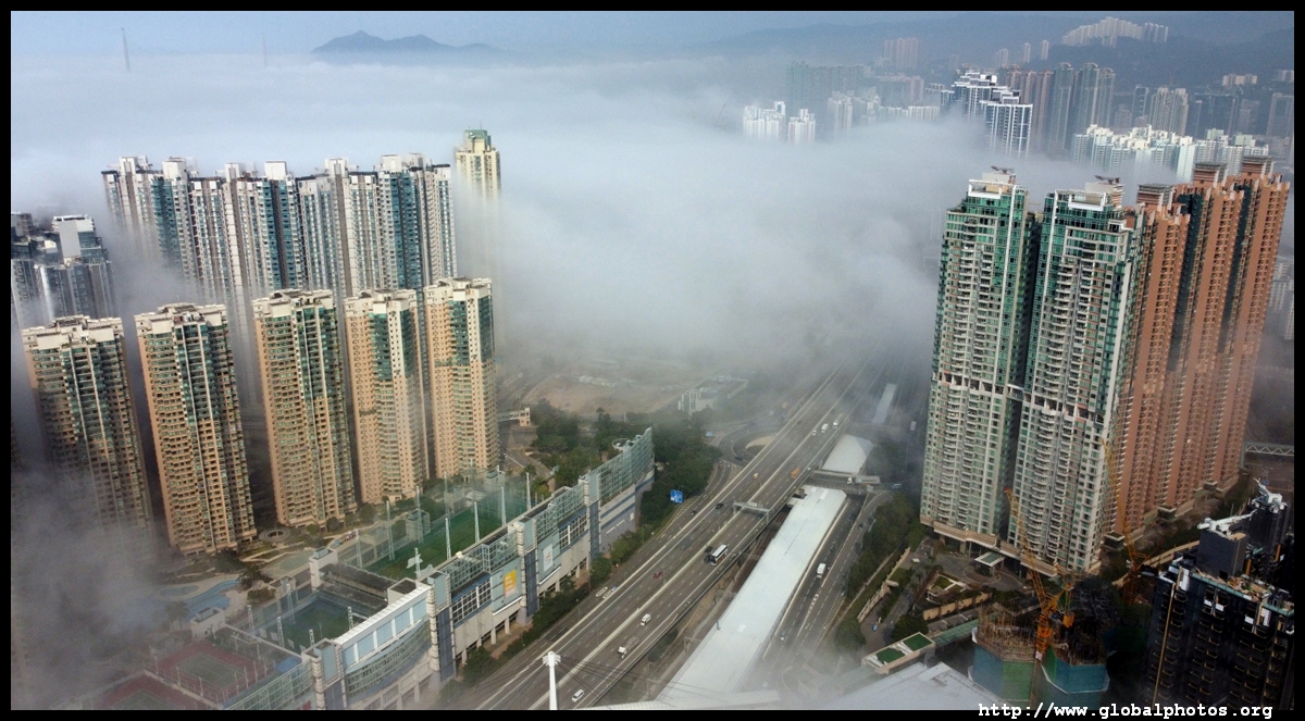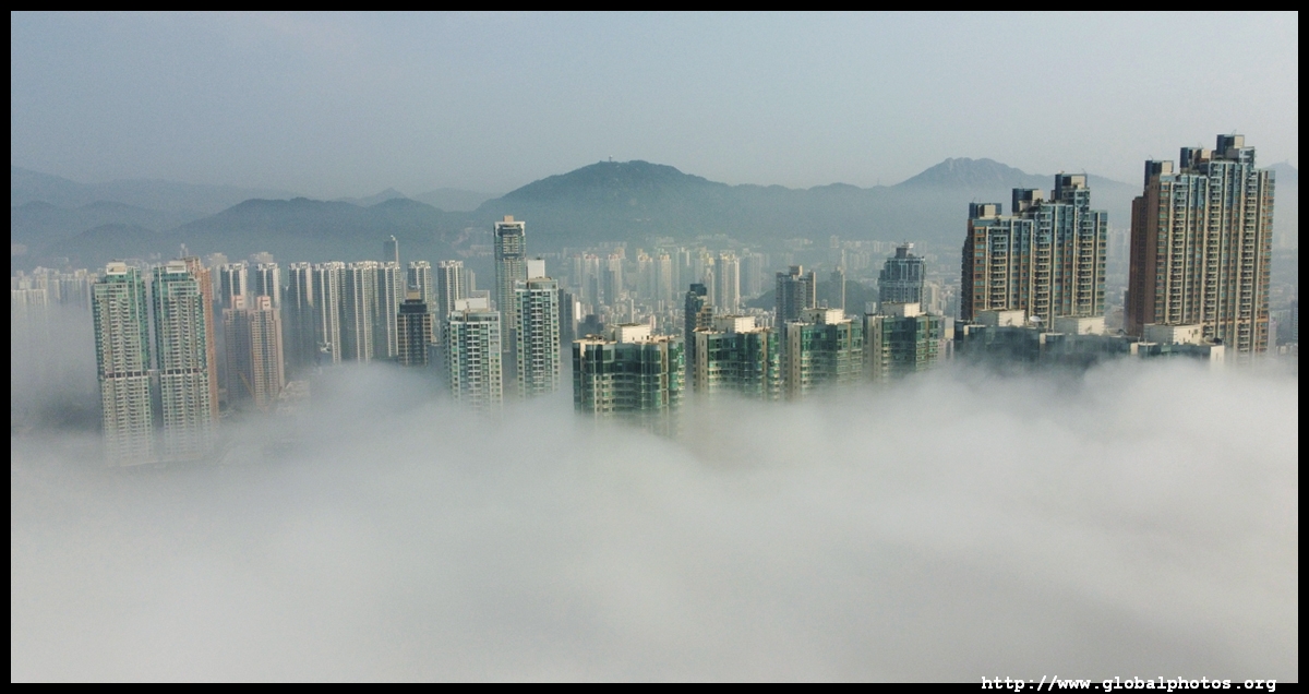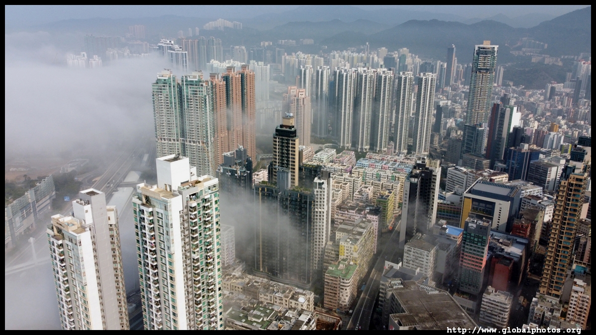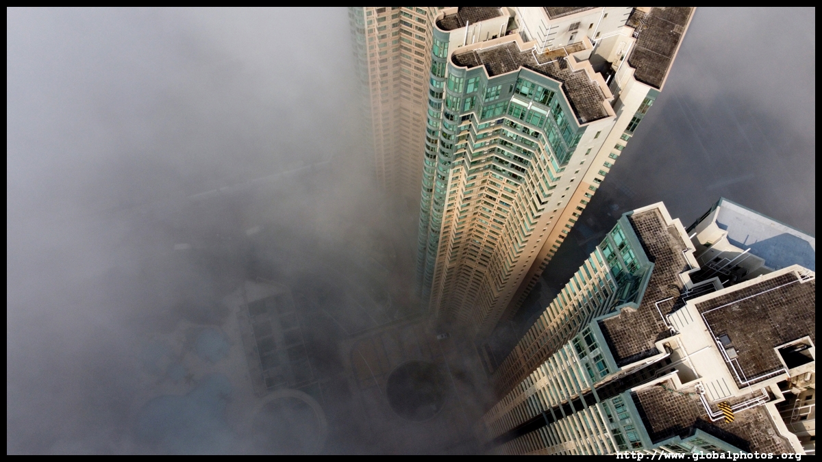 During the spring, warmer, humid air from the sea is cooled by the cold coastal waters, resulting in intense fog that is prevalent between March and April. On March 5, 2022, parts of the city were shrouded in fog but the city's tall buildings were able to pierce through at times.Here are some views from West Kowloon. The towers on top of Kowloon station were partially covered.