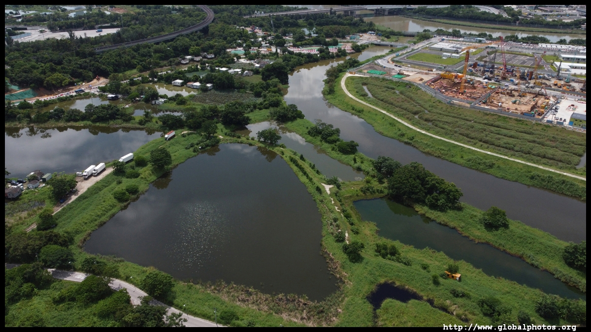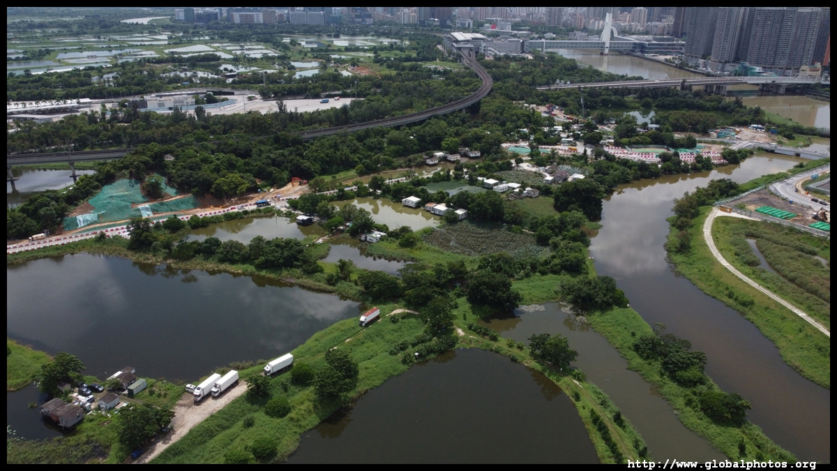 Lok Ma Chau is a sleepy rural area at the northern stretches of Hong Kong, interrupted by travellers bound for mainland China who pass through by bus and train to cross the border.However, the government has slated a piece of land at the border for a new technology park. The Lok Ma Chau Loop has a size of about 100 hectares that was formed when the Shenzhen River was diverted. Plans were disrupted as the omicron outbreak made the government change the site into a 1000-bed makeshift hospital and isolation facility for 10,000. Otherwise, this area is lowrise with villages, farms, and ponds dotting the landscape.