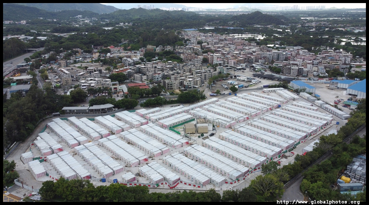 A bit further away and closer to the highway back to the city is another COVID isolation facility at San Tin. Built on the former outlet mall The Boxes in March 2022, it has 720 rooms and 2800 isolation beds.