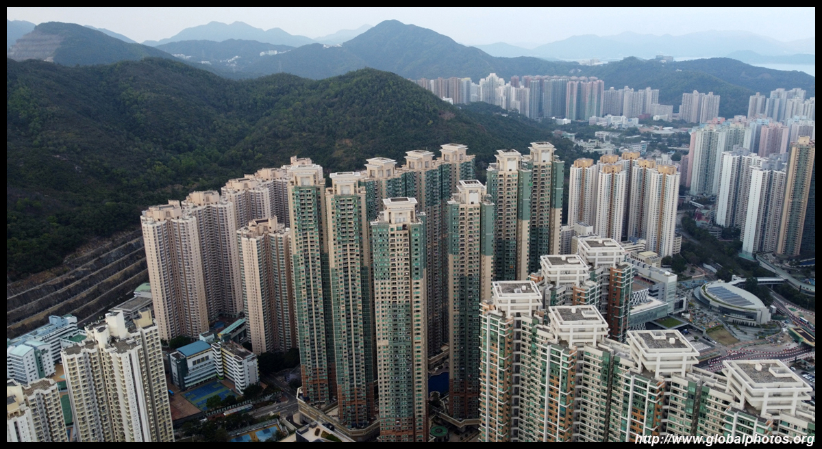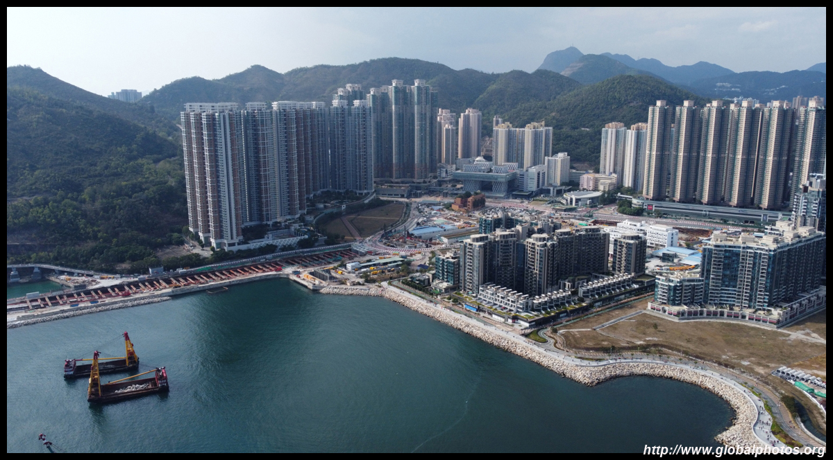 Across the street on the other side of Tiu Keng Leng station is another private development, Metro Town. Public housing estates cluster further beyond.