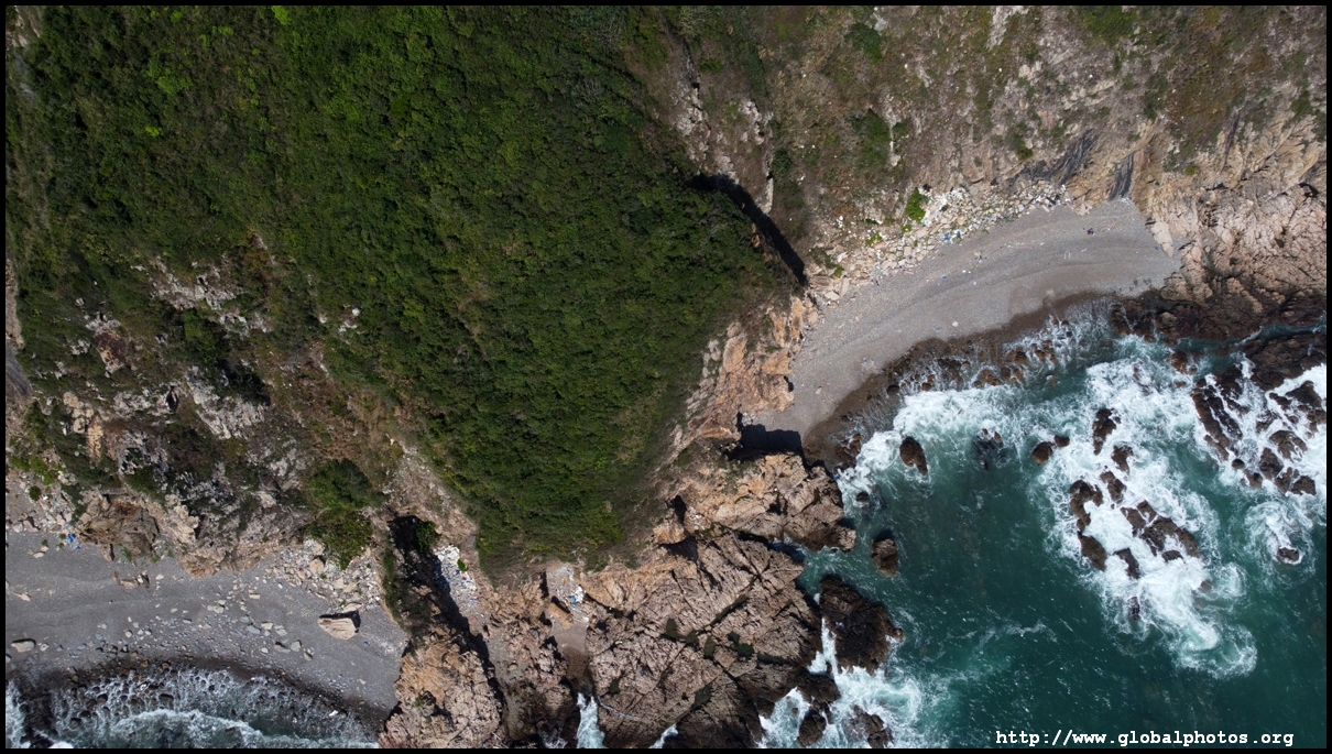 The hiking trail runs above the coastline with lots of rocky inlets.