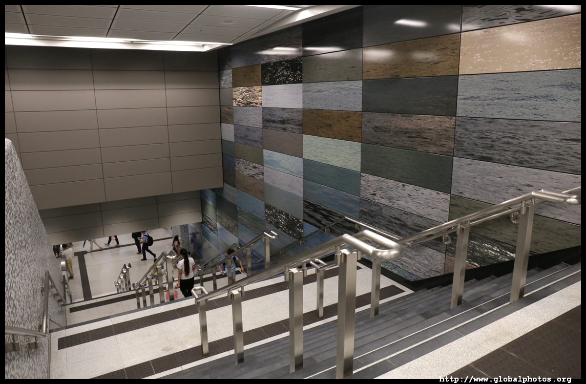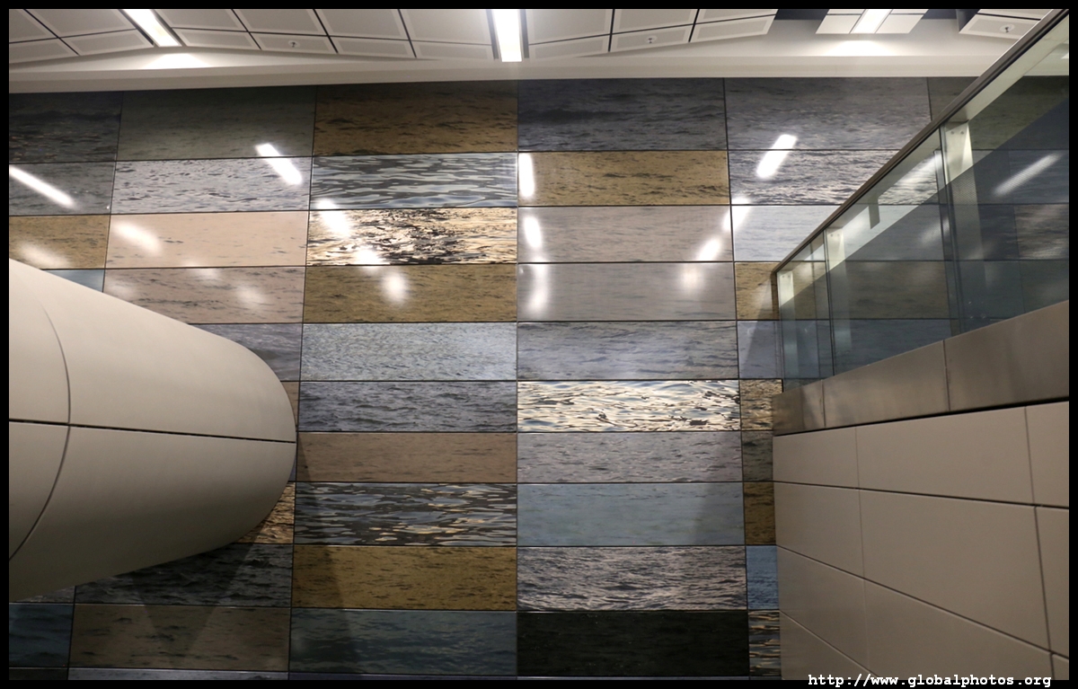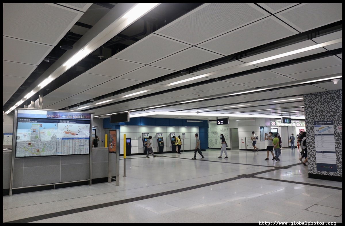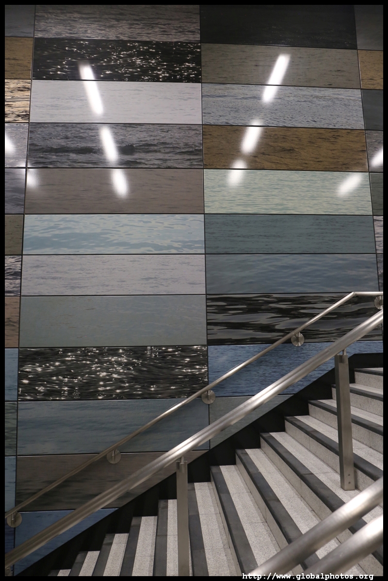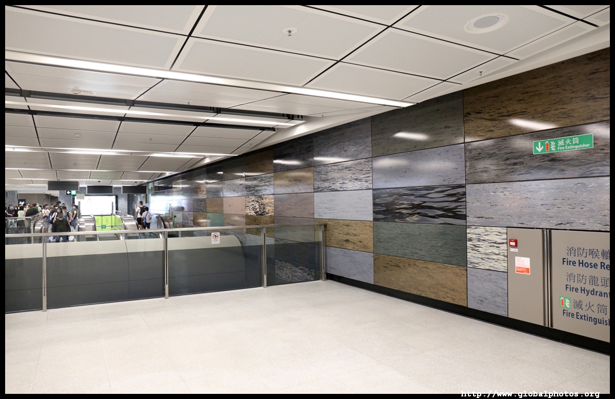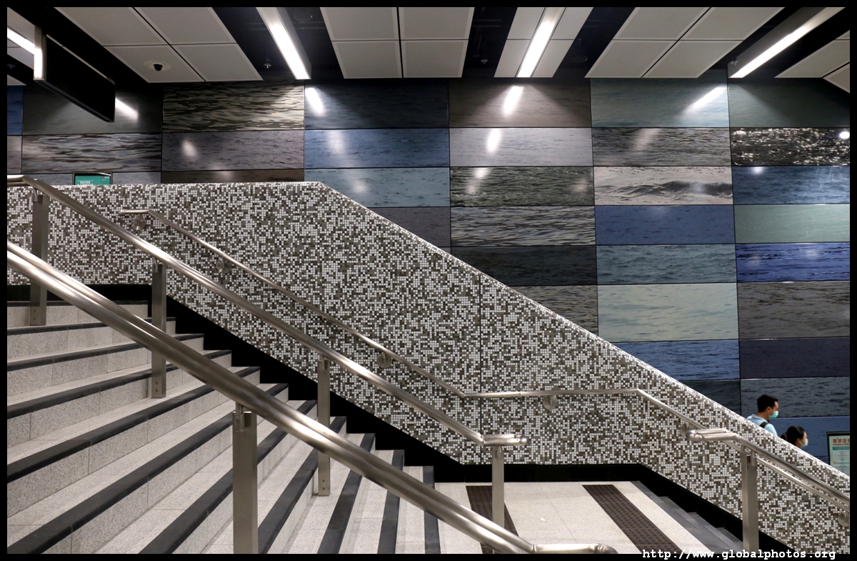 Inspired by its location near the harbour, local artist Leung Chi Wo used some 1200 photos of the harbour to decorate the station's walls that align in the direction of the sea.