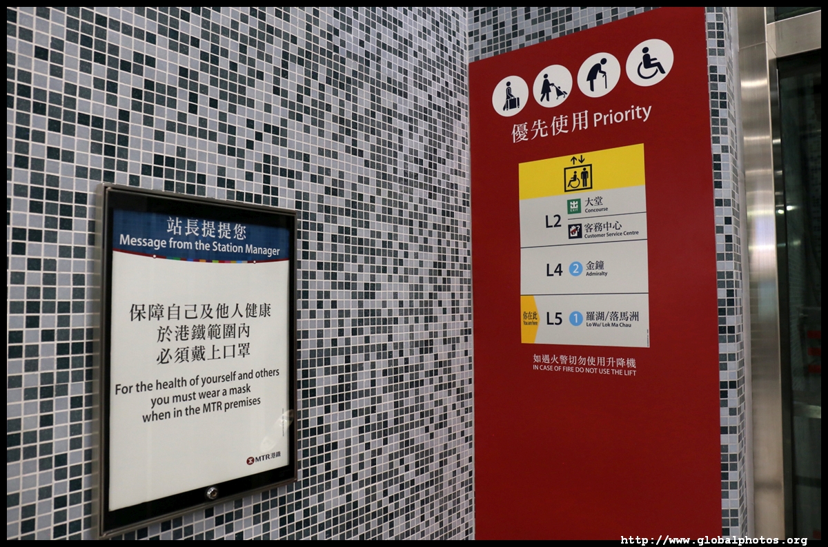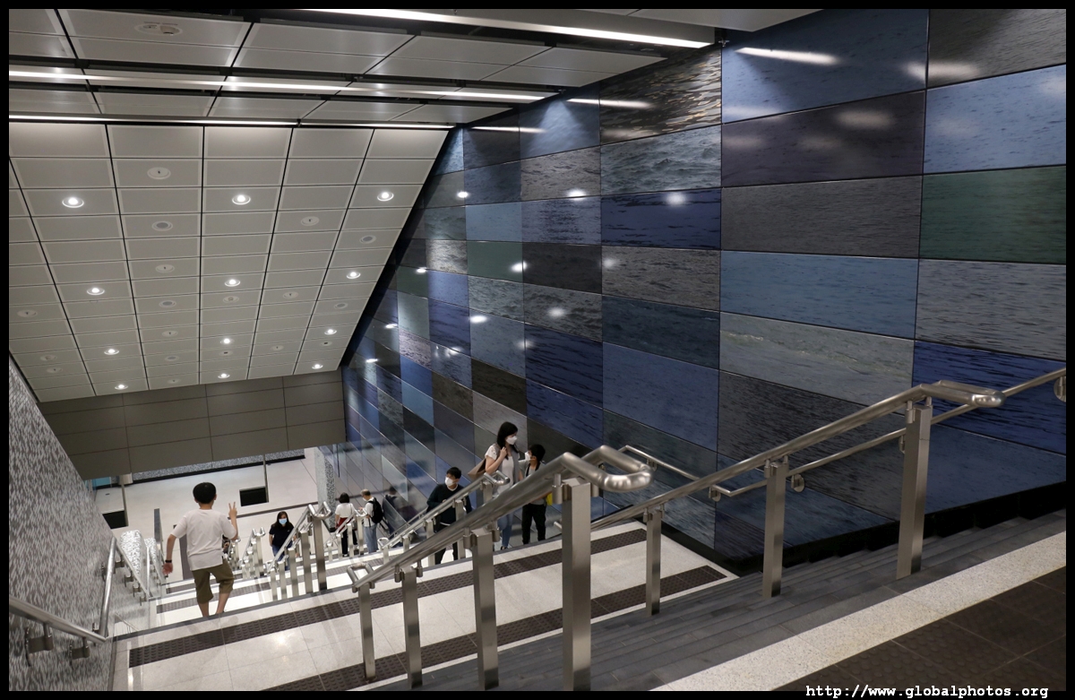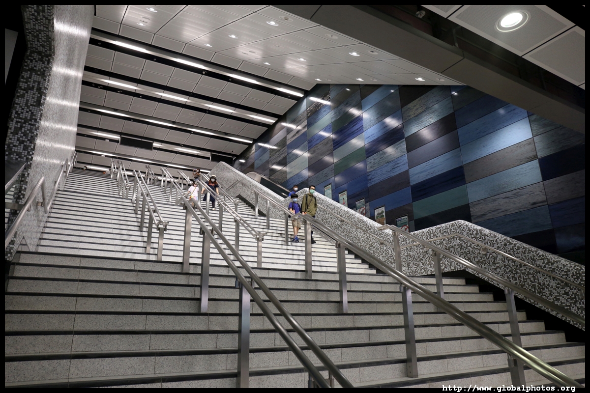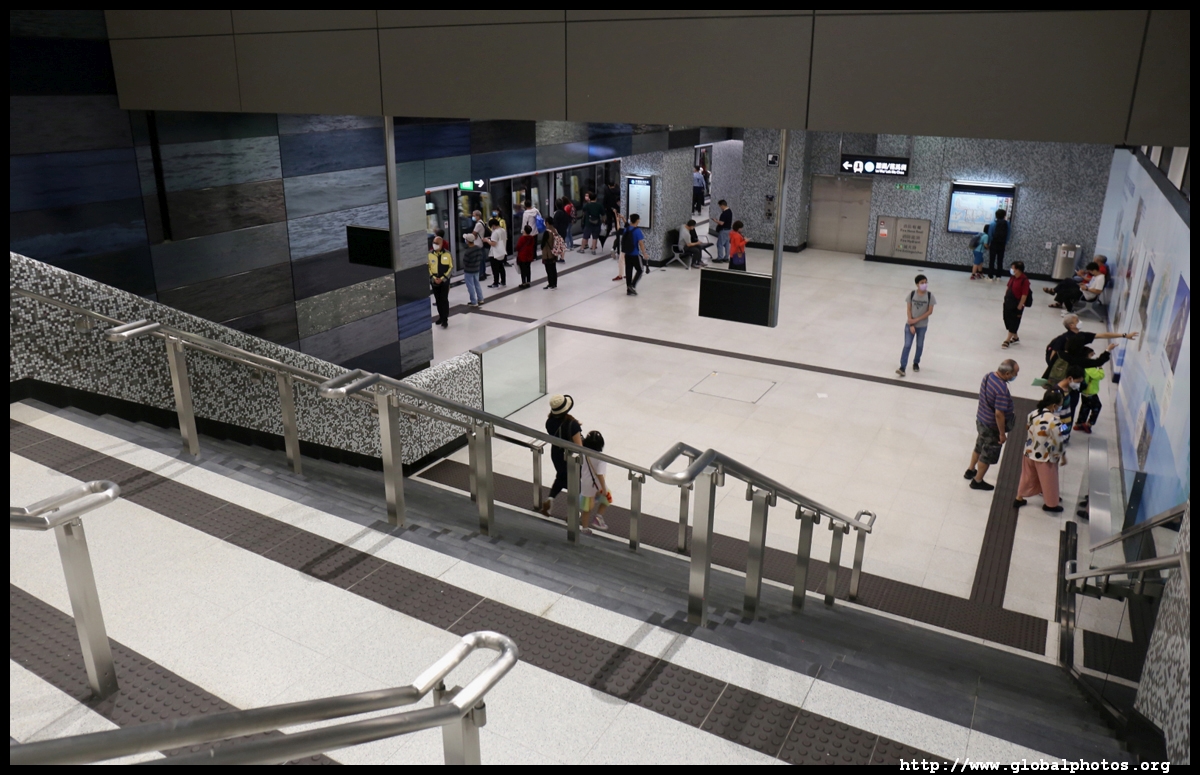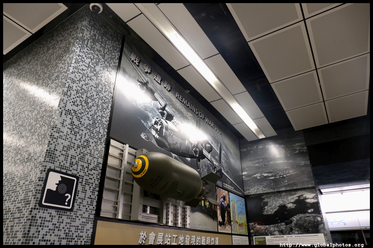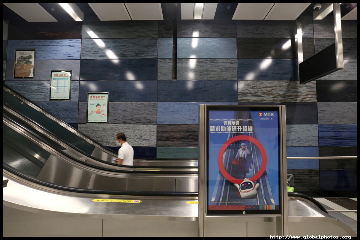 Inspired by its location near the harbour, local artist Leung Chi Wo used some 1200 photos of the harbour to decorate the station's walls that align in the direction of the sea.