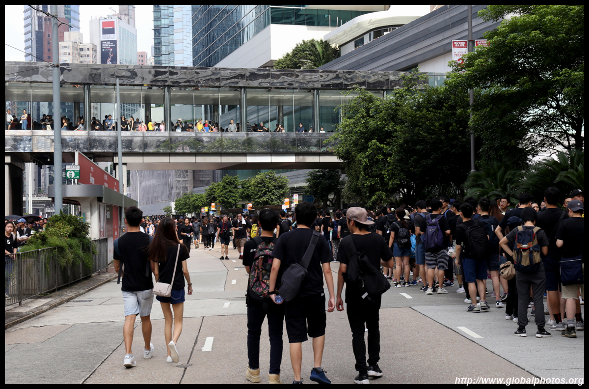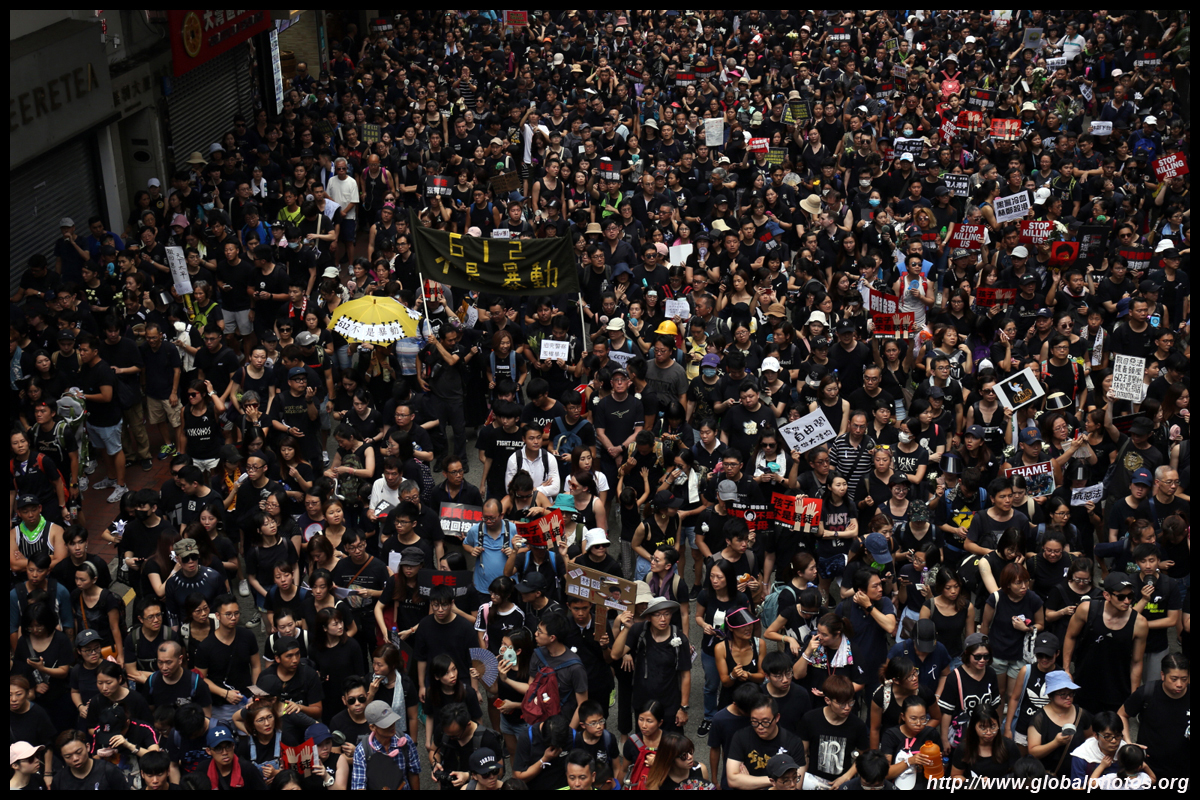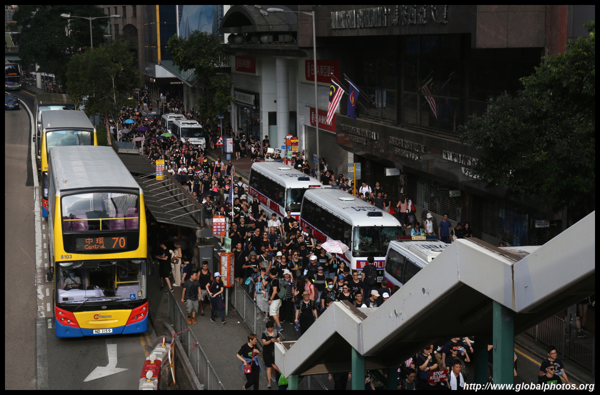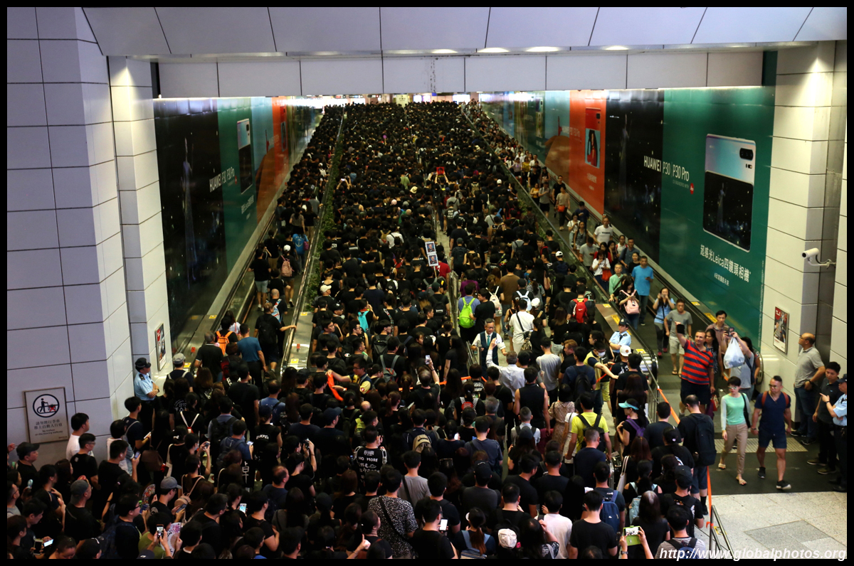 For a second Sunday in a row, massive protests broke out to scrap the bill. The atmosphere was tense following violent clashes the Wednesday before, and there was anger at the police for using excessive force. Organizers claimed almost 2 million people took part in the protests, which forced the Chief Executive, Carrie Lam, to issue an apology.Protesters poured to Hong Kong Island on the trains, wearing black.