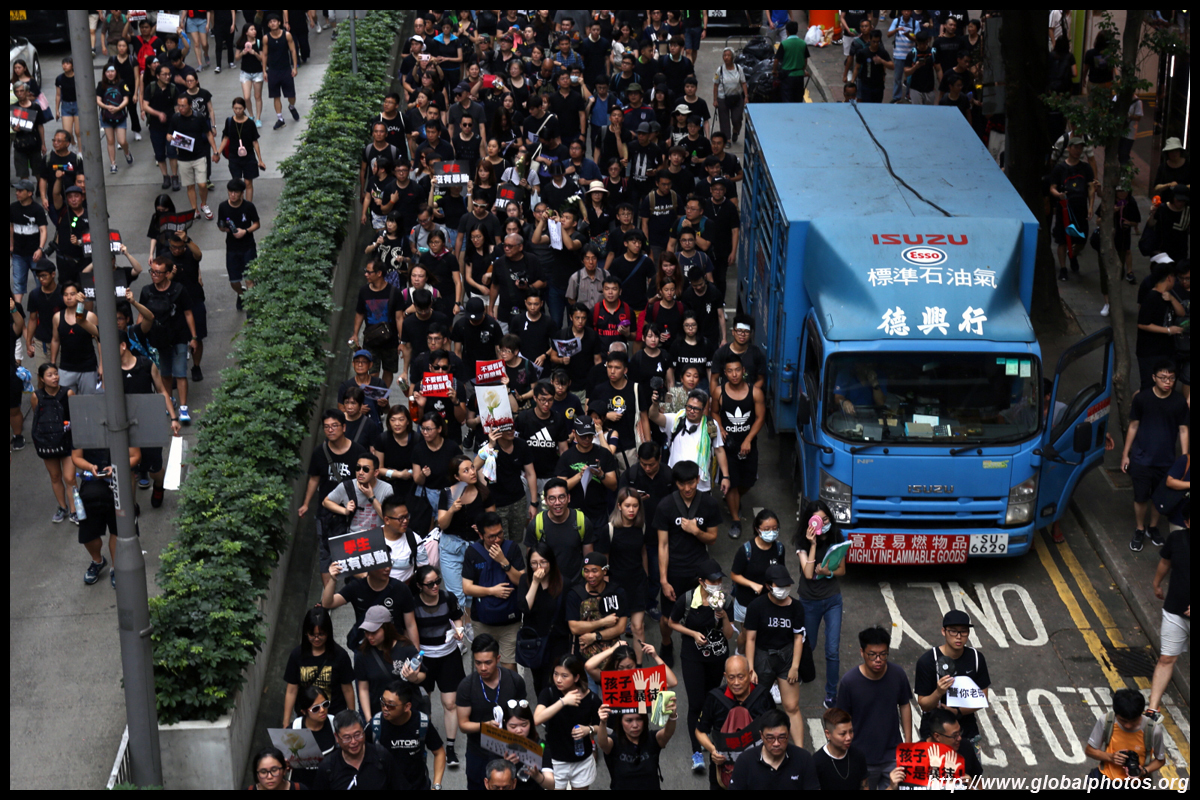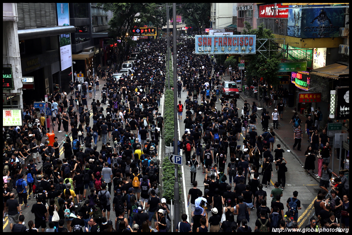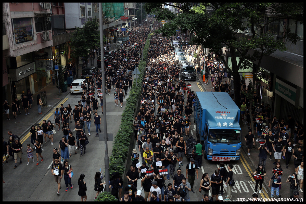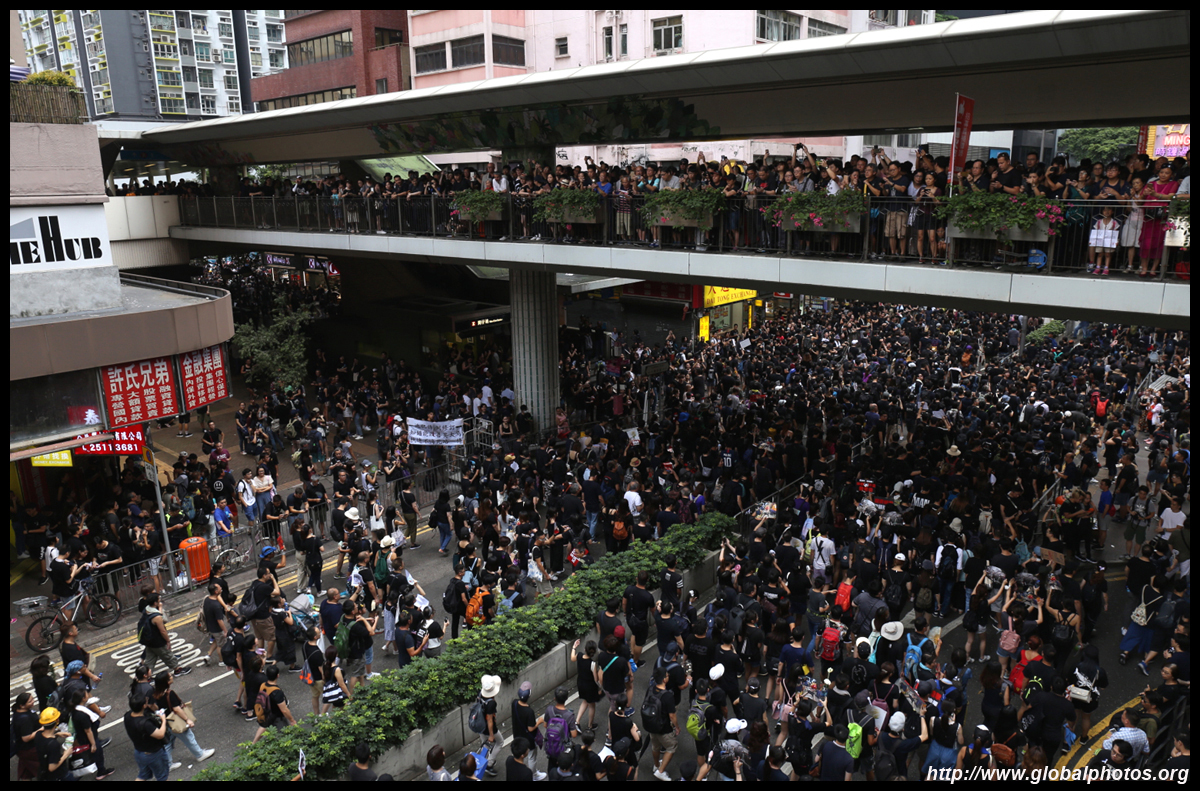 For a second Sunday in a row, massive protests broke out to scrap the bill. The atmosphere was tense following violent clashes the Wednesday before, and there was anger at the police for using excessive force. Organizers claimed almost 2 million people took part in the protests, which forced the Chief Executive, Carrie Lam, to issue an apology.Protesters poured to Hong Kong Island on the trains, wearing black.