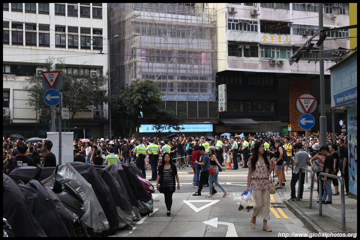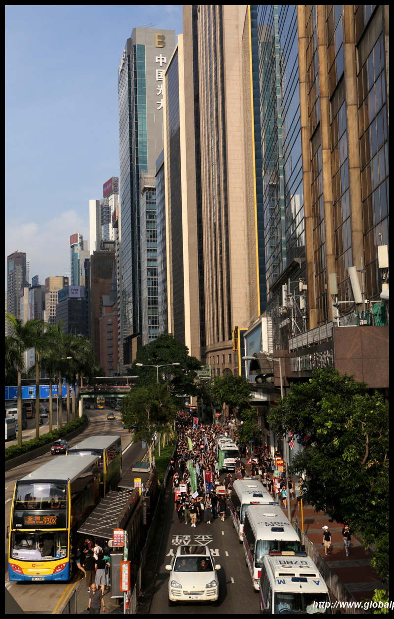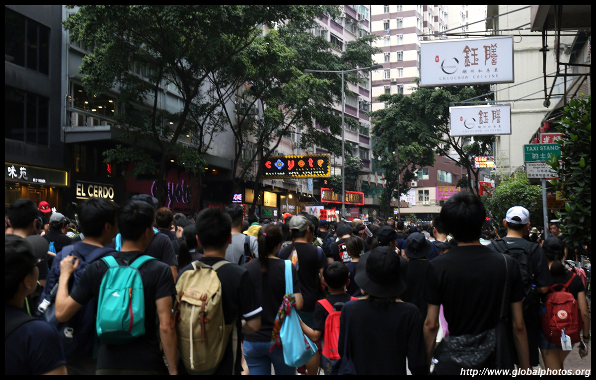 The main protest was on Hennessy Road heading west through Wanchai. The crowds were so big, they eventually spilled into neighbouring parallel streets.