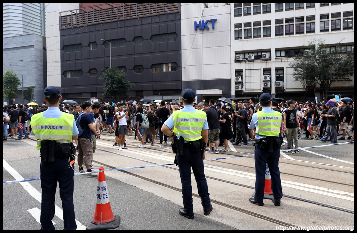 At many interchange stations, crowd control measures were in place due to the huge mass of people getting to Victoria Park for the start of the protest.