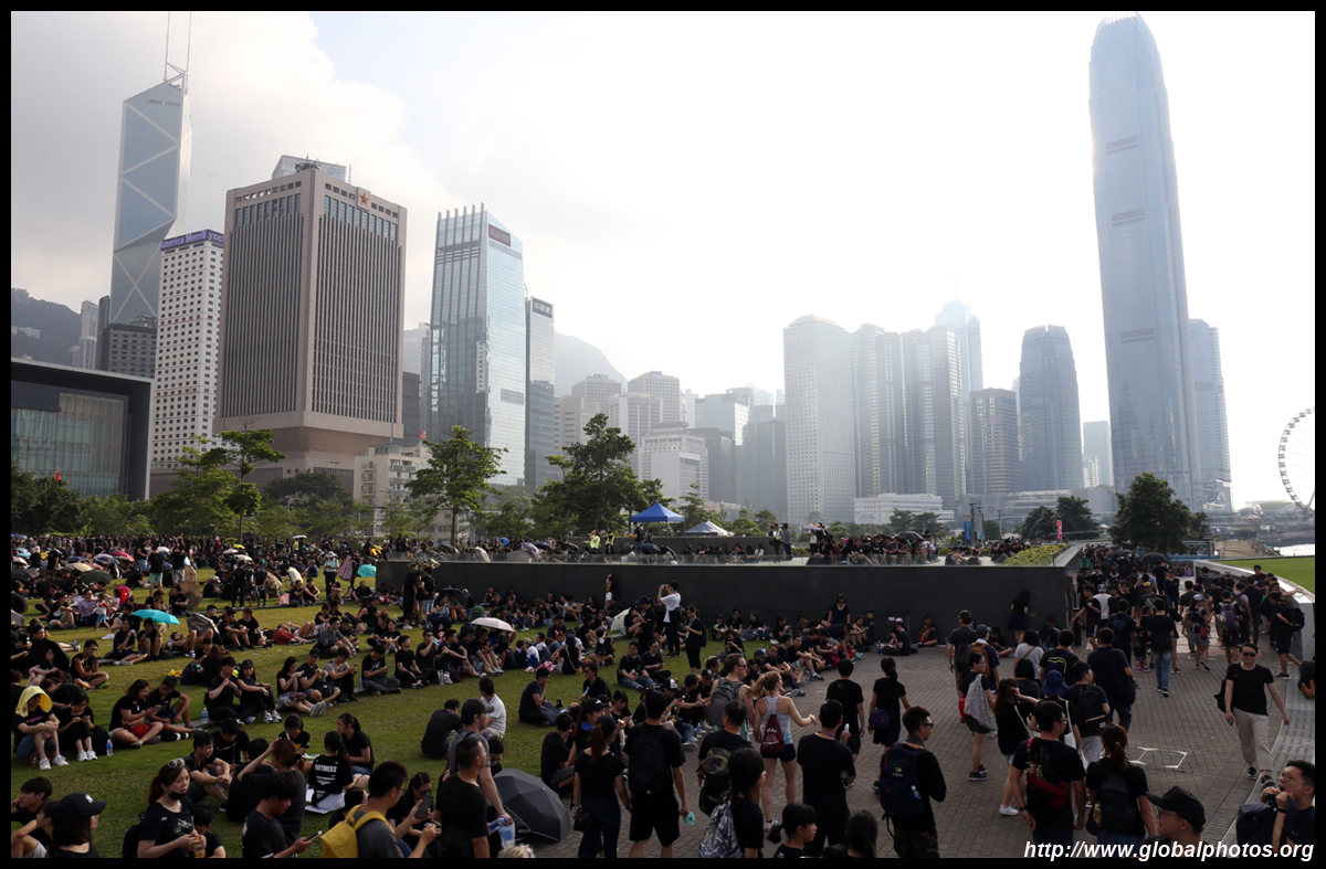 The end point of the protest was at the Government Headquarters in Admiralty, which was where violent clashes with police broke out on Wednesday. The atmosphere was relaxed, with many protesters enjoying the sun and sea breeze after a long march.