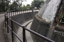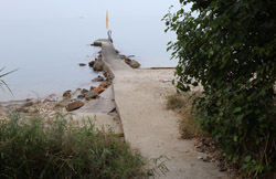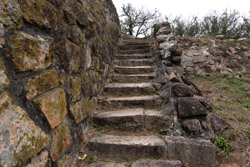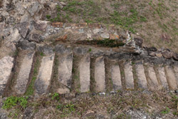 Heading to the other side of the beach, there is a staircase heading back up through some abandoned buildings.
