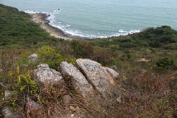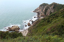 I emerged onto a quiet beach, which is a good stop for lunch by the sea. Fan Lau and this part of southwestern Lantau remains quite isolated, with no roads and only accessible on foot or by boat. Although seemingly an empty area, there was quite a lot of garbage that had washed up on the beach.