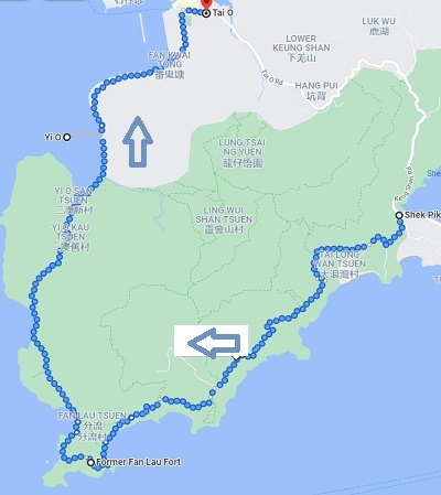 In the distance is Fan Lau, named after the point where the Pearl River meets the South China Sea. The fresh and seawater mix is supposed to be visible through colour change but it was too cloudy to see this effect today.