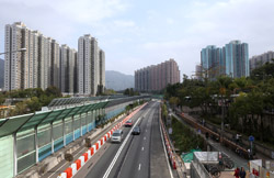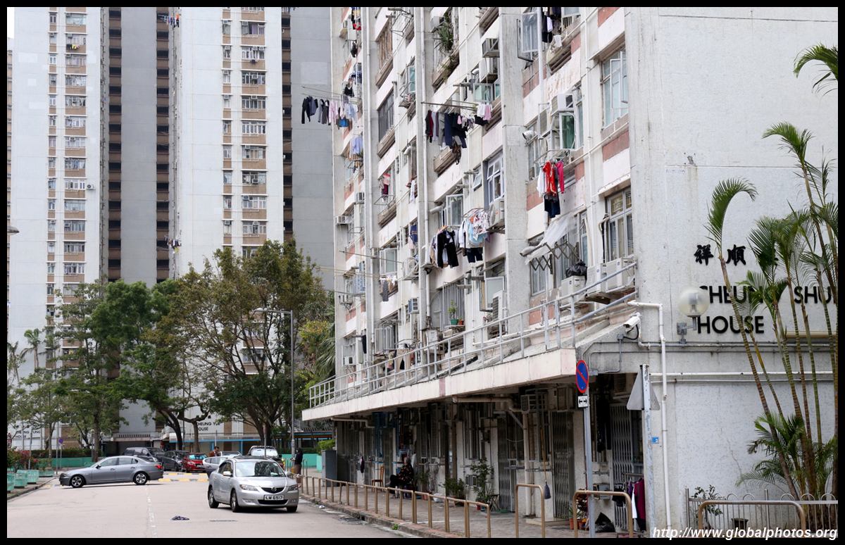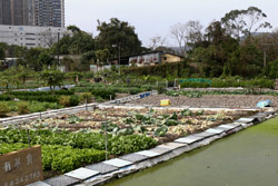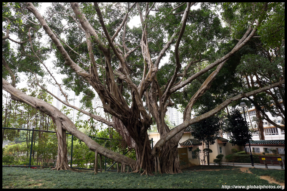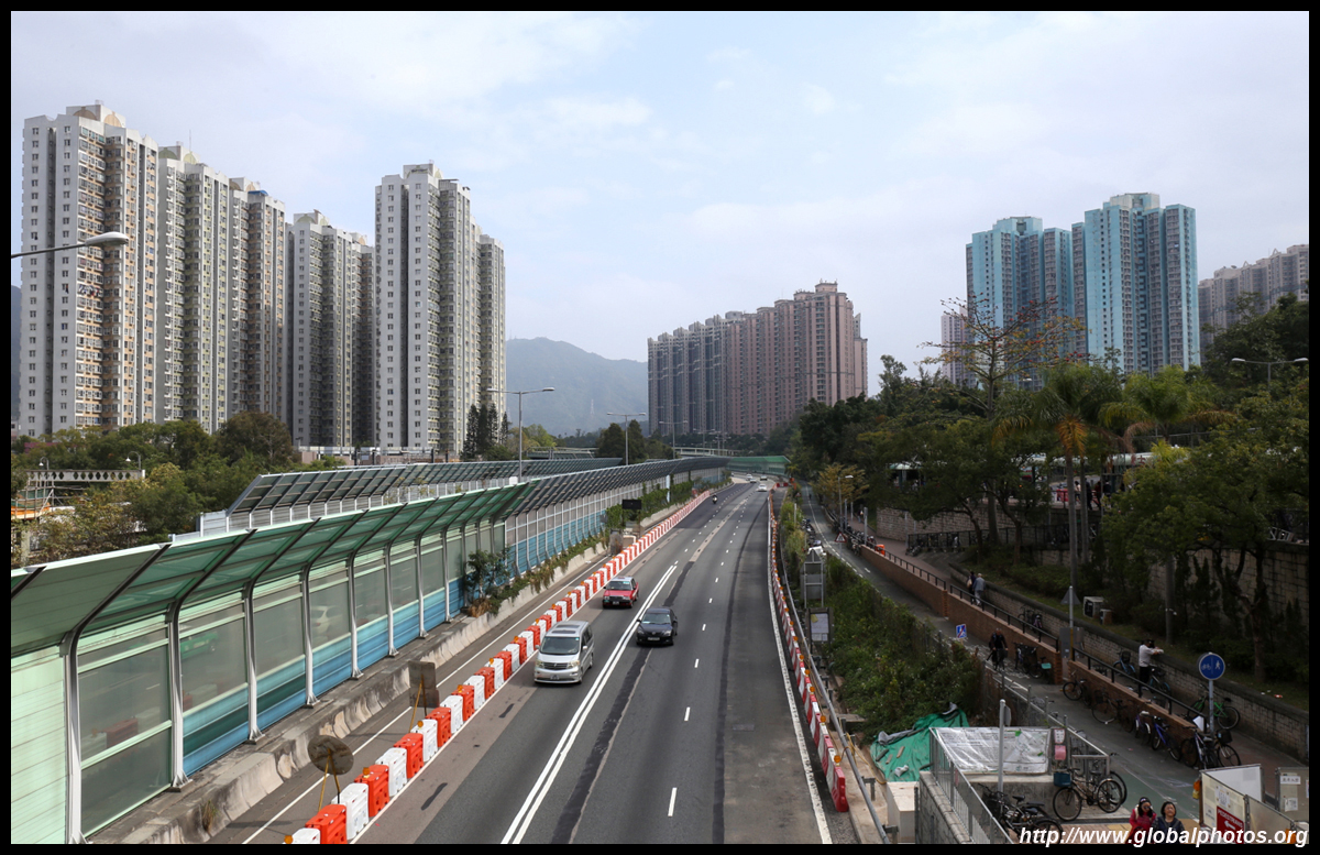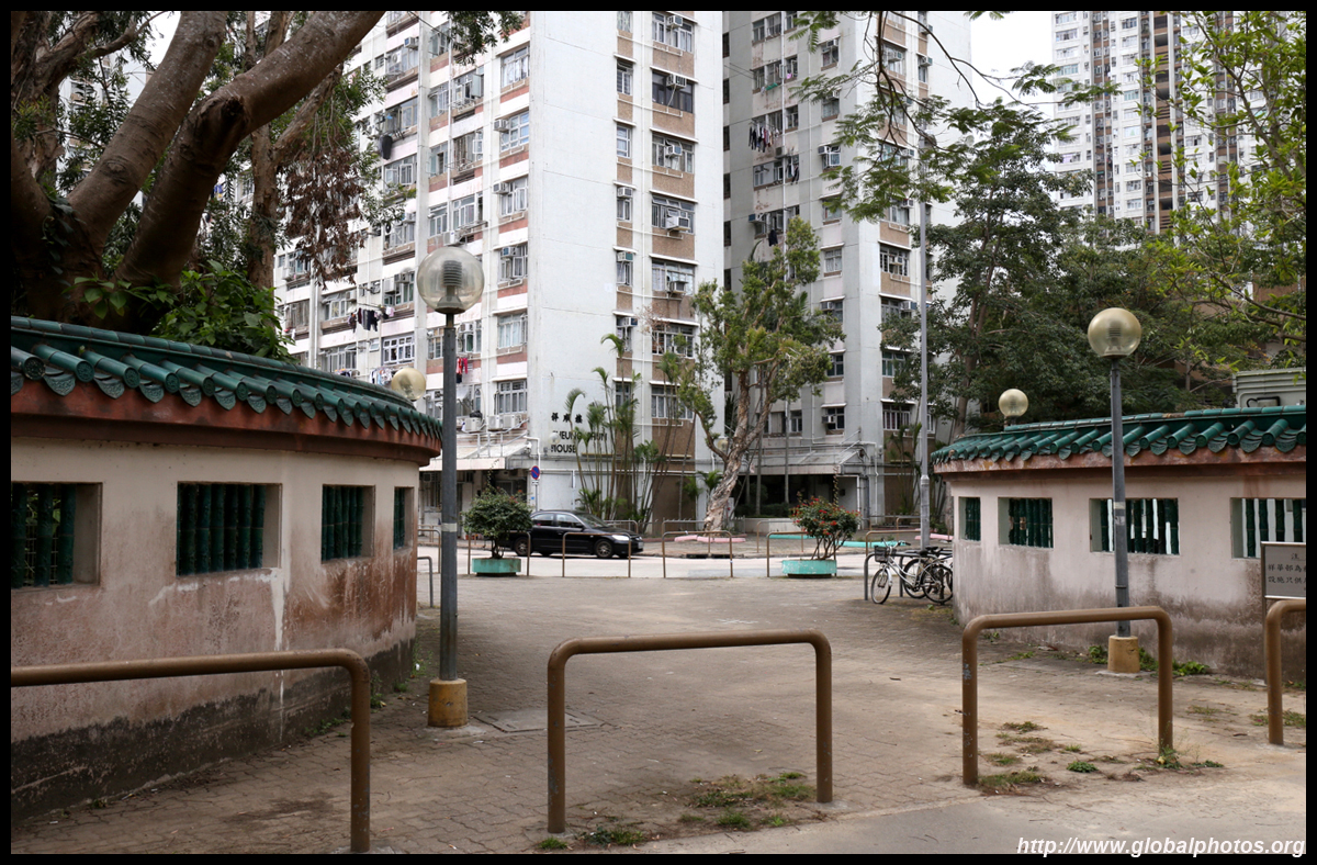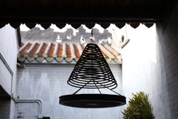 Fung Ying Seen Koon is a Taoist temple just steps from the MTR station. Built along a slope, the structures face the suburban residential towers on the other side of the tracks.