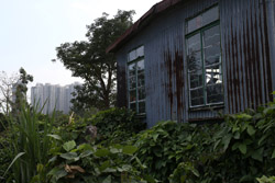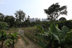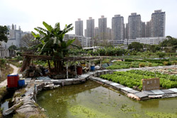 The area is still a living village with farms set against a backdrop of residential towers in the distance.
