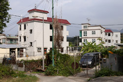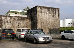 San Wai is another walled village with thick brick walls. Elevated watch towers stand on the four corners, while the moat that once surrounded the walls has been filled in and is now a parking lot.
