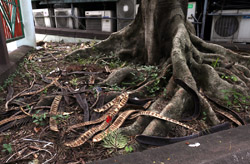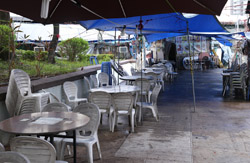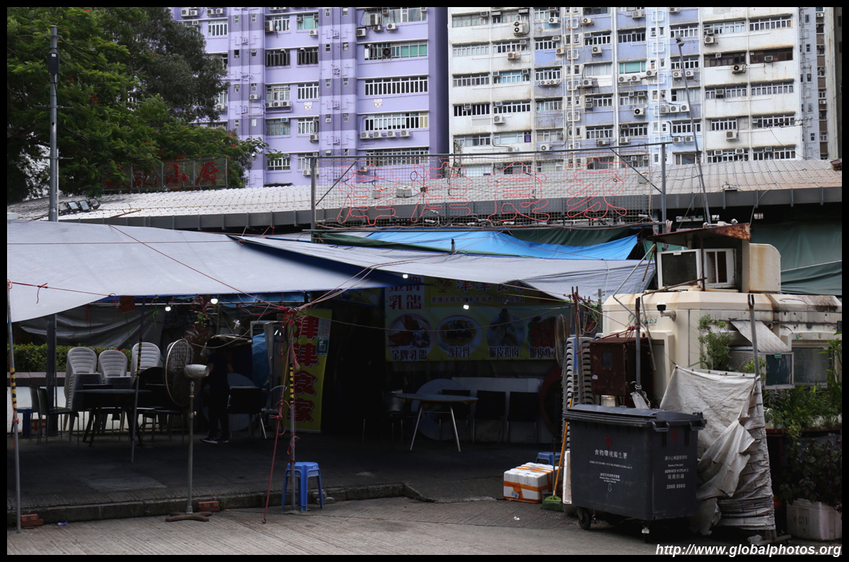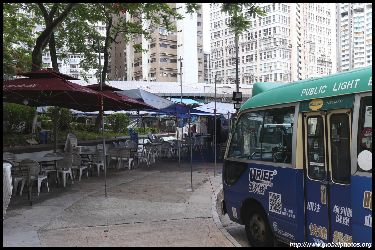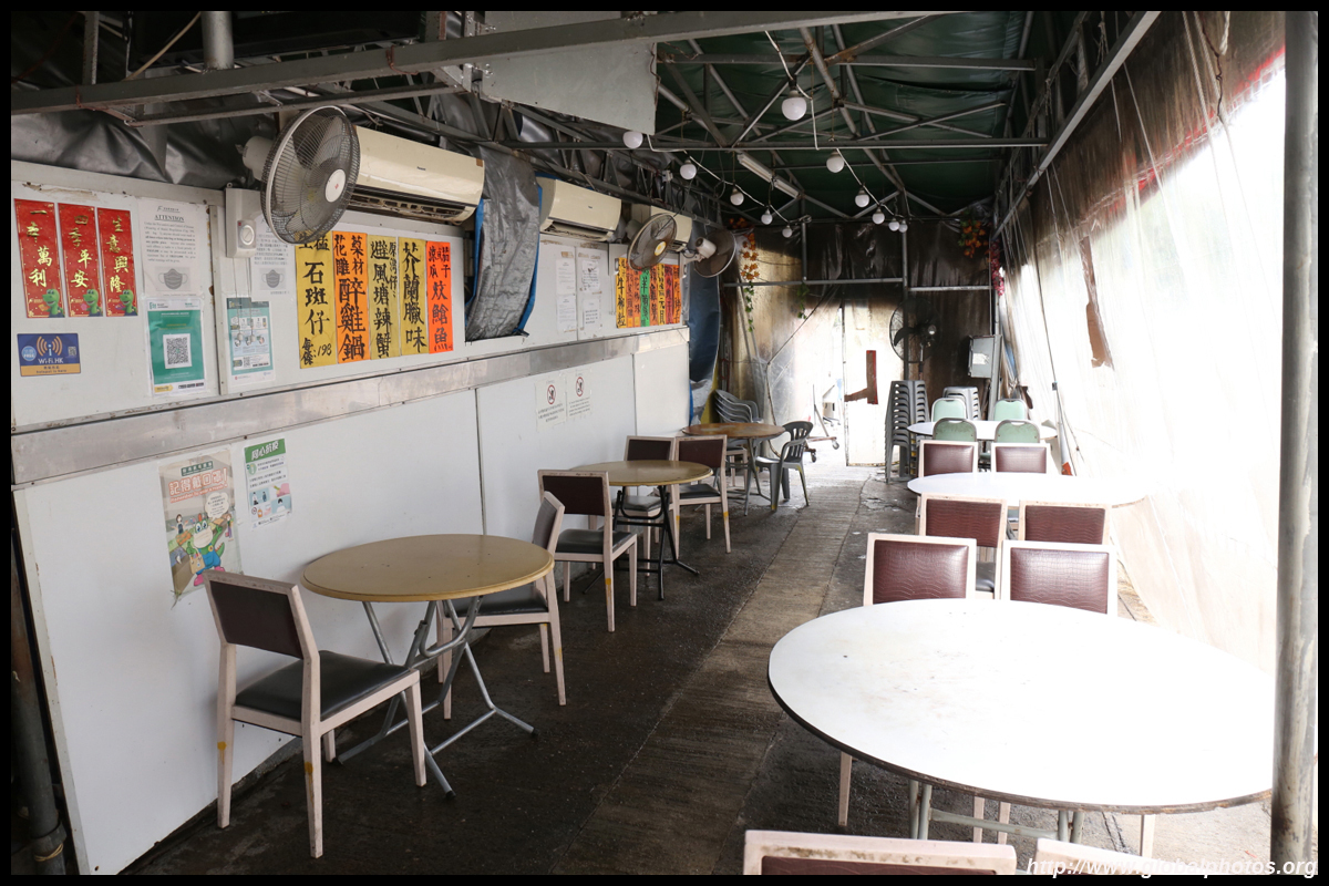 A famous dai pai dong eatery is just across the street next to the bus terminus. Famous for its chicken dish, it is transformed into a lively destination at night.