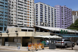 At the furthest point from the train station is Chun Yeung Estate, home to over 13000 residents and a rare housing pocket in the otherwise industrial area. 5 blocks with about 4800 public housing units are spread along a hillside with a shopping mall, wet market, and bus terminus attached. It became a headline during the early stages of the COVID outbreak when the estate was used as a quarantine centre for over 7700 people from February until July 2020.