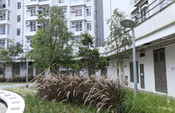 A small part of the district across from the big road consists of village houses. With its own secluded zone, life here seems serene.