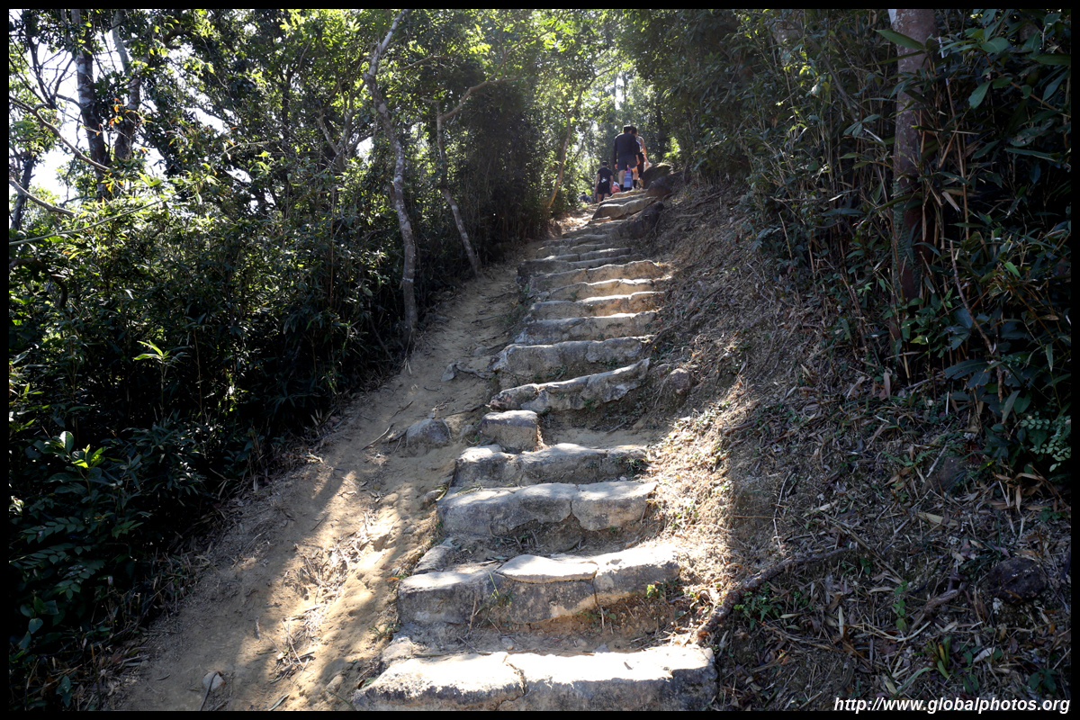 Where there is a junction with the main trail heading to the right and a supposedly dirt path heading towards and behind a metal barrier to the left, head into the unknown. There is a staircase that is slowly being taken over by the bushes. By now, you will be fairly alone as all the hikers have stuck to the nicer path. Soon, you will see Tseung Kwan O nearby and Victoria Harbour beyond the hills to the right side.