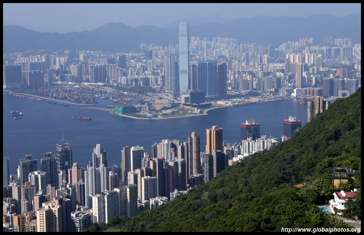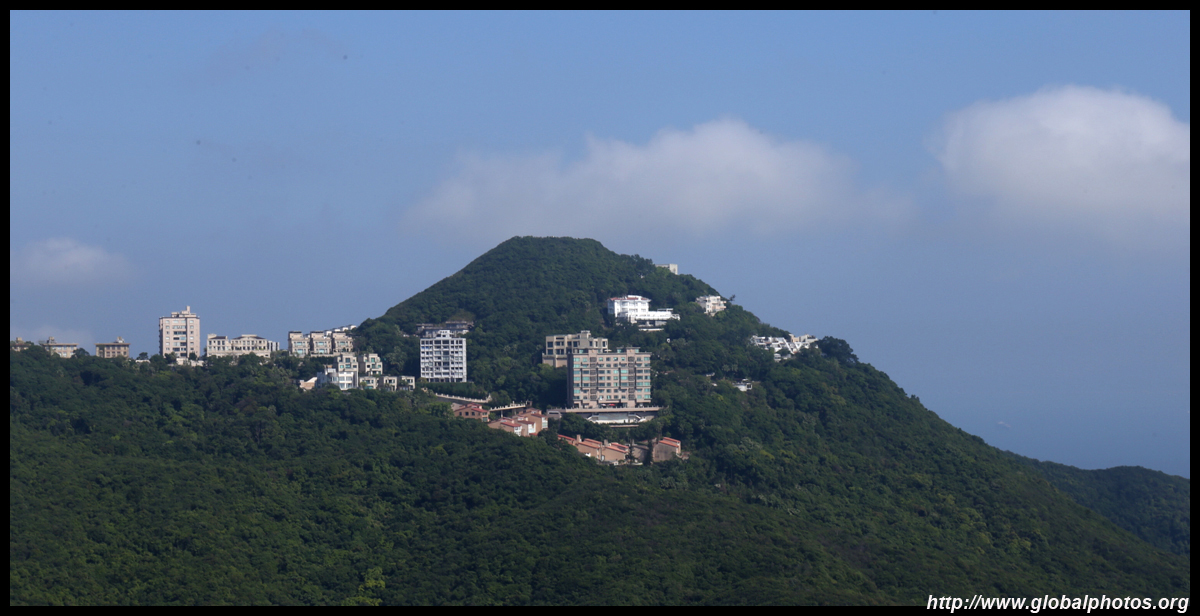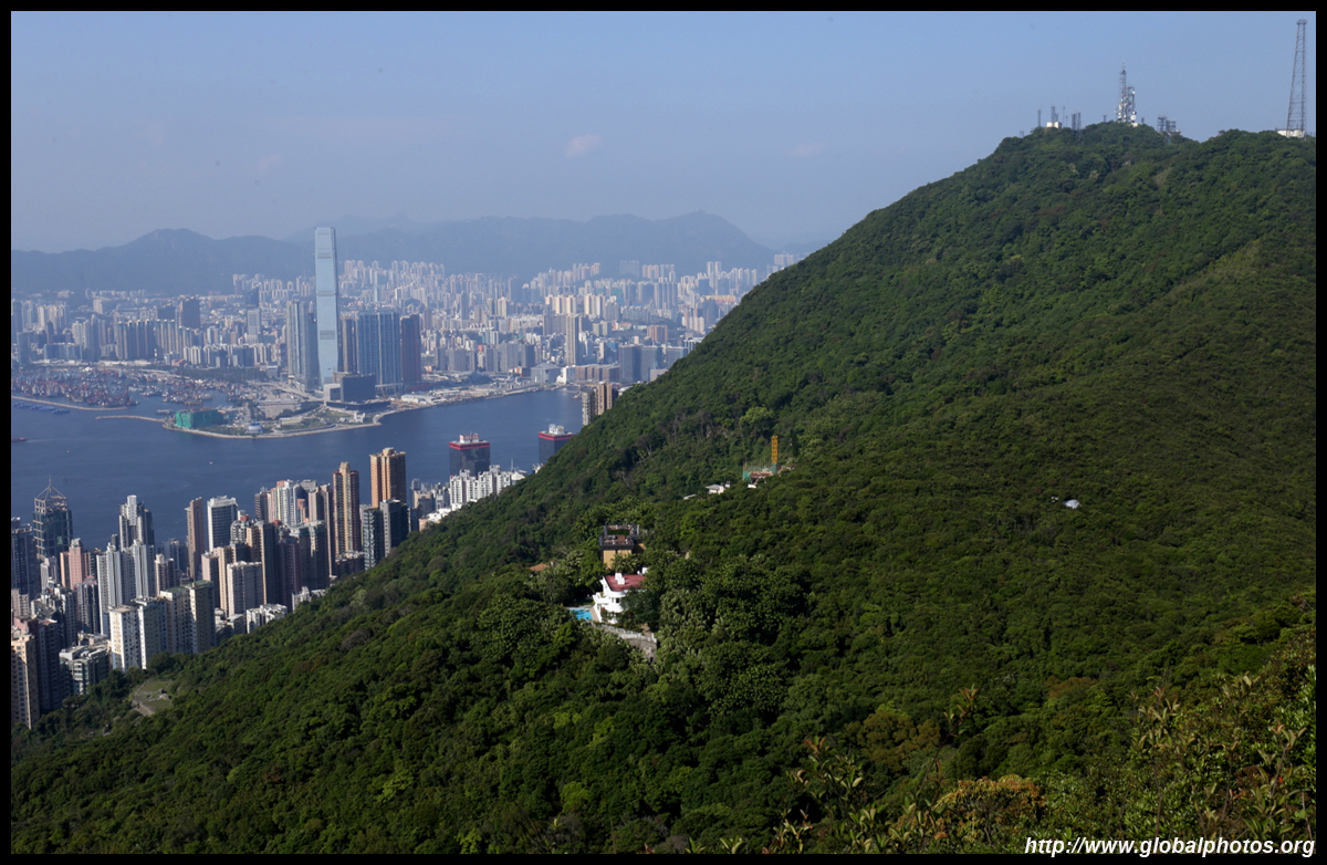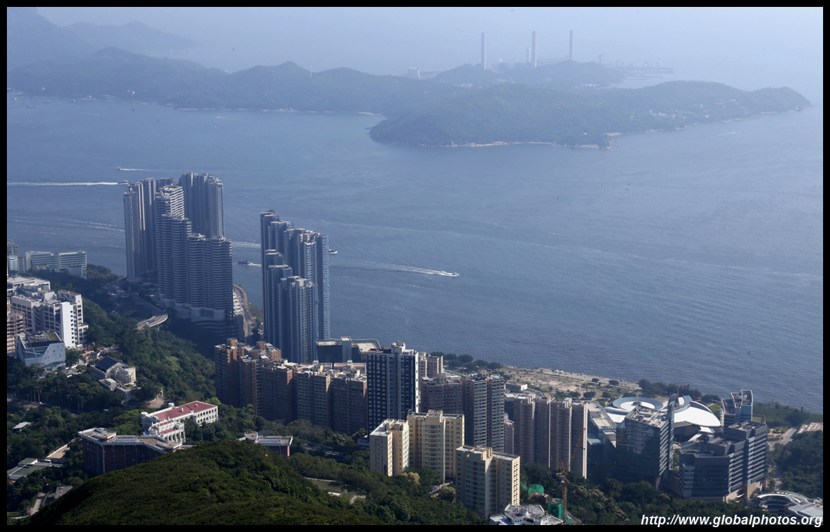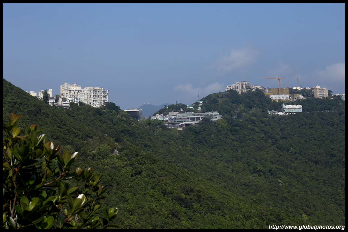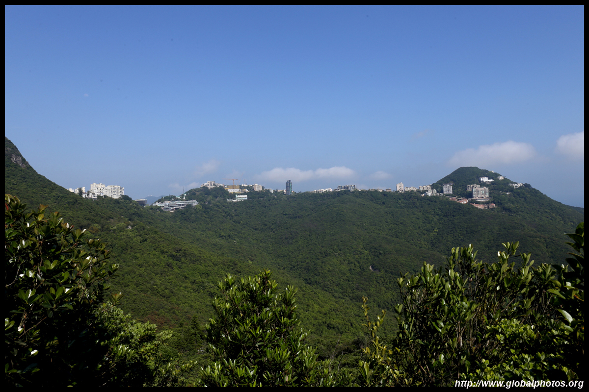 The view opens up primarily to the western end of the island and Kowloon because the mountain is in the way further east.