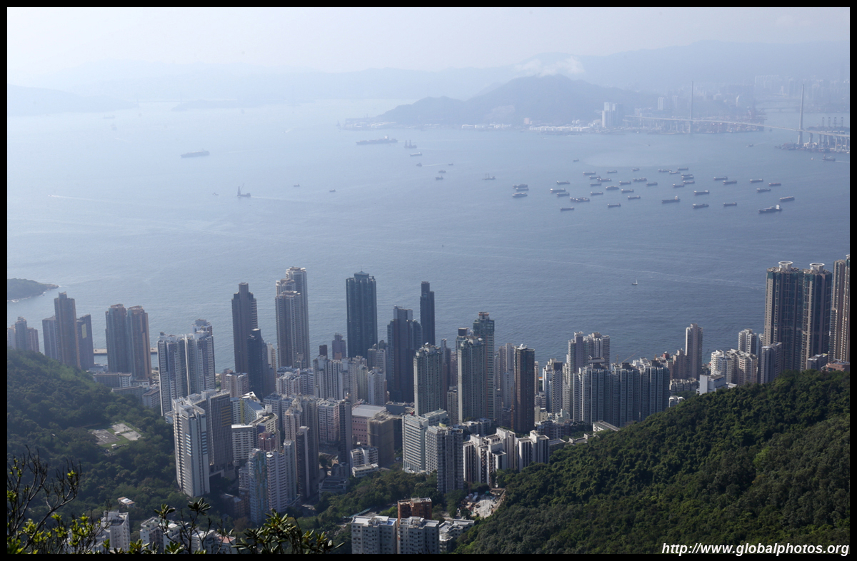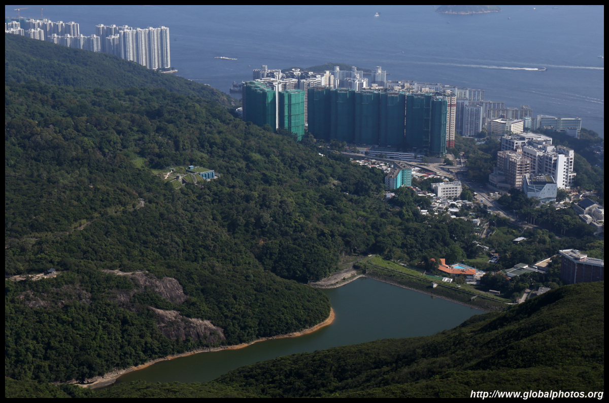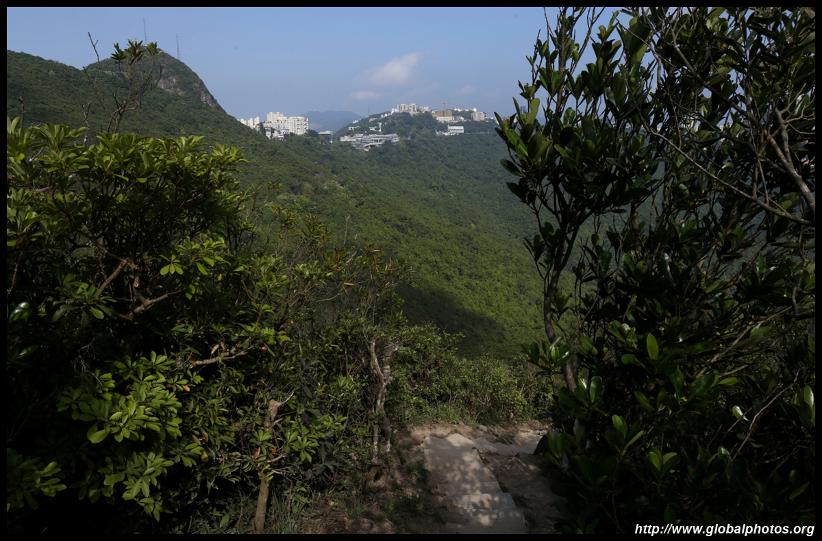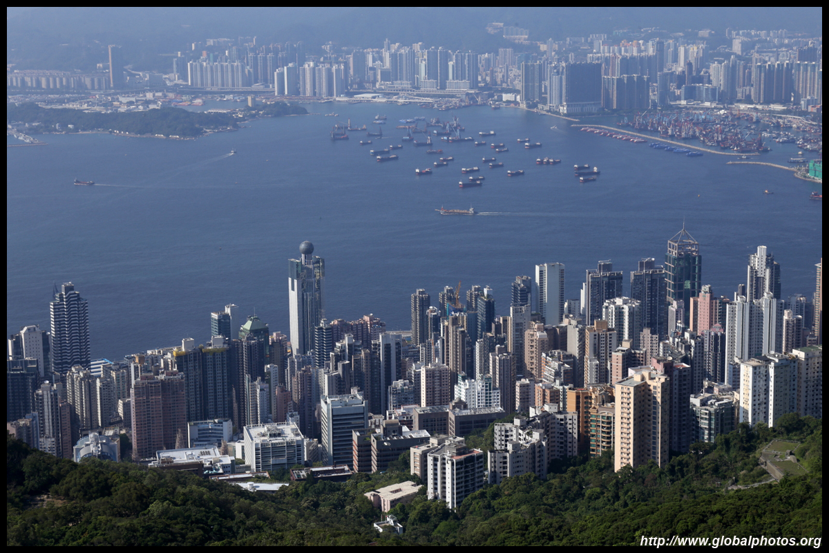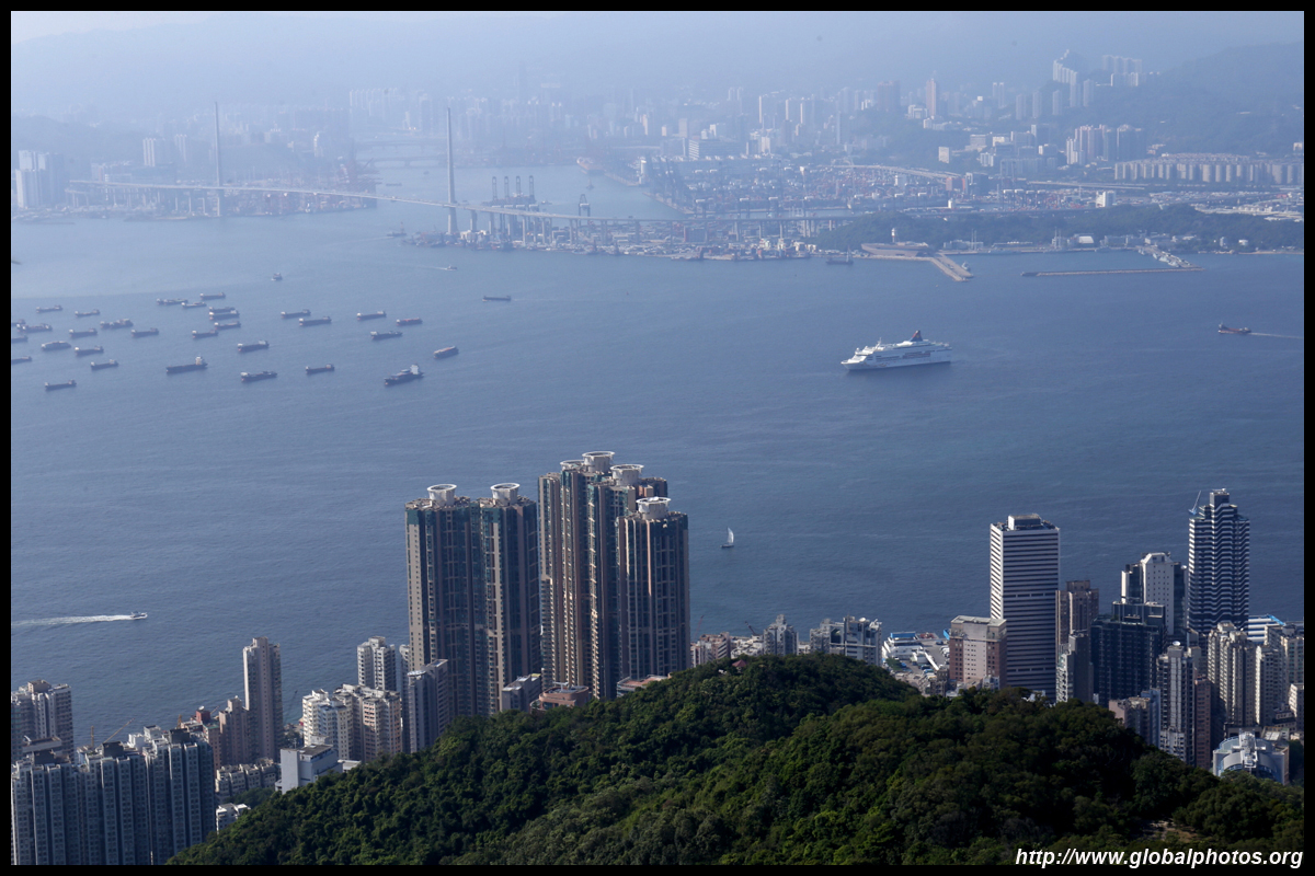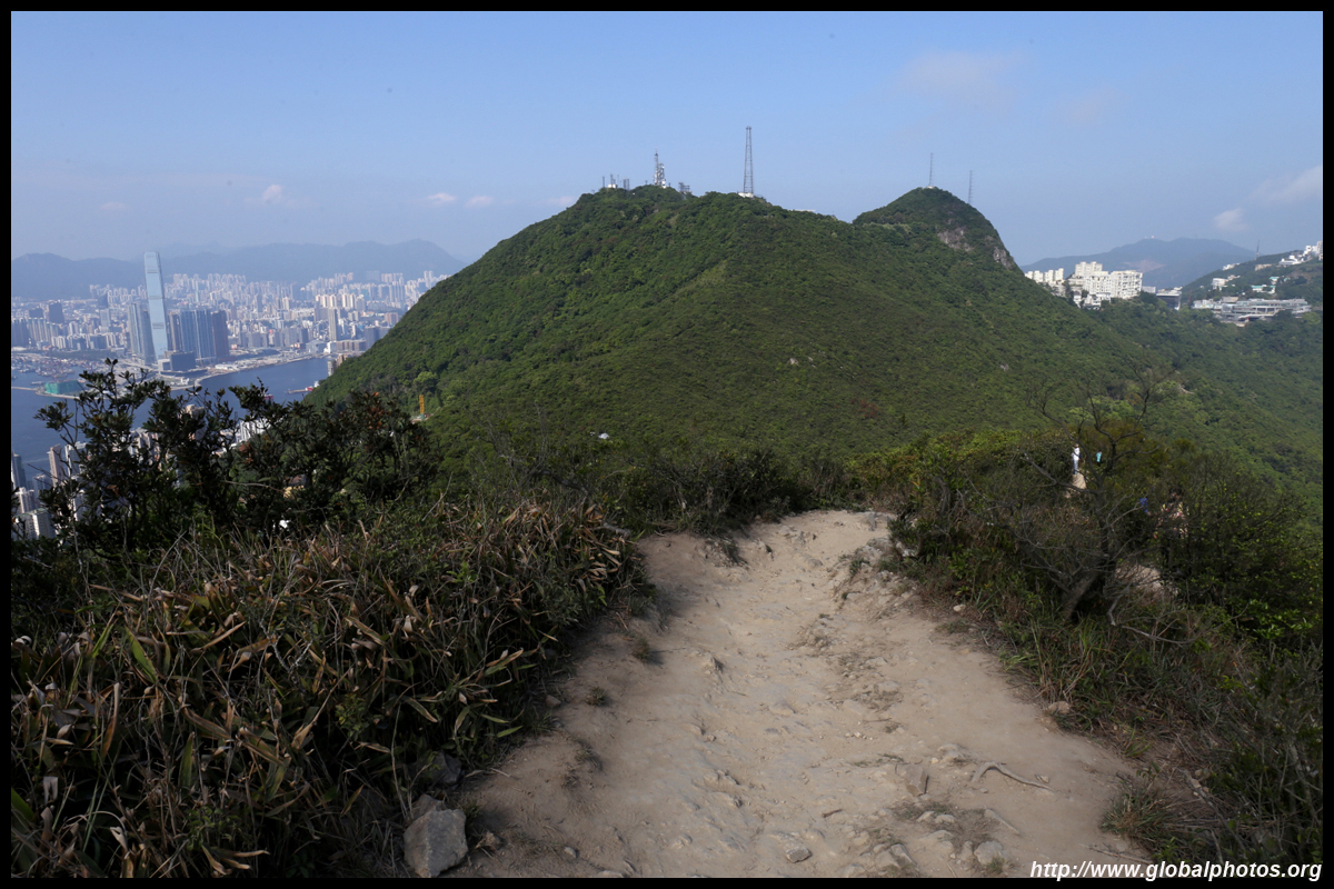 The view opens up primarily to the western end of the island and Kowloon because the mountain is in the way further east.
