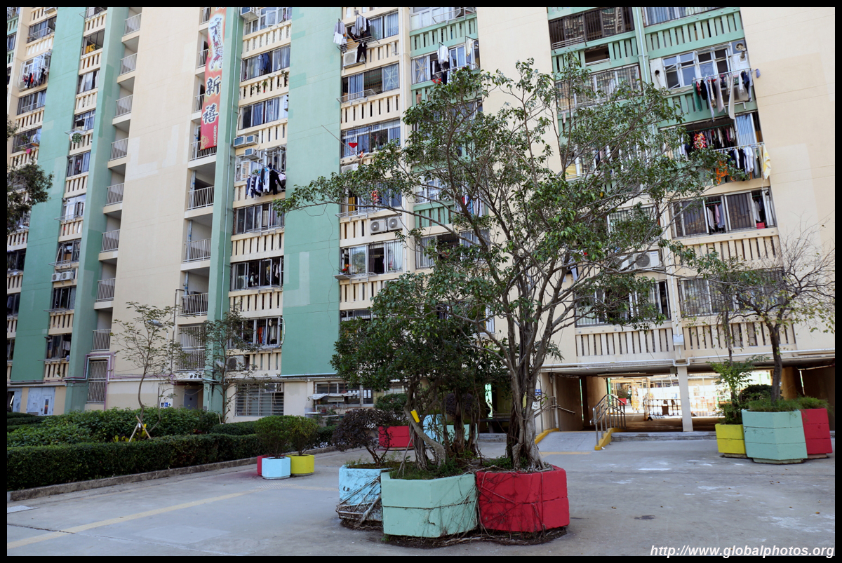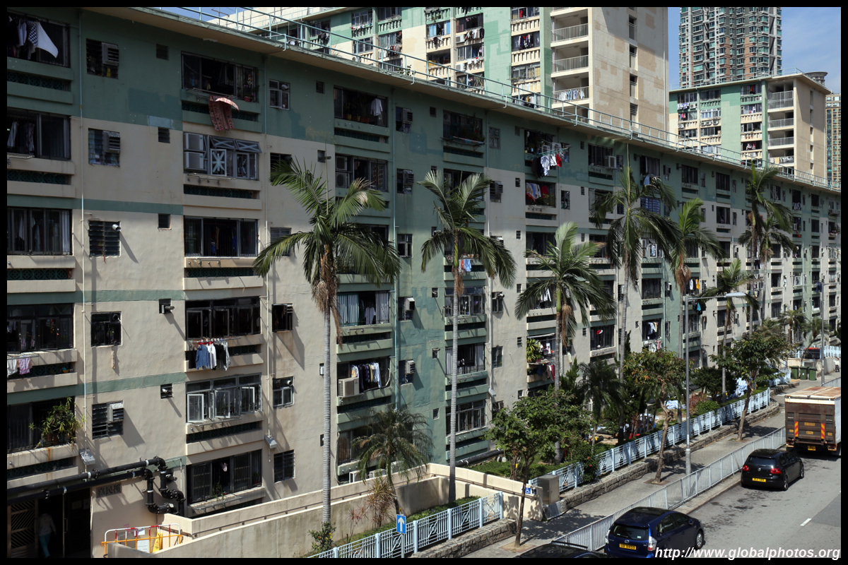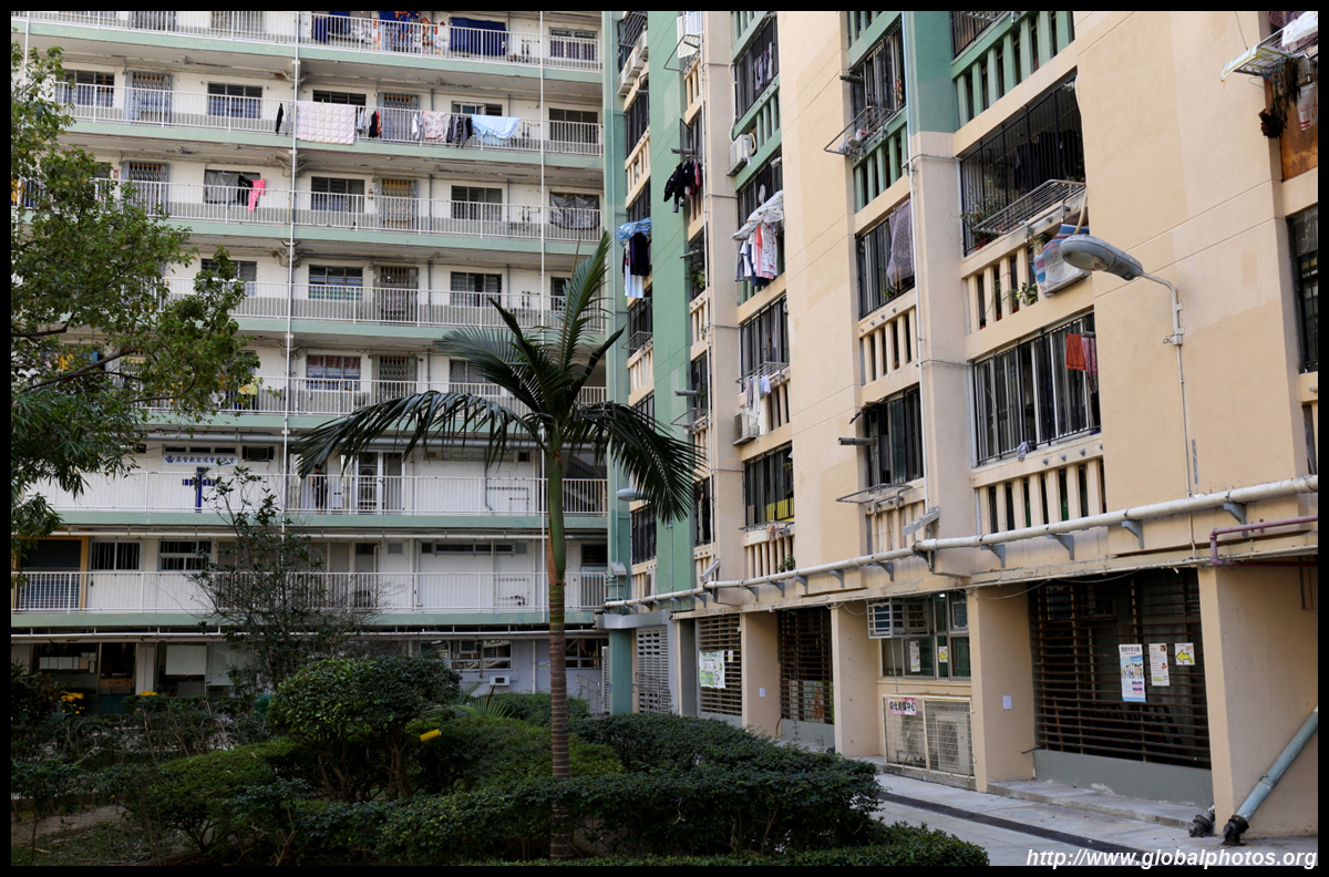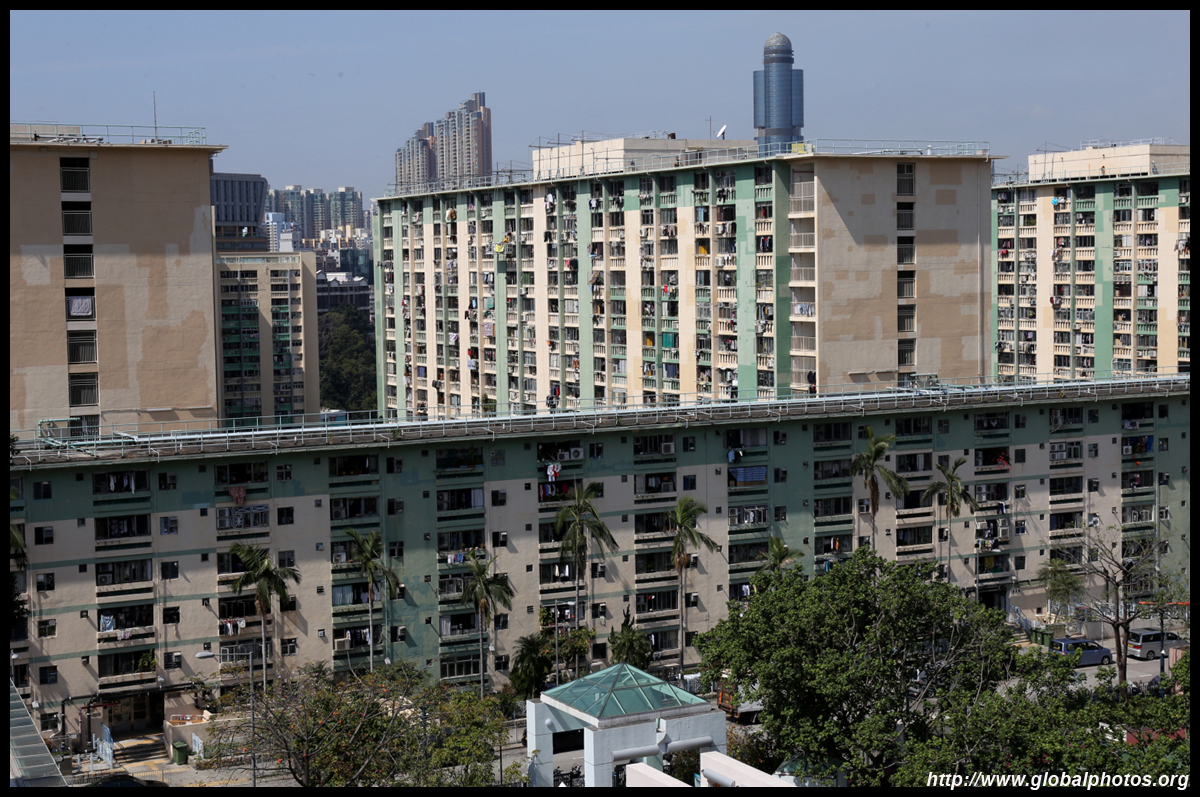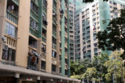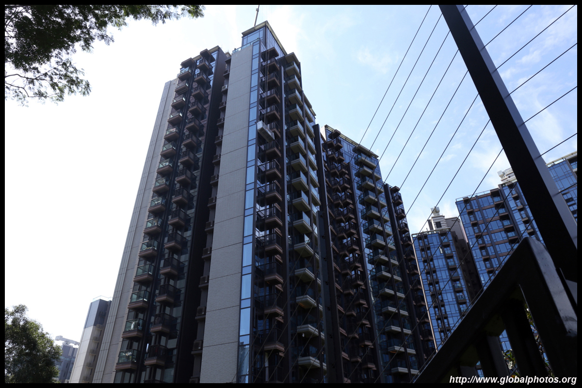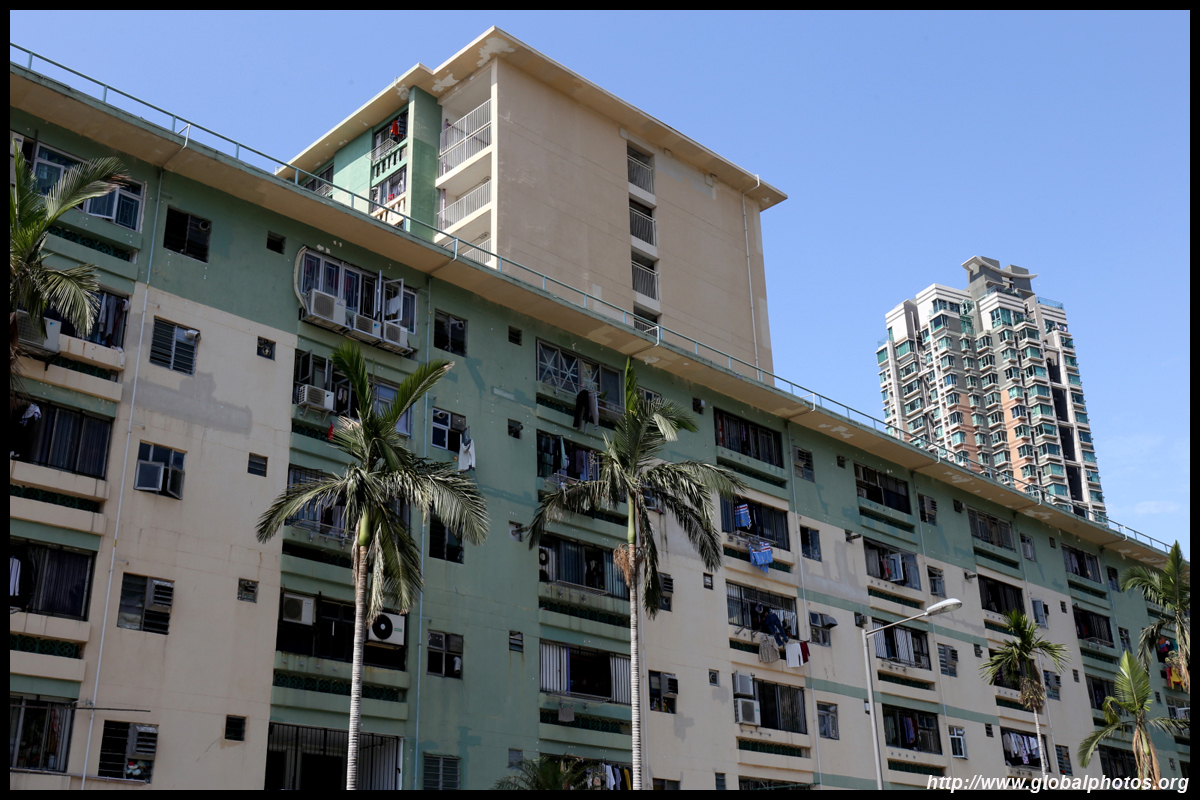 Elevators whisk visitors easily to a park further uphill. On one side are the public housing towers, and on the other is a luxury estate.