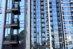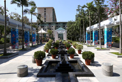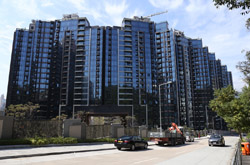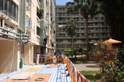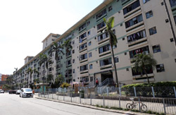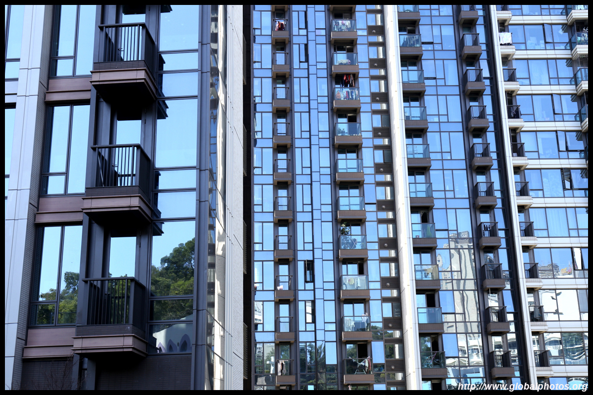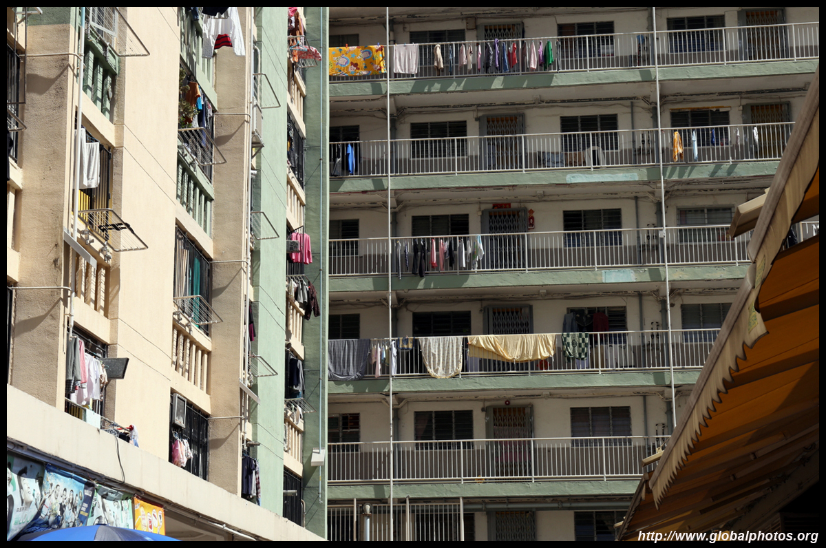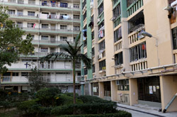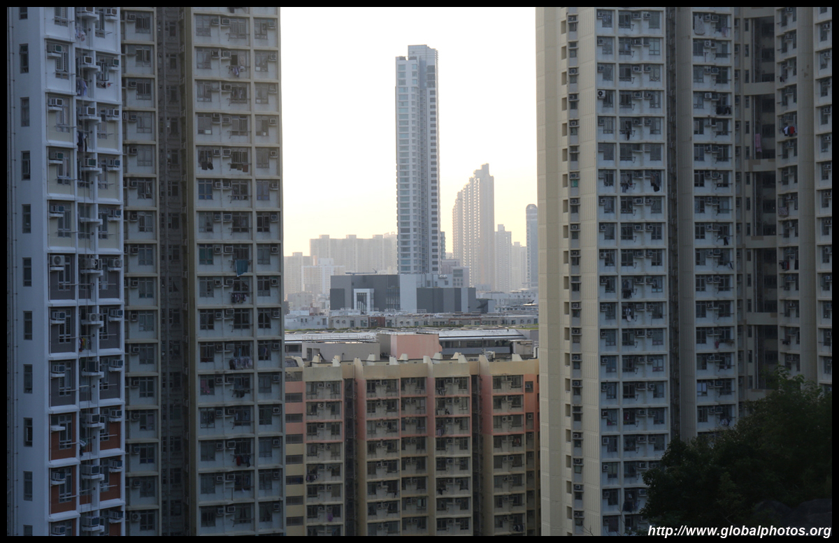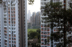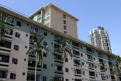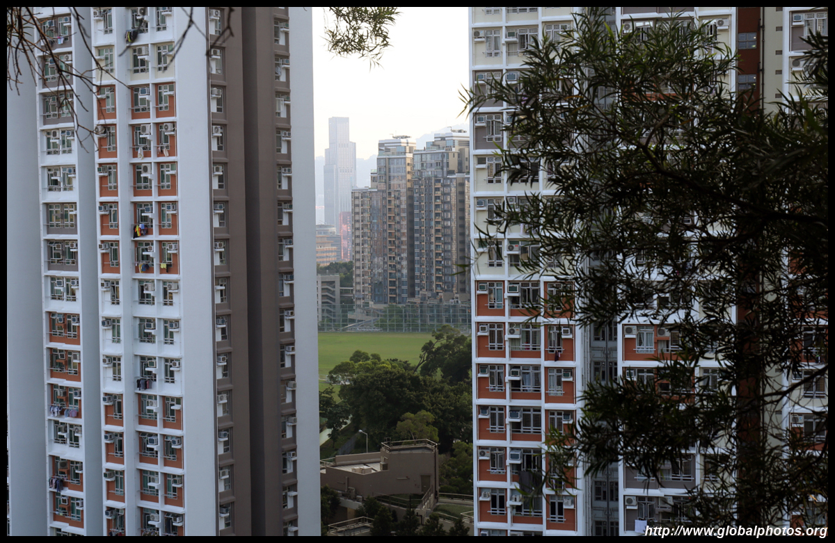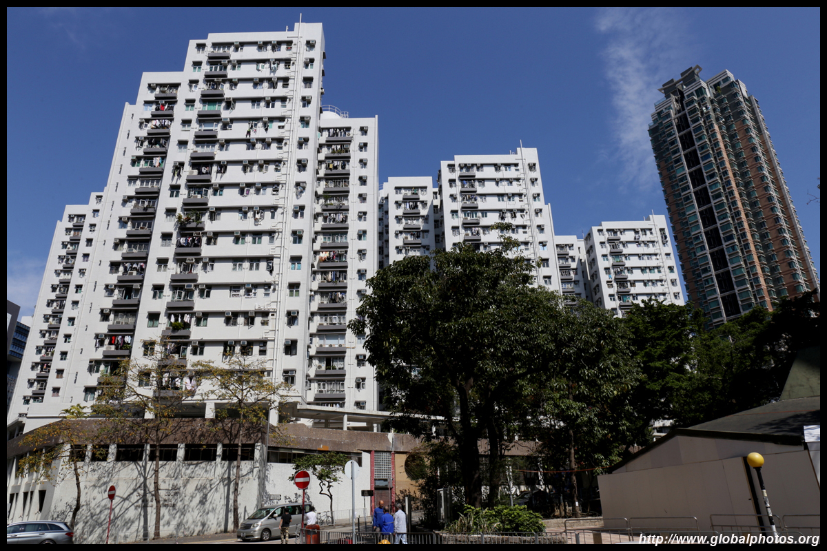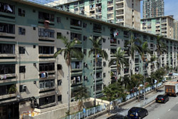 Elevators whisk visitors easily to a park further uphill. On one side are the public housing towers, and on the other is a luxury estate.