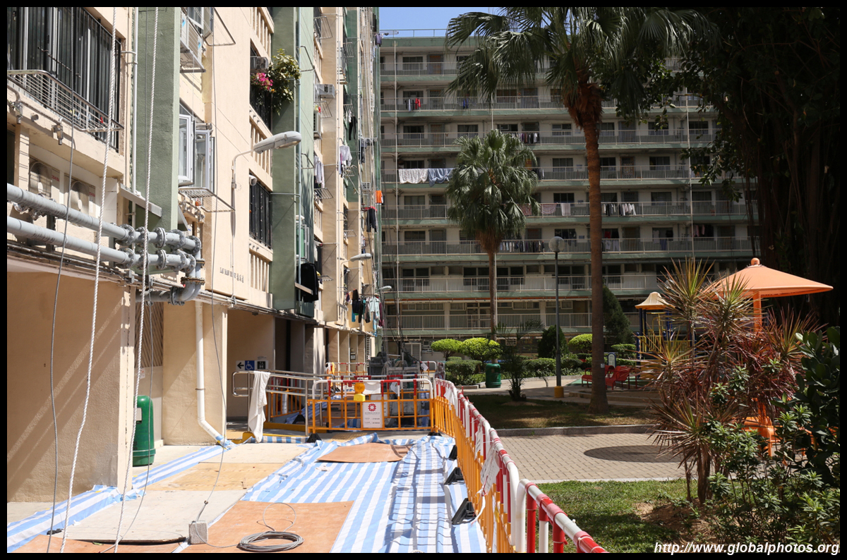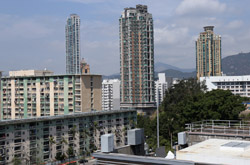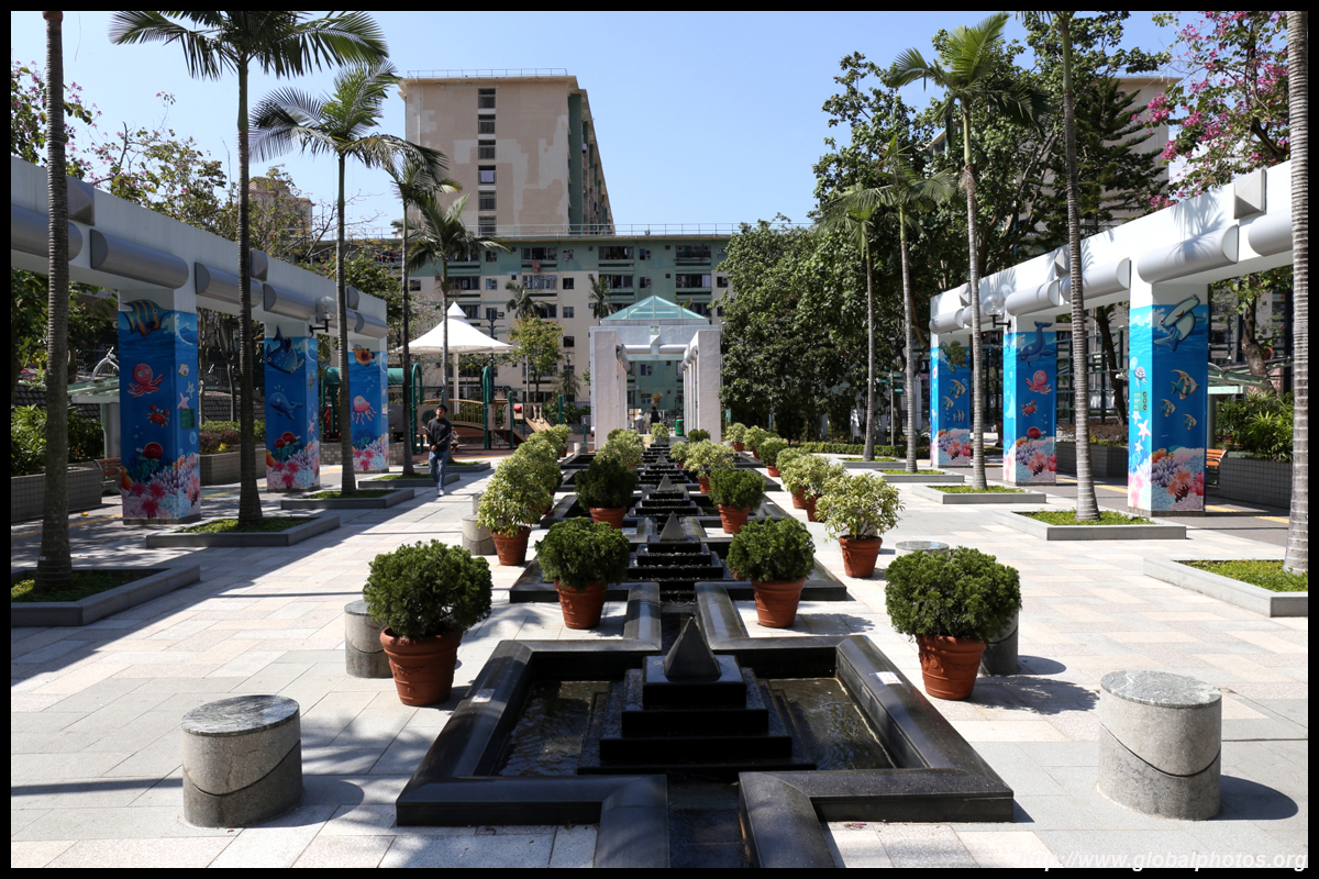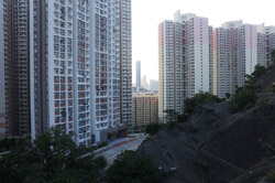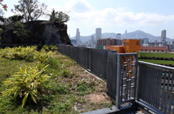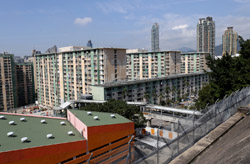 A service road leads up from near the Sheung Lok and Sheung Wo Street intersection to the Ho Man Tin High Level Service Reservoir Playground, which has a commanding of Kowloon. On the other side of the hill is the poorer Ma Tau Kok neighbourhood and a different world altogether.