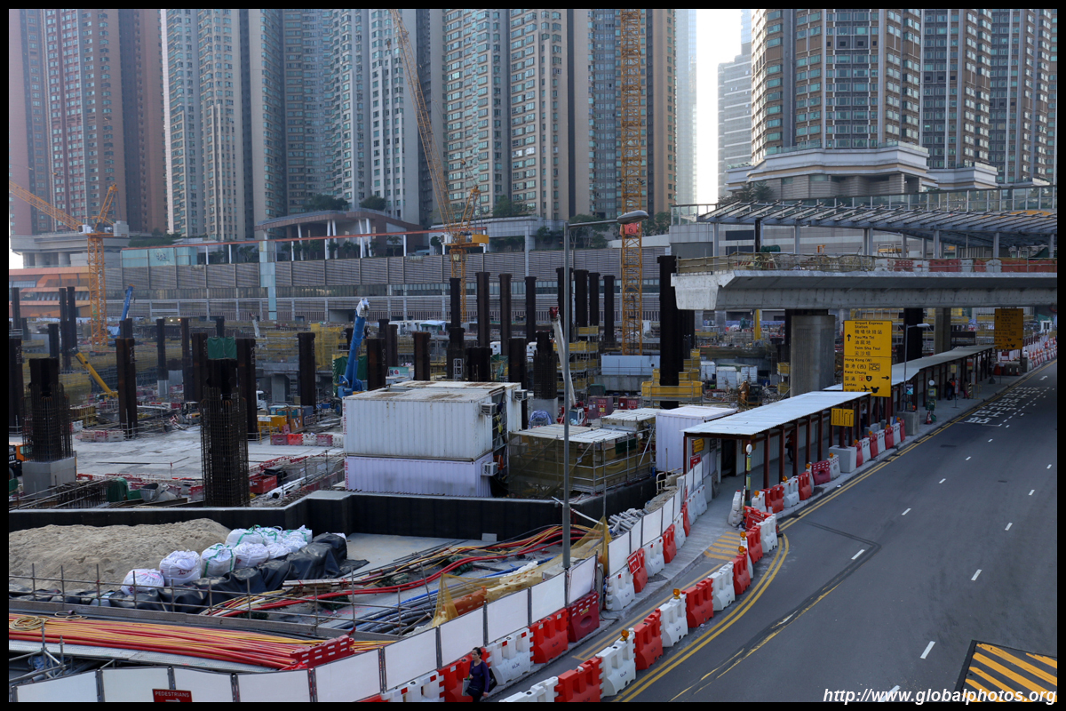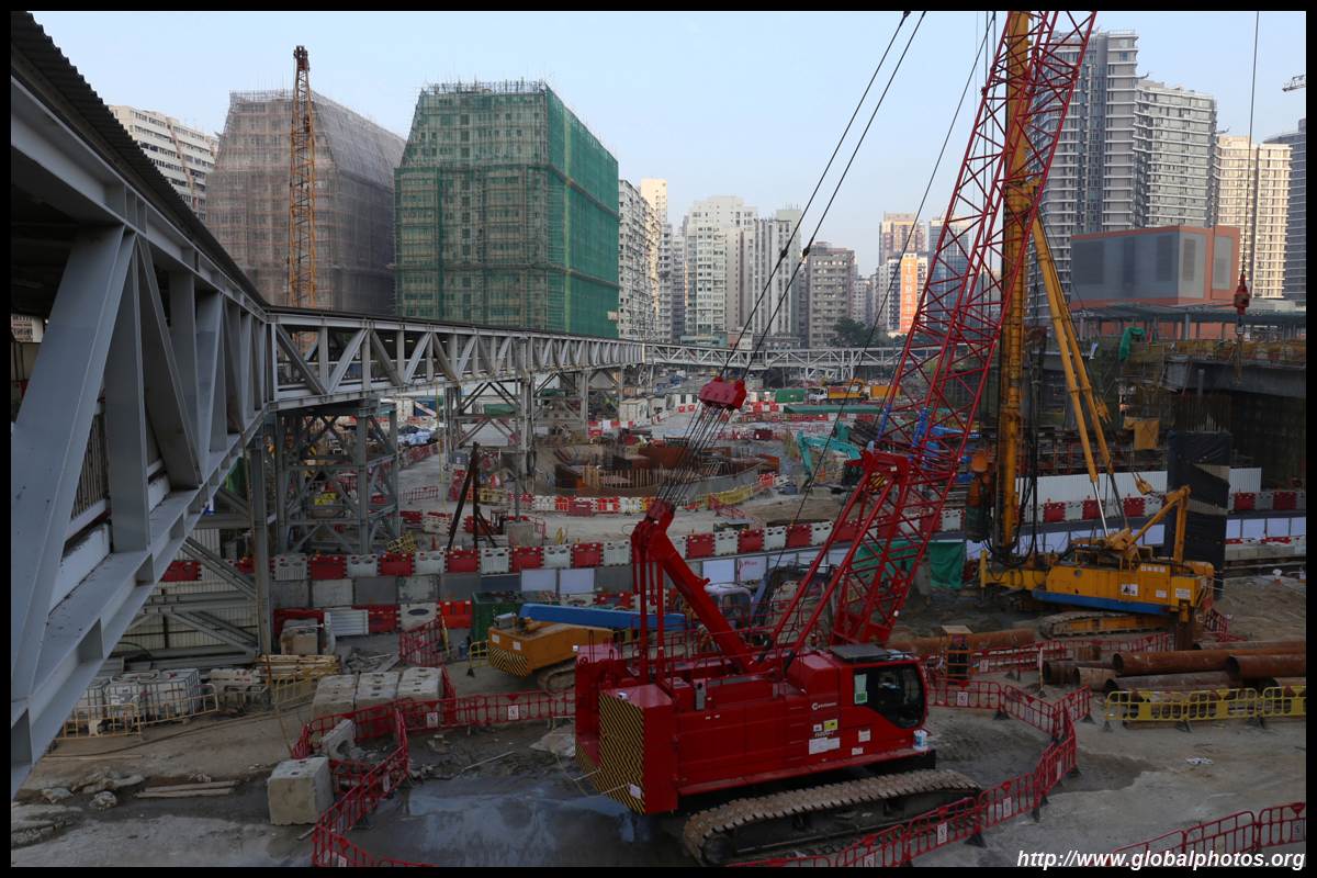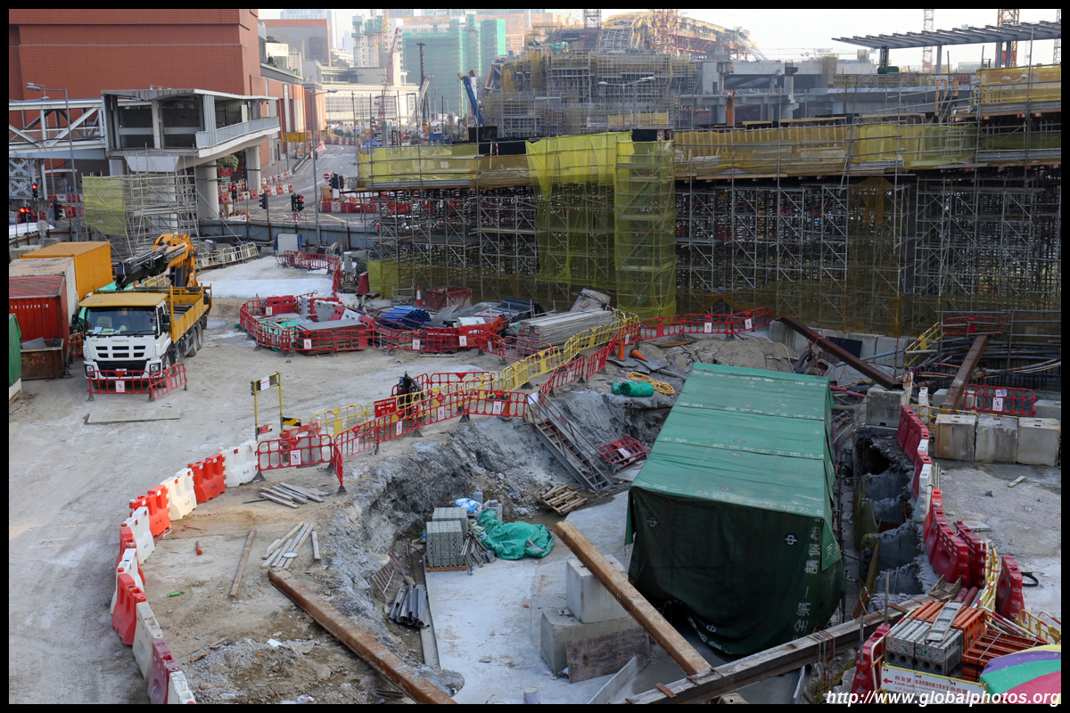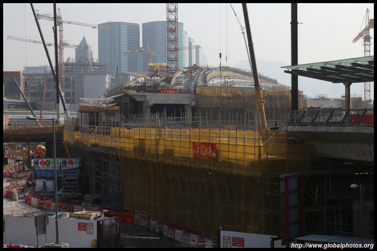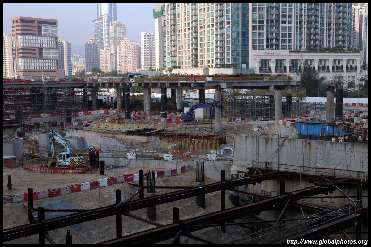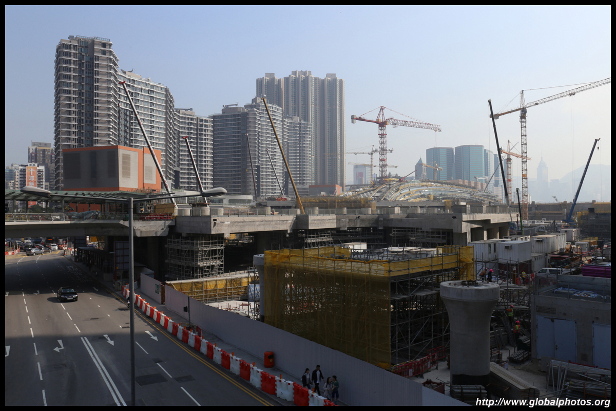 Part 1 - Construction Photos 2015 and PriorHigh-speed trains from China will travel 26km through Hong Kong to terminate at this 11-hectare underground station at the bottom of Kowloon. Operating at a maximum of 200 km/h, it will only take 14 minutes to reach Shenzhen and 48 minutes to Guangzhou when the line opens in 2018. Cost overruns have pushed the controversial project's total price tag to over HKD 84 billion.