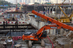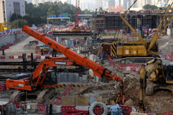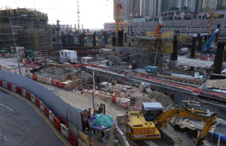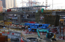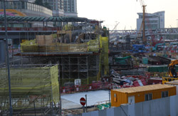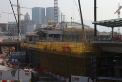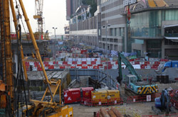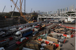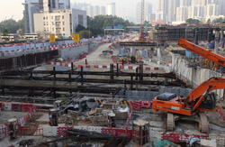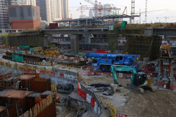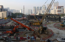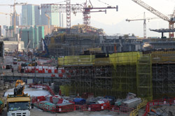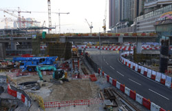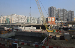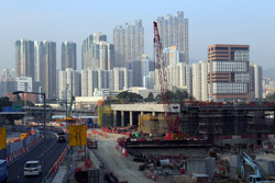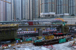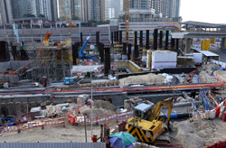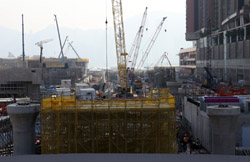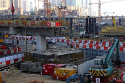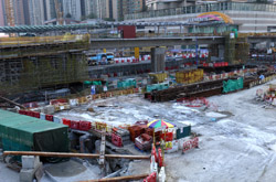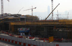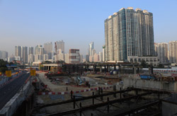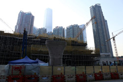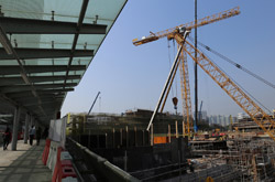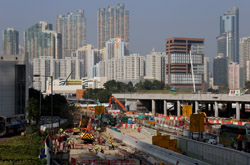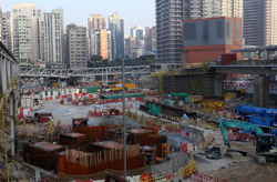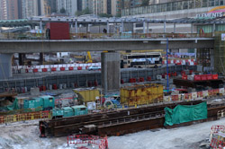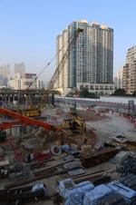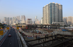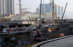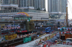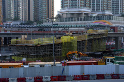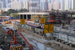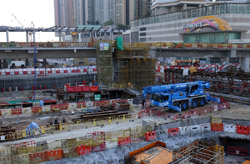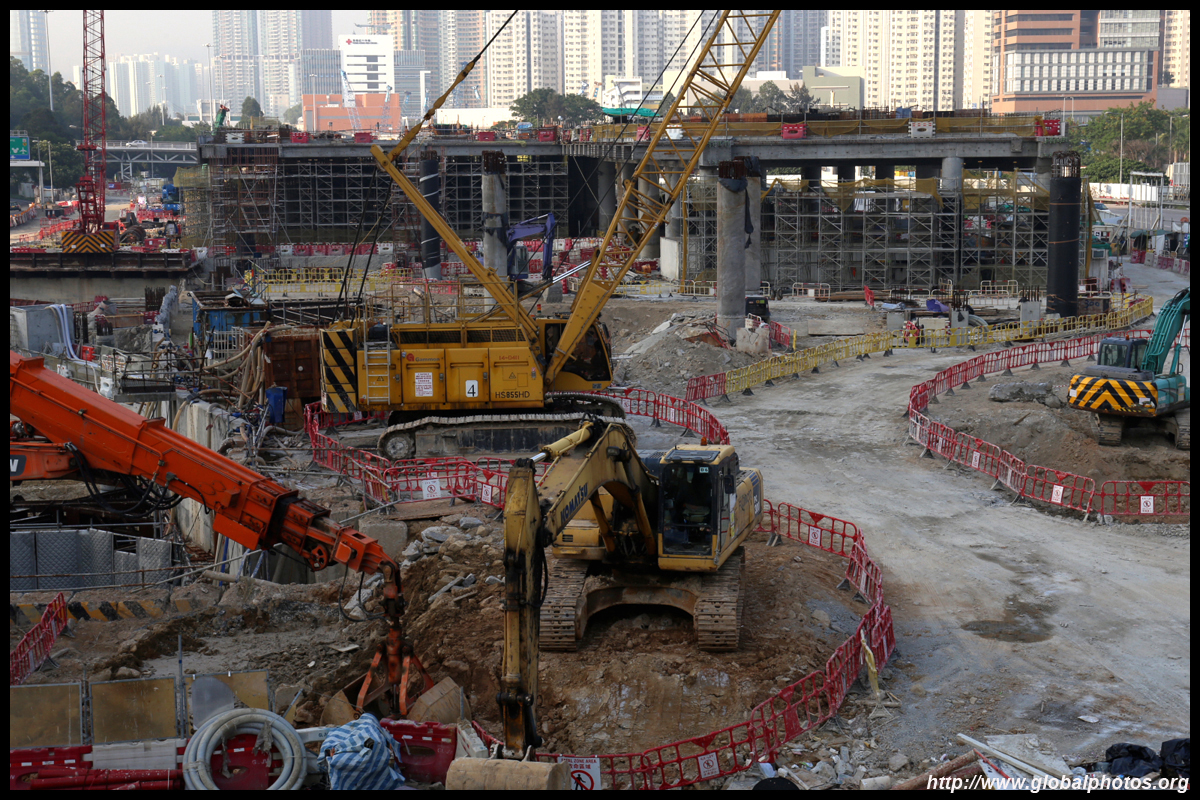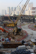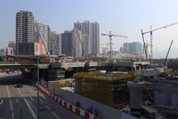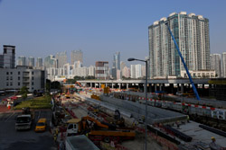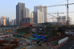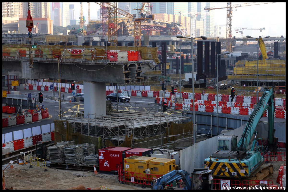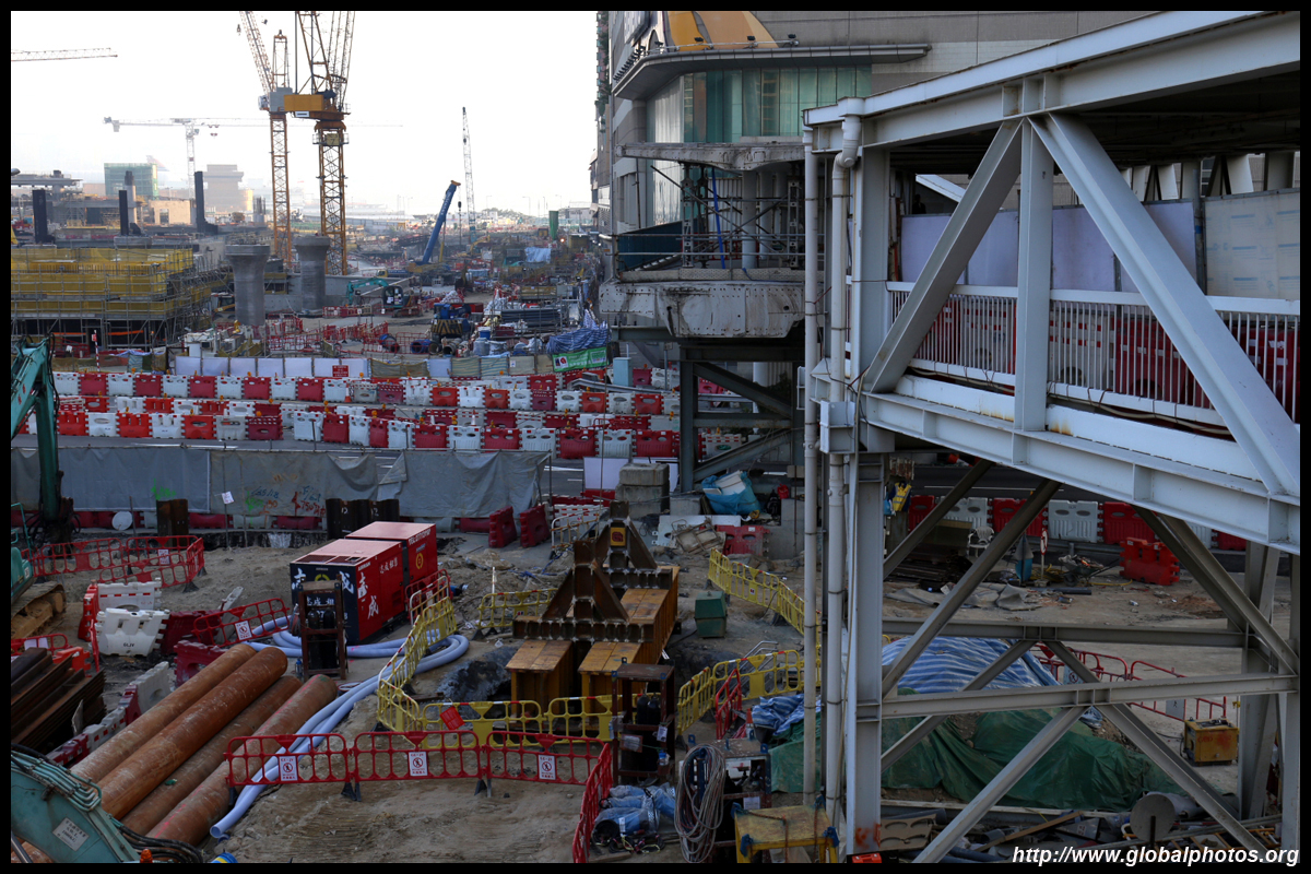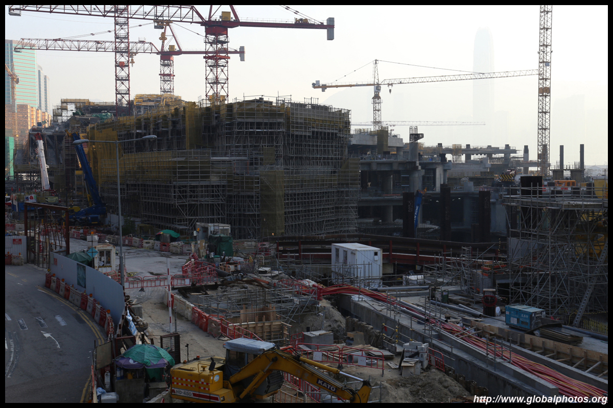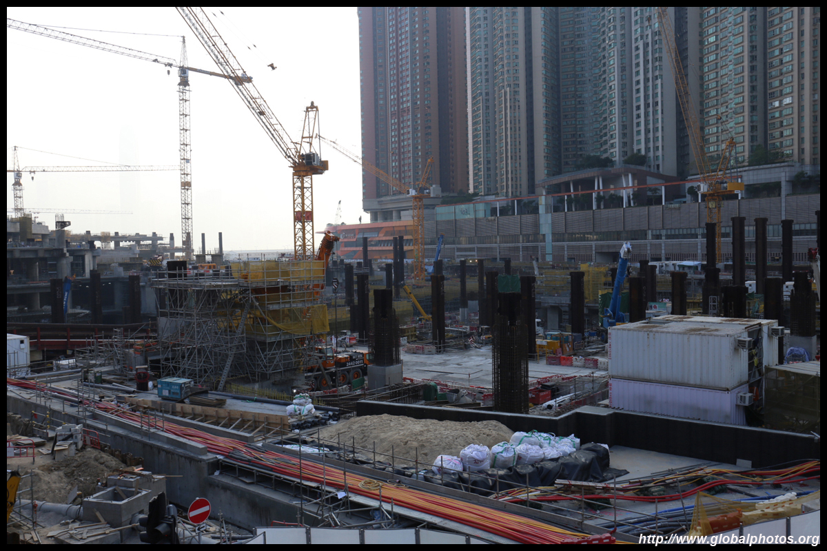 Part 1 - Construction Photos 2015 and PriorHigh-speed trains from China will travel 26km through Hong Kong to terminate at this 11-hectare underground station at the bottom of Kowloon. Operating at a maximum of 200 km/h, it will only take 14 minutes to reach Shenzhen and 48 minutes to Guangzhou when the line opens in 2018. Cost overruns have pushed the controversial project's total price tag to over HKD 84 billion.