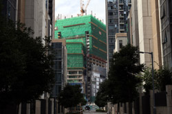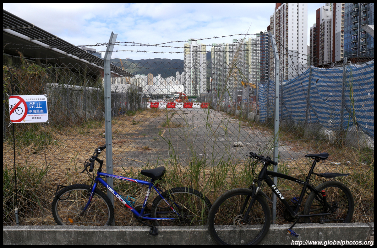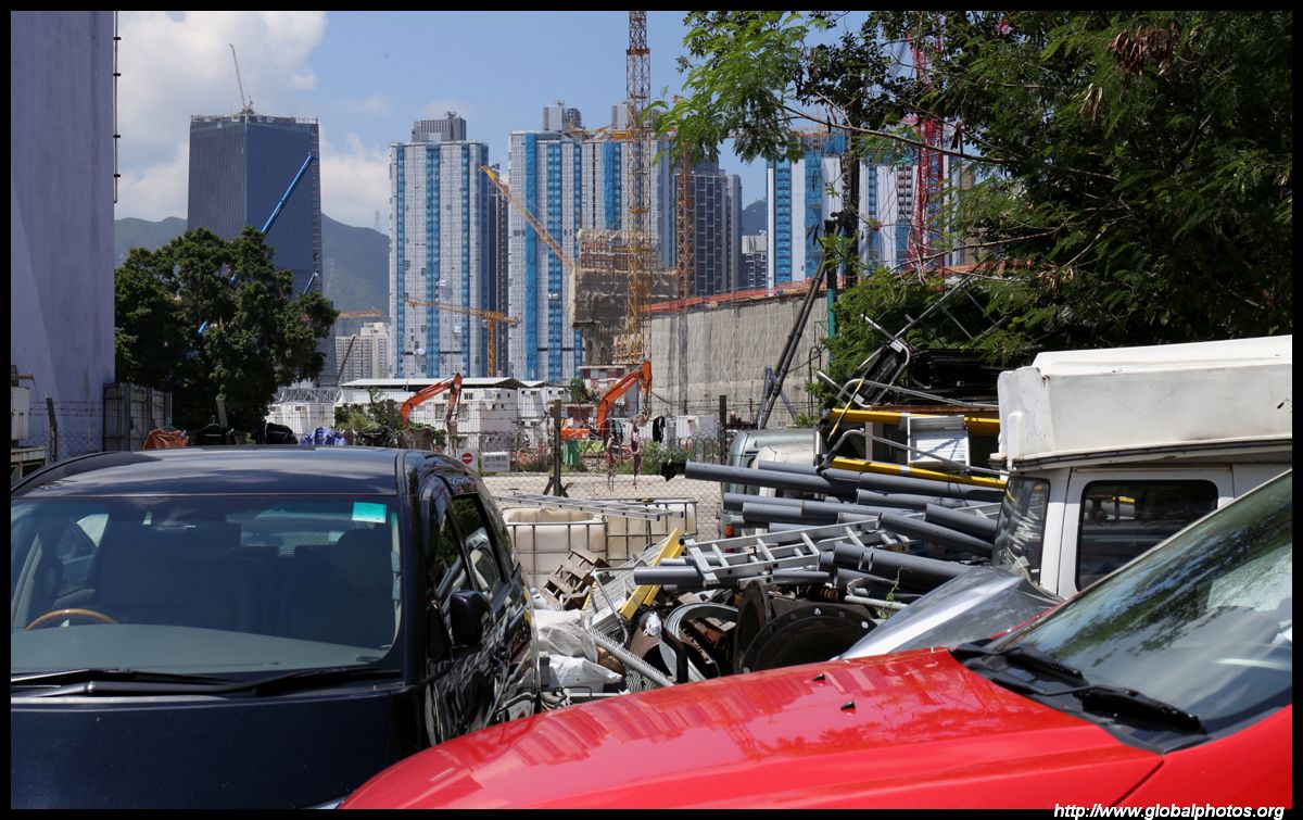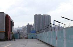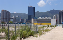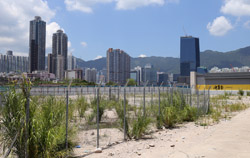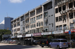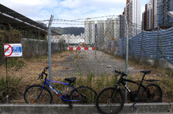 The density disappears south of Tin Chai Lane and the empty plot of land is fenced off from access.