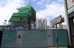 Heading down one of 2 sets of small pedestrian-only lanes in between the residential developments, I spotted 2 other developments south of Muk Ning Street along Ko Fei Lane. To the left is K.City, which consists of 4 34-storey towers wrapped around a few more lowrises. To the right is Vibe Centro, which has 2 34-storey towers wrapped around more lowrises.