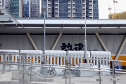 From the newly-opened Kai Tak MTR station, you can see a row of glassy residential skyscrapers. On the left are 2 towers from One Kai Tak, and on the right a single block for Oasis Kai Tak.
