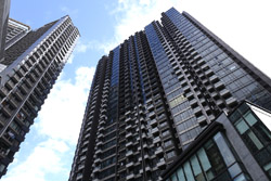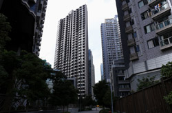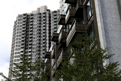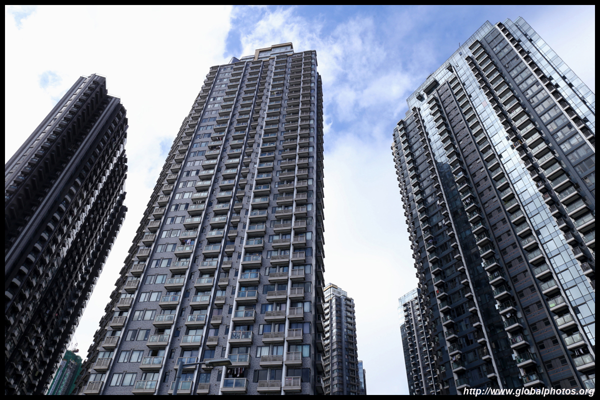4 highrise towers of over 30 stories wrap around shorter 5-storey blocks in between them. Not sure how much sun can actually make it to these lowrises though.