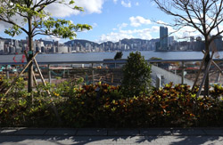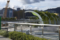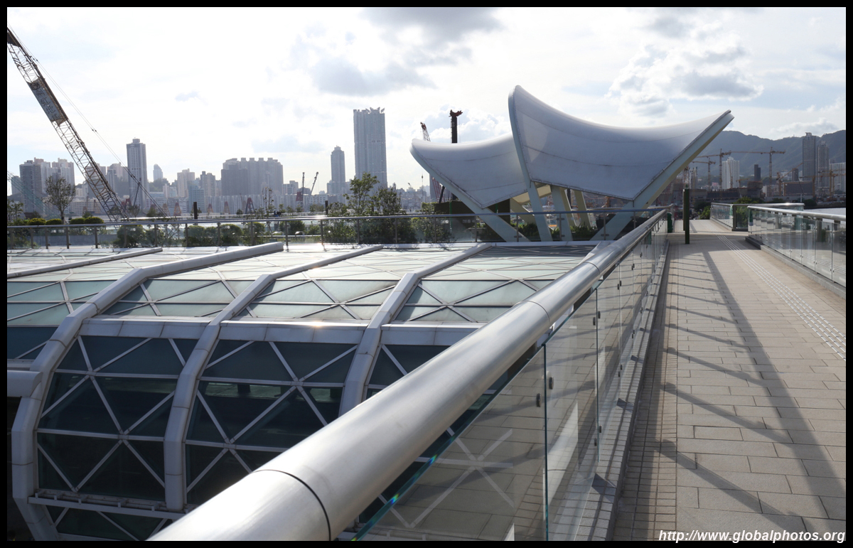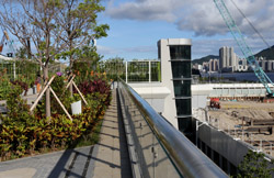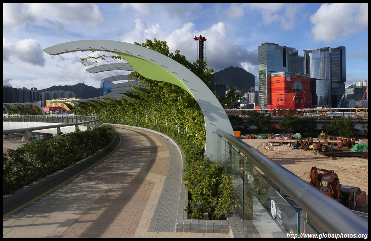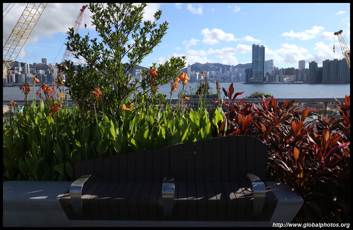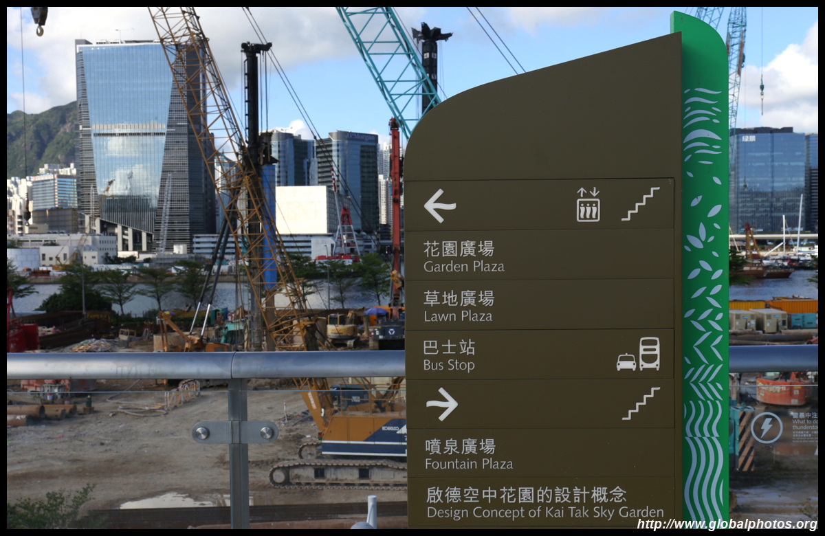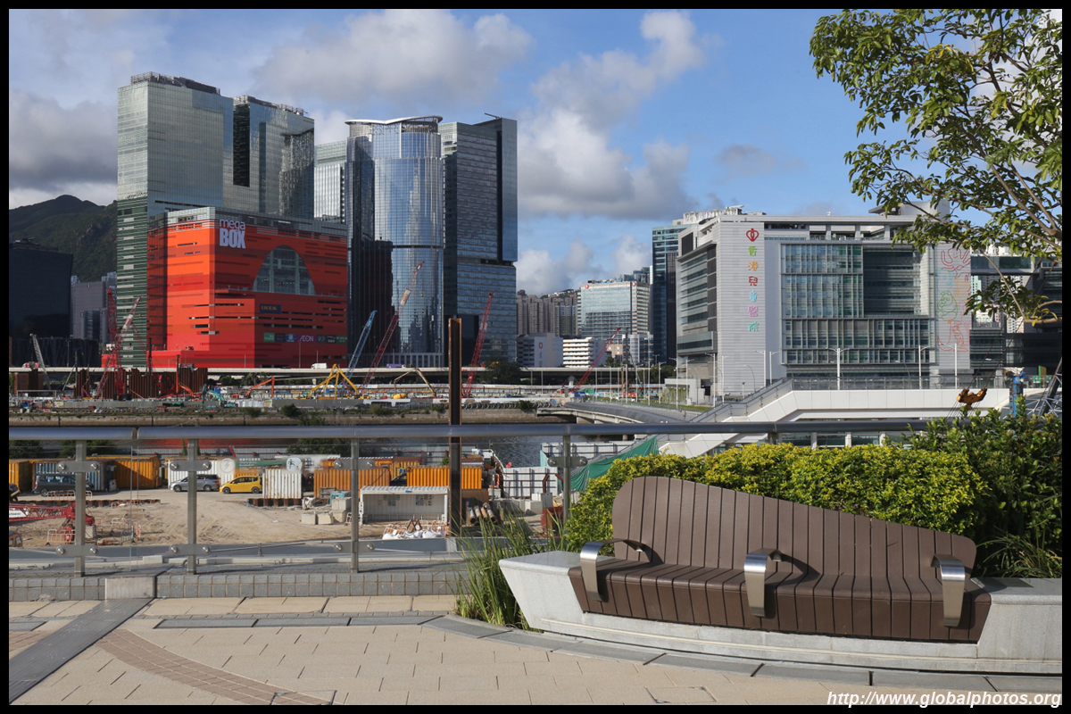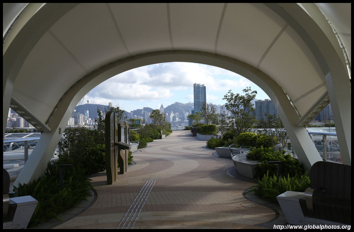 Located on an elevated deck above the main access road along the former Kai Tak runway 13/31, the 1.4km aviation-themed park opened in May 2021 with water features, vegetation, and rest benches with views. It is surrounded by many construction sites so perhaps one day, the harbour and skyline views will disappear behind walls of buildings.