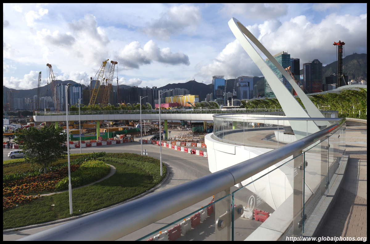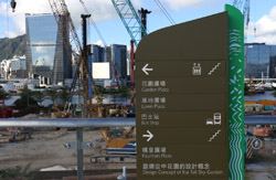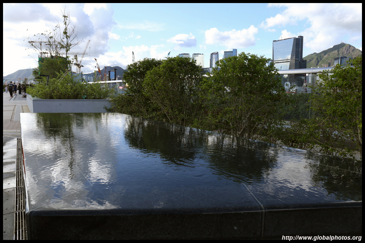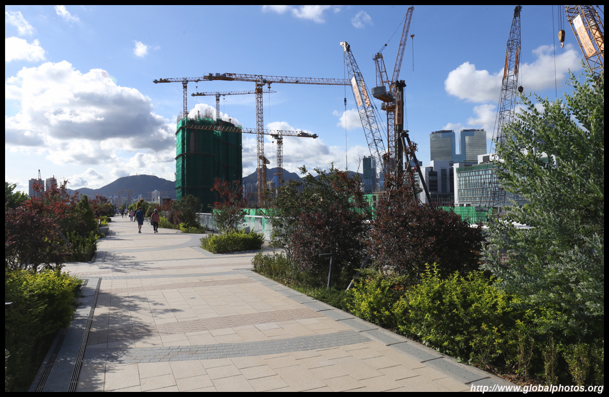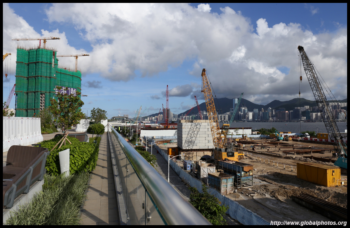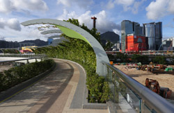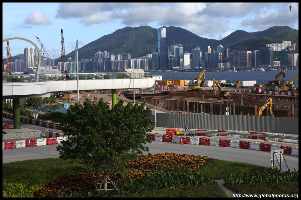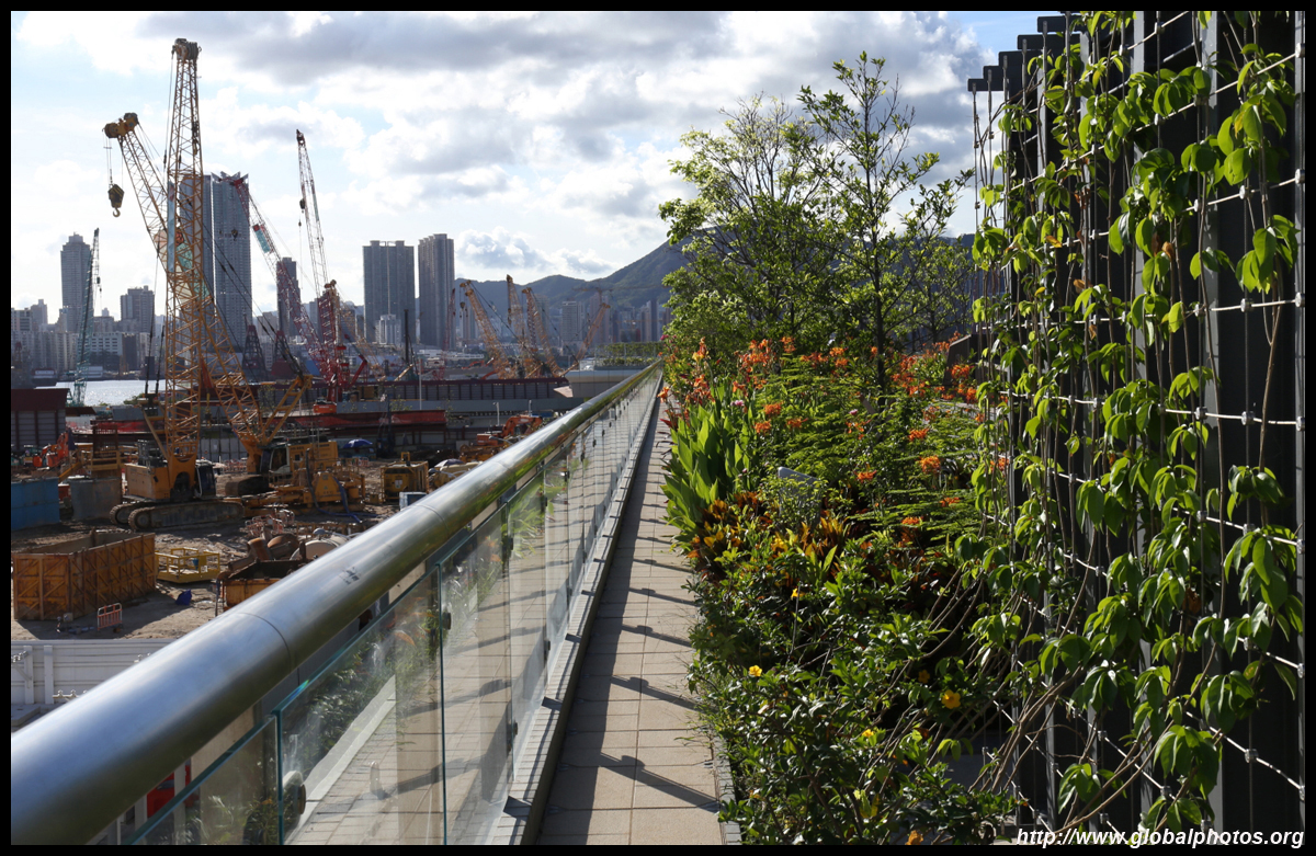 Located on an elevated deck above the main access road along the former Kai Tak runway 13/31, the 1.4km aviation-themed park opened in May 2021 with water features, vegetation, and rest benches with views. It is surrounded by many construction sites so perhaps one day, the harbour and skyline views will disappear behind walls of buildings.
