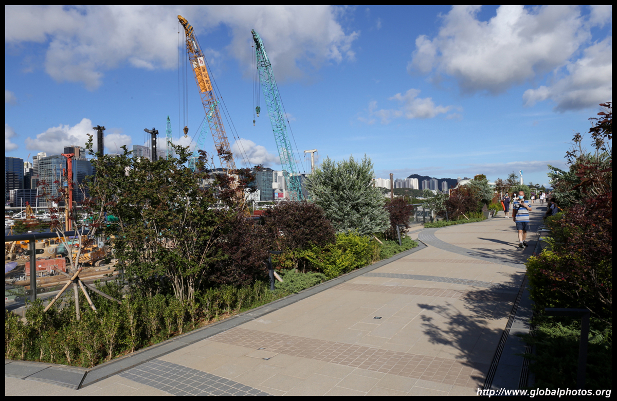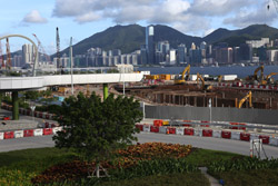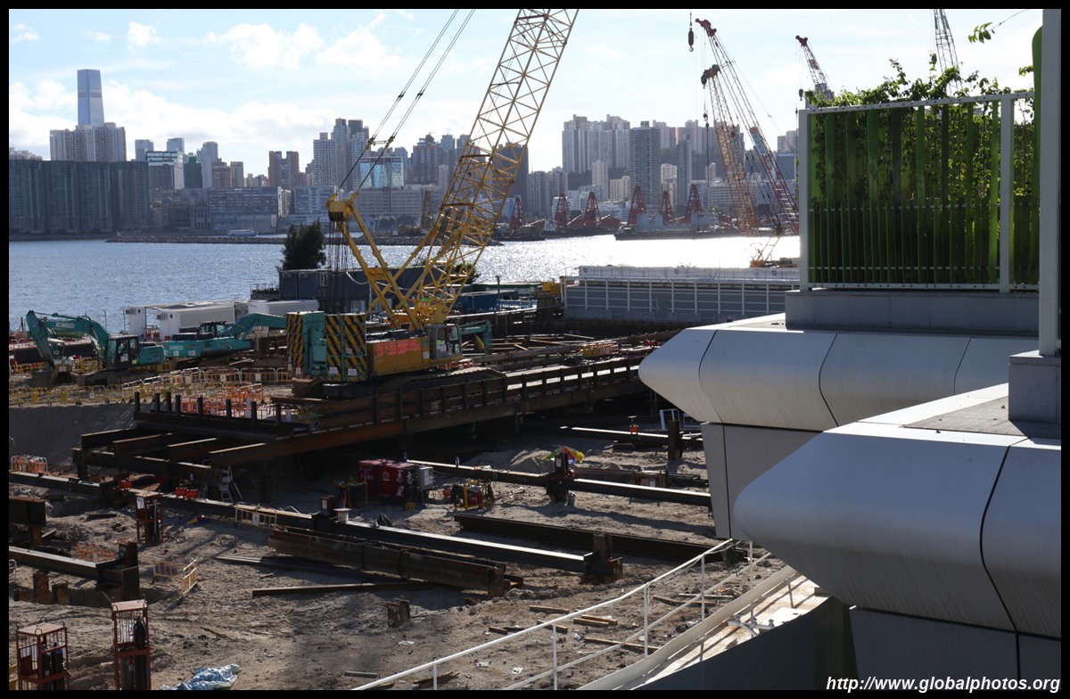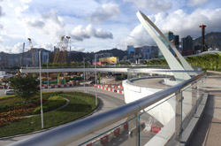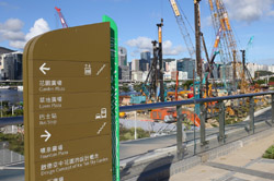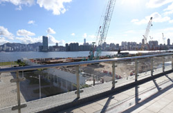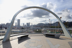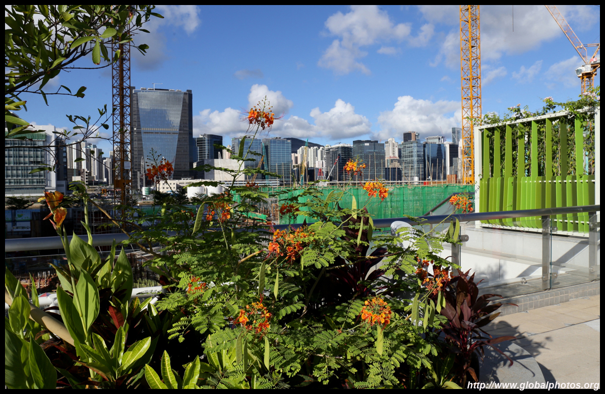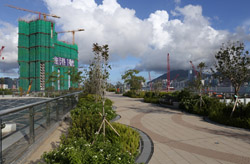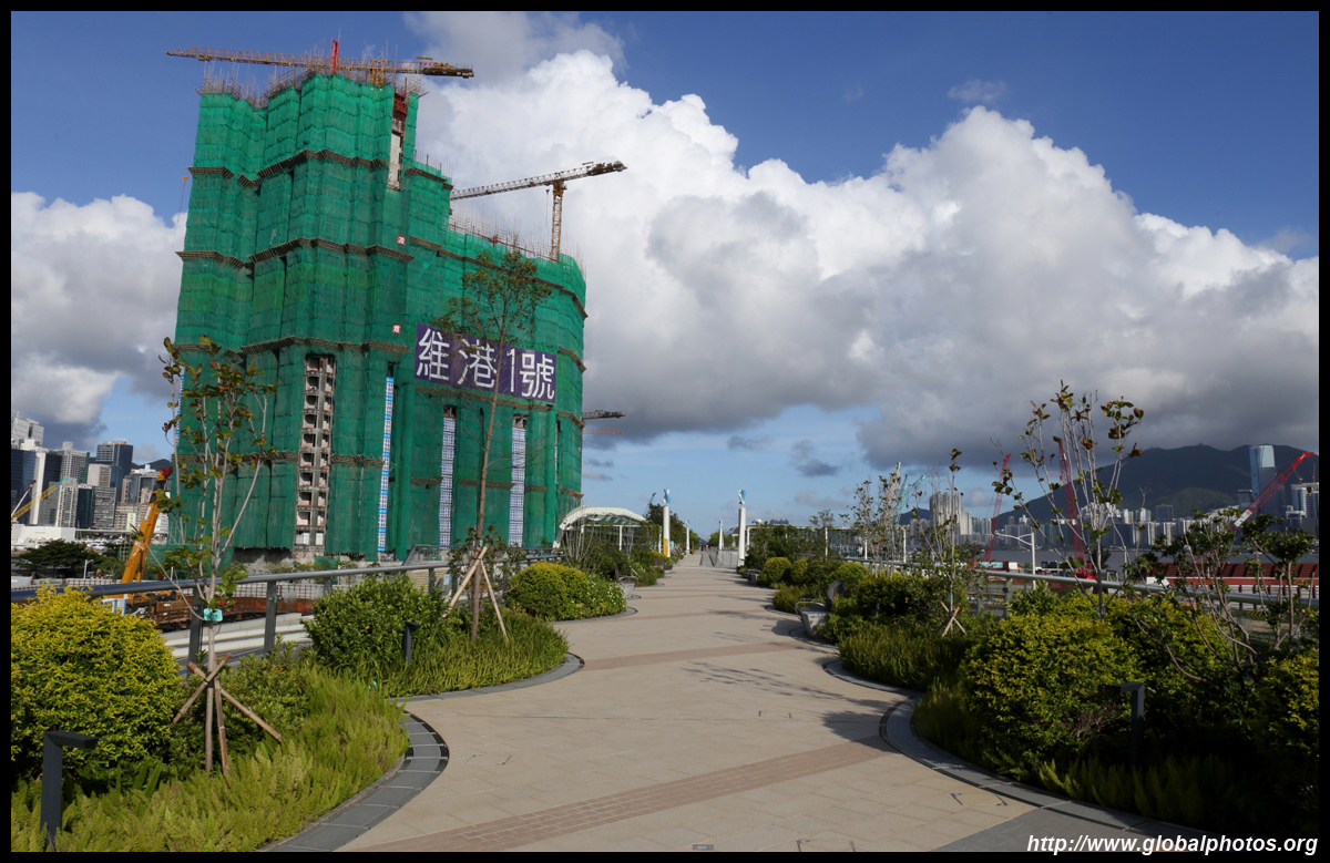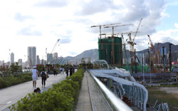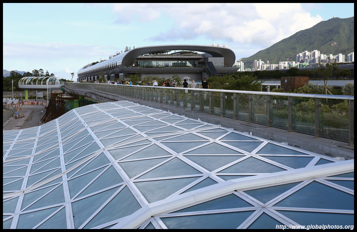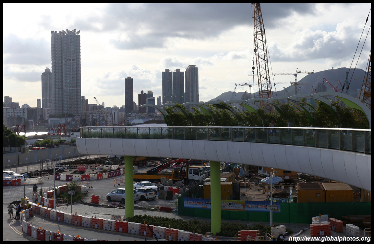 Located on an elevated deck above the main access road along the former Kai Tak runway 13/31, the 1.4km aviation-themed park opened in May 2021 with water features, vegetation, and rest benches with views. It is surrounded by many construction sites so perhaps one day, the harbour and skyline views will disappear behind walls of buildings.