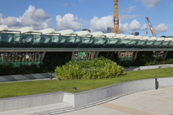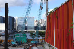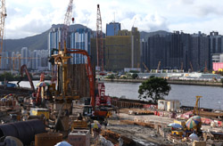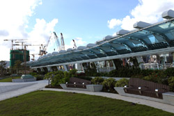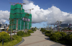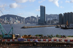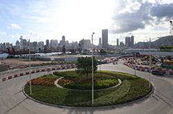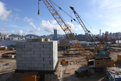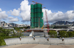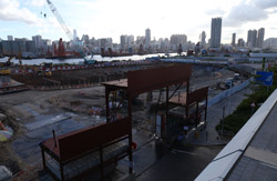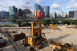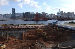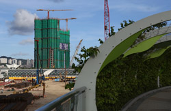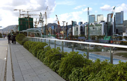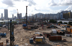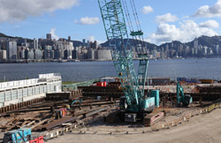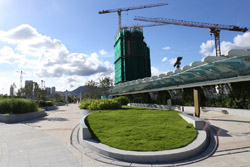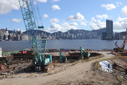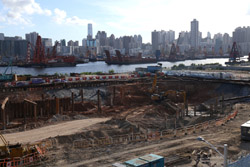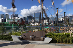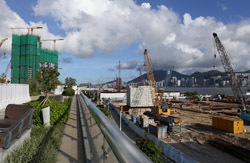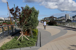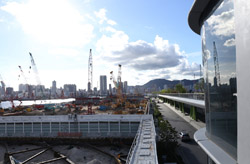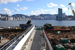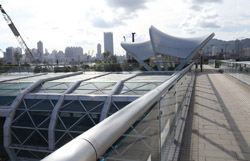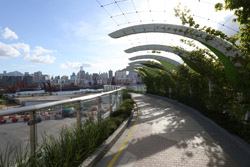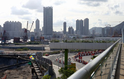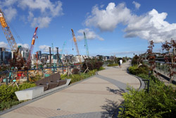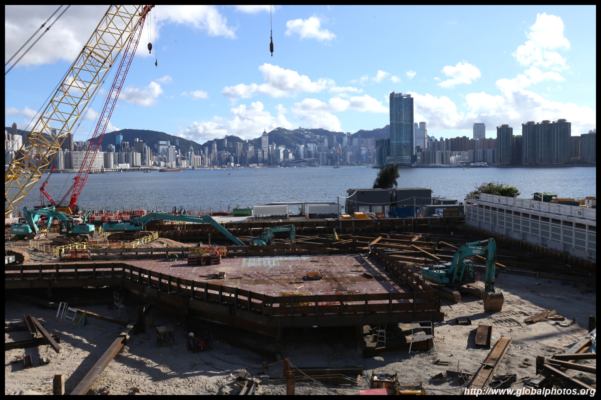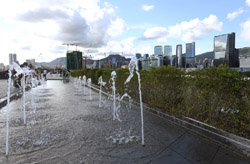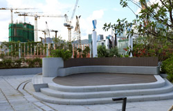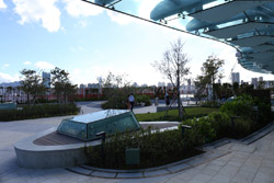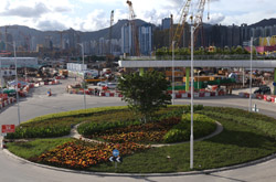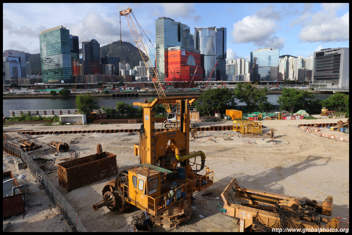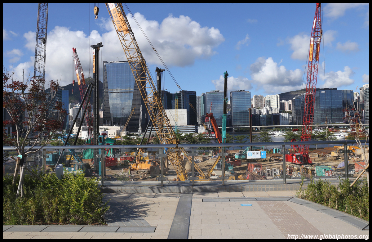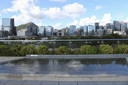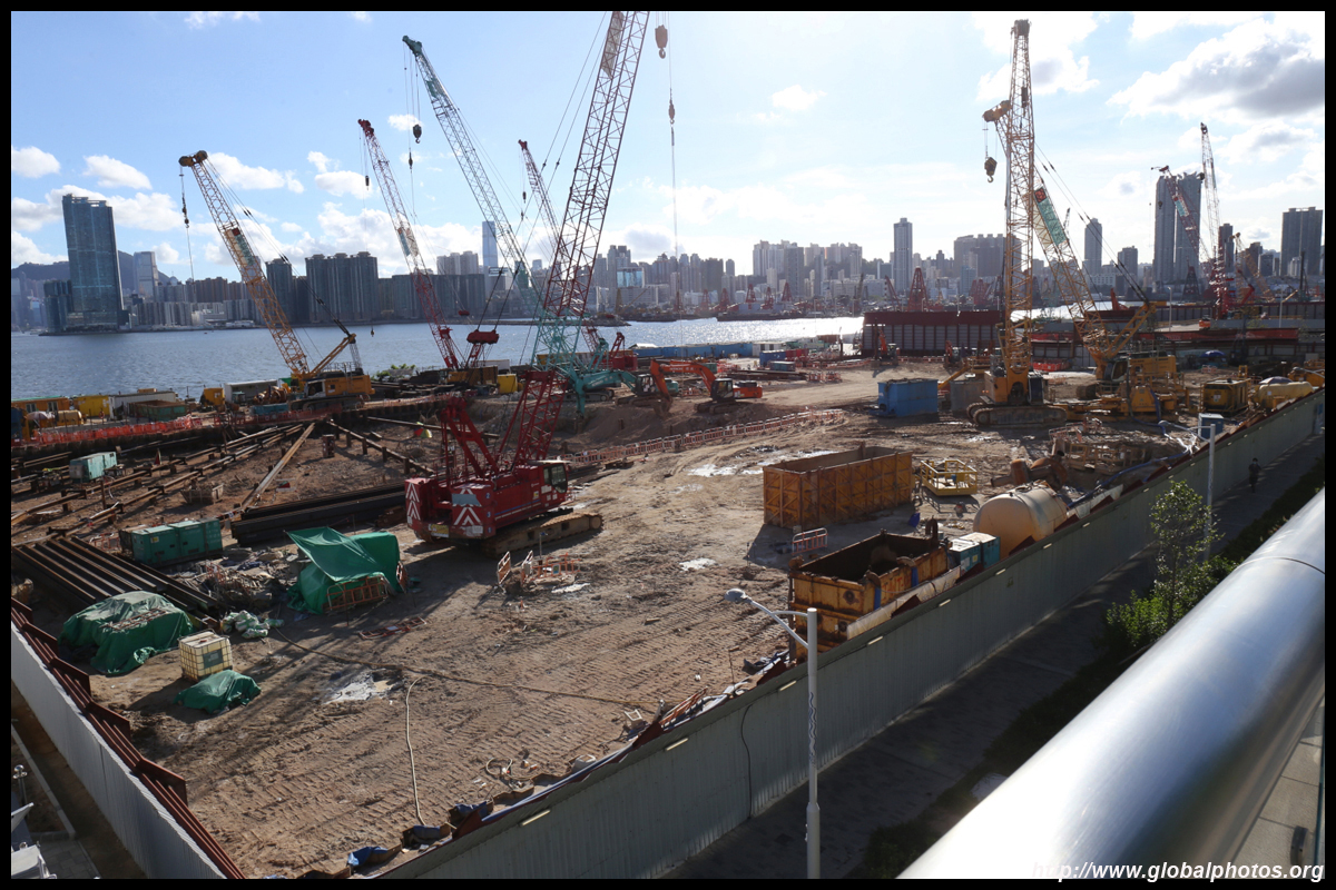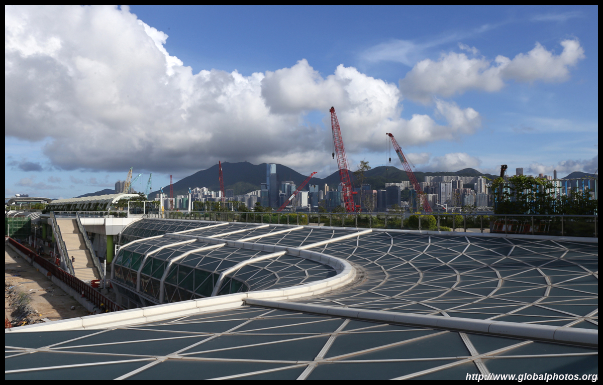 Located on an elevated deck above the main access road along the former Kai Tak runway 13/31, the 1.4km aviation-themed park opened in May 2021 with water features, vegetation, and rest benches with views. It is surrounded by many construction sites so perhaps one day, the harbour and skyline views will disappear behind walls of buildings.