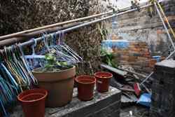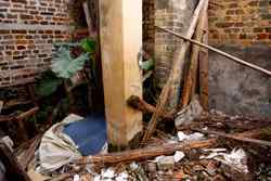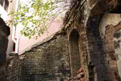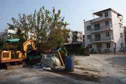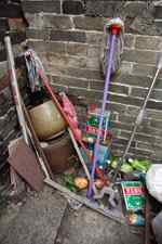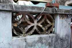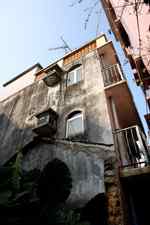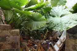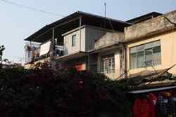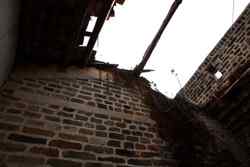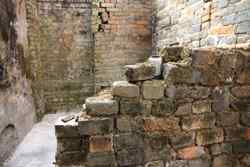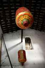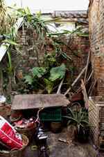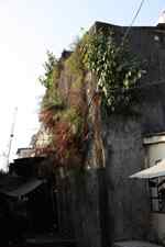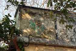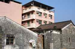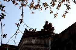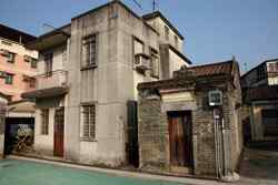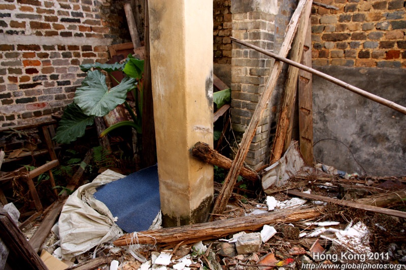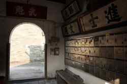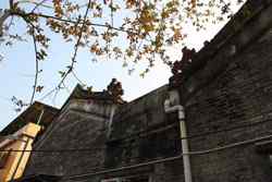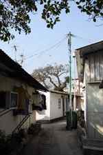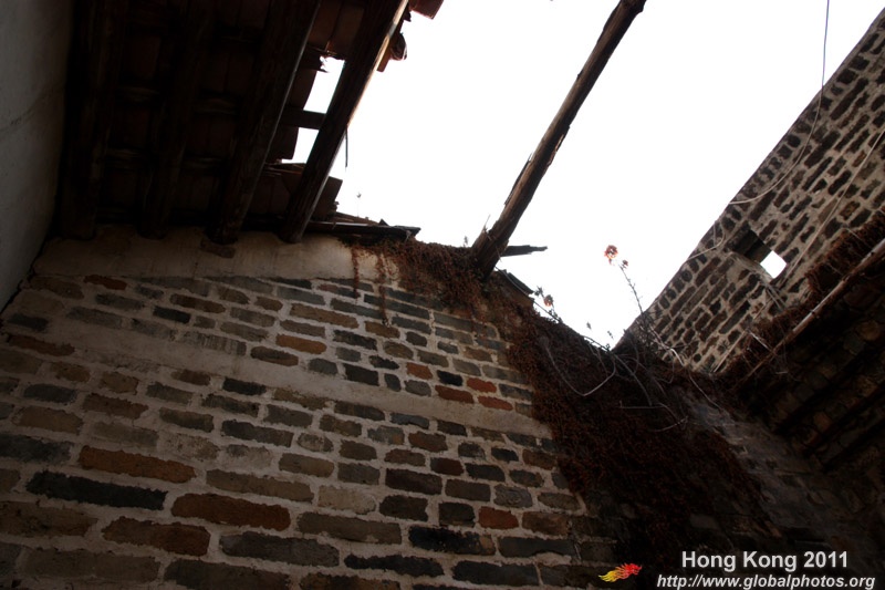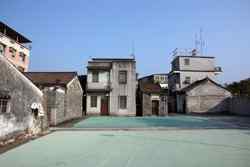 North of the main street and mixed within the villages, a tree has taken over a building that was believed to be either a temple or study hall. Due to piracy, the government during the Qing Dynasty ordered coastal residents to evacuate inland, and this house's owner left the area, allowing nature to reclaim it.