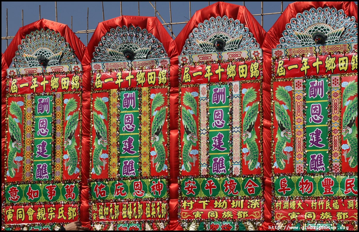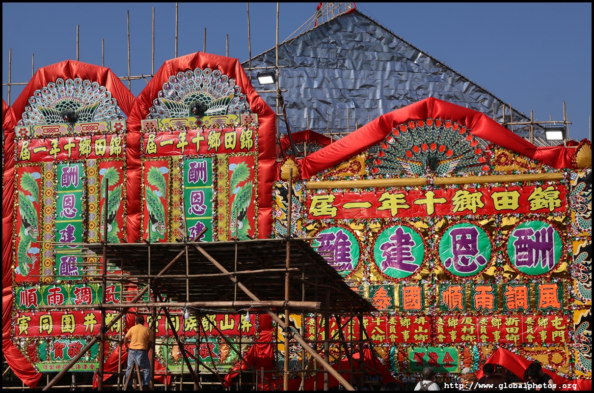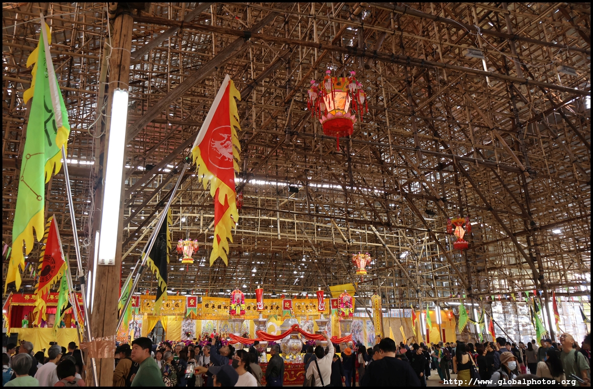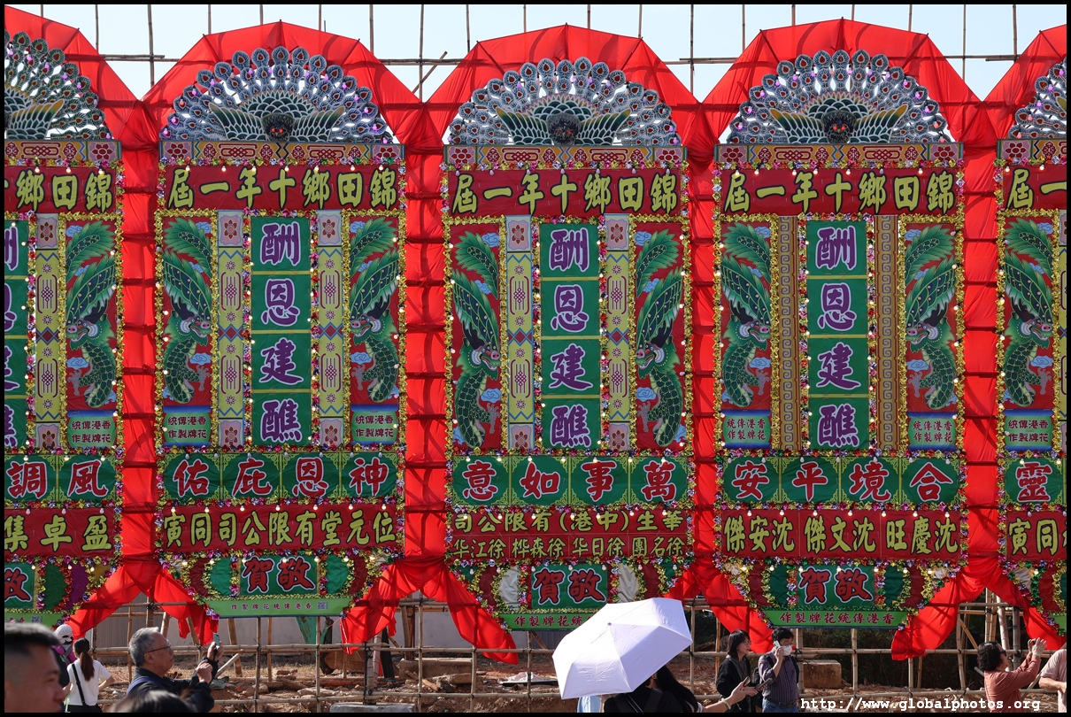 Once every 10 years, Kam Tin's villagers put on an elaborate show for a festival with Taoist rituals and performances. Its history goes back to 1685 to commemorate 2 government officials from the Qing Dynasty that assisted the Tang clan to return to Kam Tin after coastal regions were evacuated by force amidst war with Ming loyalists based in Taiwan.The 2025 edition took place in December and attracted huge crowds. It gained particular attention thanks to a massive bamboo scaffolding hall, which set a Guinness World Record as the world's largest temporary bamboo altar. It was made with over 25,000 bamboo poles, 3500 fir logs, and zinc sheets, taking more than 2 months to complete. The use of bamboo has been thrown into the spotlight during this time as it was initially blamed for the massive fire at Tai Po's Wang Fuk Court. Even before the tragedy, the government had proposed to phase out bamboo scaffolding in favour of metal, a fairly controversial topic. Bamboo theatres started appearing in Hong Kong in the late 19th century and were initially covered with palm leaves and canvas. The fire-prone materials were replaced with zinc sheets in the 1970s. Outside, over 100 flower boards decorate the festival grounds. Believed to originate from Chinese archway or palace decorations, flower boards are widely used in traditional festivals and inaugurations. They are crafted with bamboo, coloured paper, and plastic, although in the past fresh flowers were used.